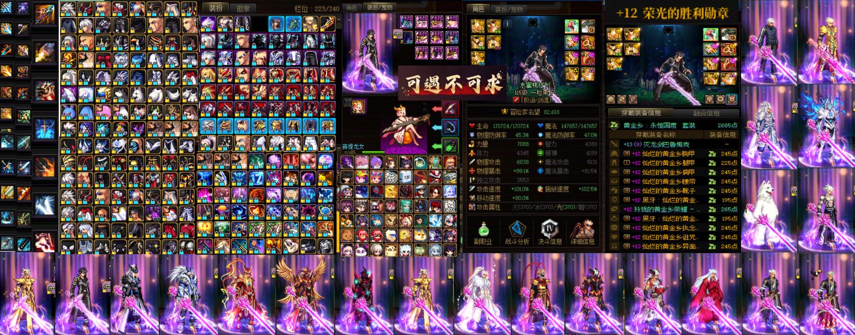 【云游堂】 【可二次实名】【信誉分:867】跨五江苏2区【2025劳动节已购7套,夏日已购7套】【2把龙武】【精品4女鬼剑】【小连体好玩不累】nai【W-空精品小衣柜号】【满配+12勋章,满夏日收集箱】【2个增幅12连体9个增幅11连体1个增幅10】【11套龙袍龙透】【女角色牌面连体】——【精品增幅12武器13龙透剑帝】+【精品增幅12-10女大枪】+【精品增幅11剑魔+剑宗+刃影+女漫游+奶妈+奶萝+缪斯+奶萝+修罗】+【精品增幅10奶妈】