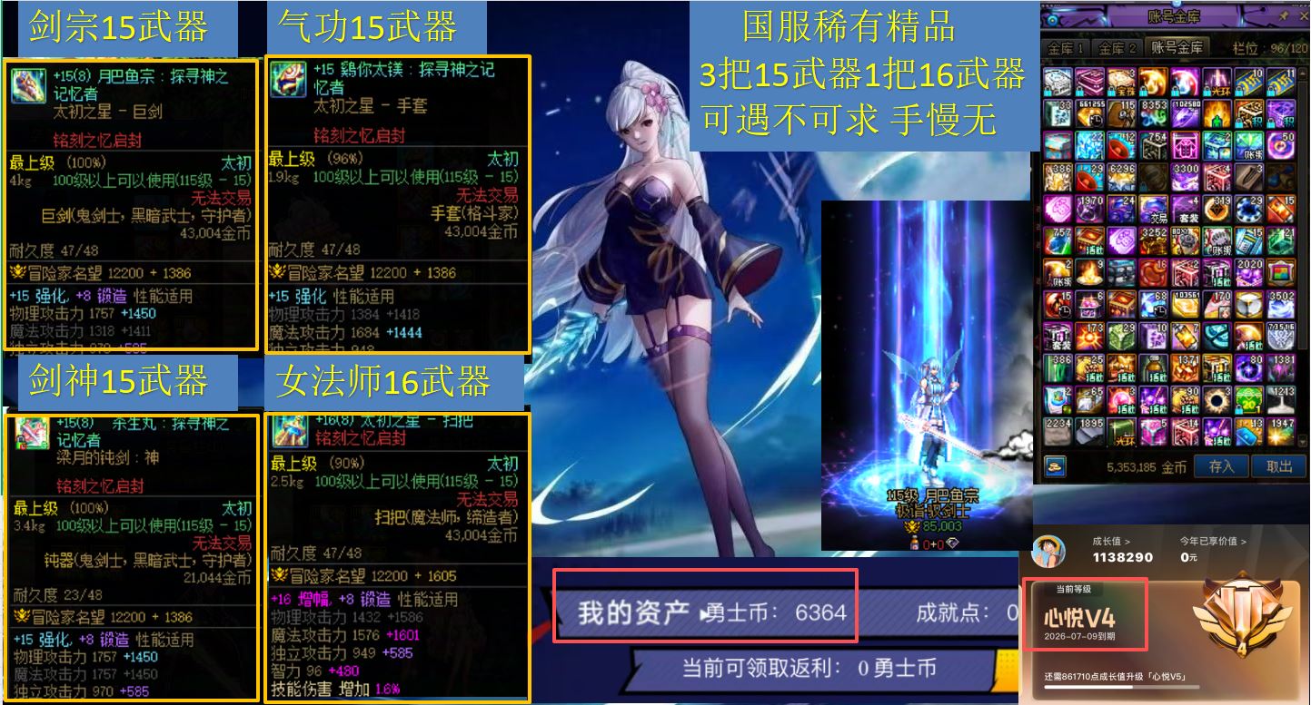 游戏区服:跨6 河南1-2 主职业:【女鬼剑】剑帝