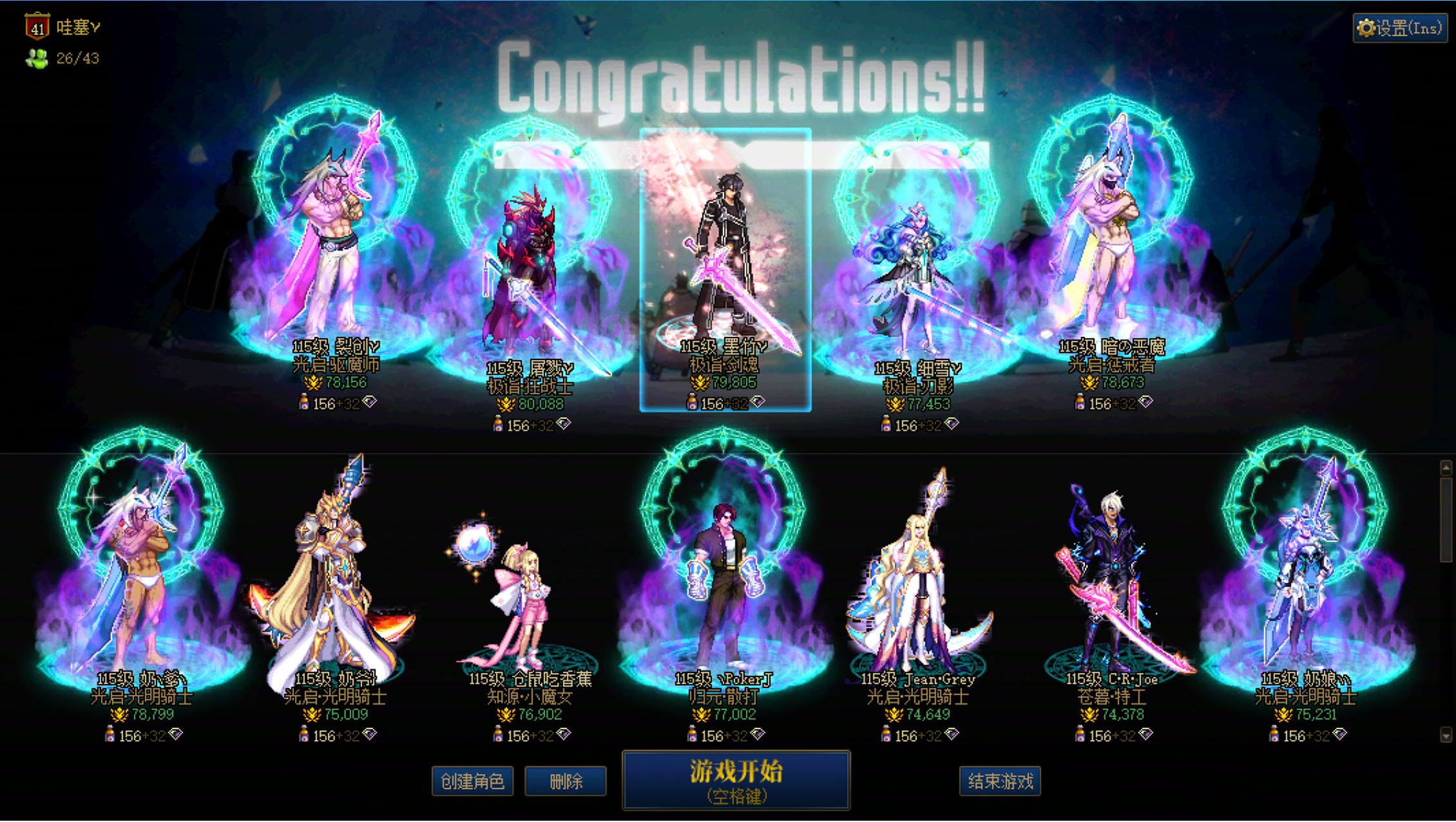 游戏区服:跨2 湖南 主职业:【女圣职】炽天使