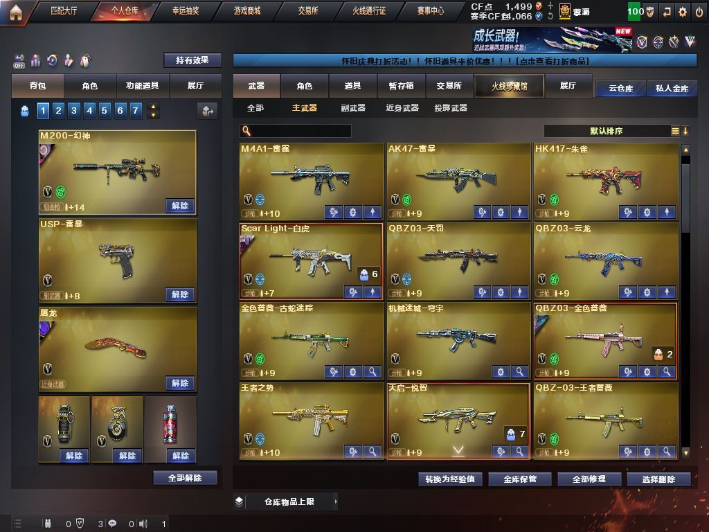 【云游堂】 【可二次实名】zy广东1区王者风神98k星神传说梦魇15极品v送1.1万cf点【鹰角色-王者炫】 qzb金色蔷薇,觉醒王者之光,hk417朱雀,王者之力,尼泊尔雷霆,擎天柱,cat猫呛,g36c宇航兔