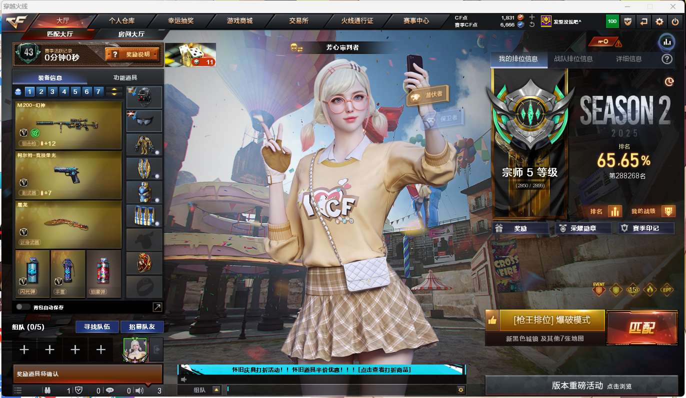 【云游堂】 【可二次实名】ljh AK025269 河南一区 vip6 59v【M200-幻神】【竞技荣光套】【白虎电玩兰兔】【QBZ03-金色蔷薇】【毁灭+毁灭-冠军之怒】【火麒麟+火麒麟-冠军之心】【雷神+雷神-冠军之魄】【黑骑士+音效卡+白马银枪+黑骑士-冠军之势】【超新星 玫瑰精灵】【5手枪 修罗*3 天神】【7近战 屠龙*2 龙啸 擎天 麒麟刺】【手雷 竞技荣光*3】【角色 奇洋探员 蛇隐宗 王者涂鸦】-----【更多炫彩背包/光效/名片/武器具体看图!截图展示段位不代实际段位,赛季更新等不可抗拒因素发生变化、时限道具不保证所剩时间、标题未写送点券默认不送】【主播担保+安全至上+性价比 买号卖号只选金牌商家一左友】