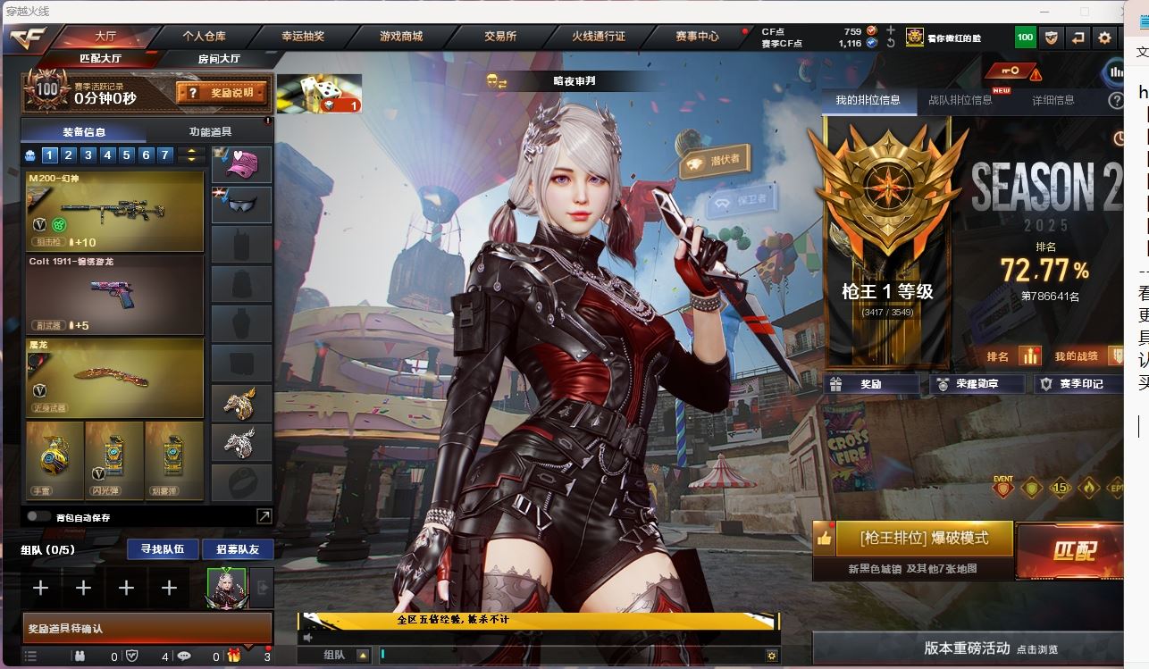 【云游堂】 【可二次实名】hmc ak023574【找回包赔】重庆一区20v【m200幻神+传奇欧欧+荣耀世冠白鲨2023+冠军之特】【98k星神+破竹】【幻神呛娘爱丽丝】【g36c幻影】【火麒麟+呛娘+冠军之心】【雷神+荣耀之魄+白鲨冠军】【裁决+异化之源】 【武器:海王 金色蔷薇古蛇迷踪】 【手呛:修罗 冠军之特】 【4刀具:屠龙*3 尼泊尔雷霆 】 【小人呛:朱雀蛇隐宗 雷神精英刀锋 火麒麟灵狐 玄武呛娘火莲 幻神呛娘爱丽丝 毁灭孙三炮 cop白鲨 】 【音效卡:金色蔷薇音效卡】 【四防角色:王者魅影 】 ----更多炫彩背包/光效/名片/武器具体看图!截图展示段位不代实际段位,赛季更新等不可抗拒因素发生变化、时限道具不保证所剩时间、标题未写送点卷默认不送】【主播担保+安全至上+性价比 买号卖号只选金牌商家一左友】
