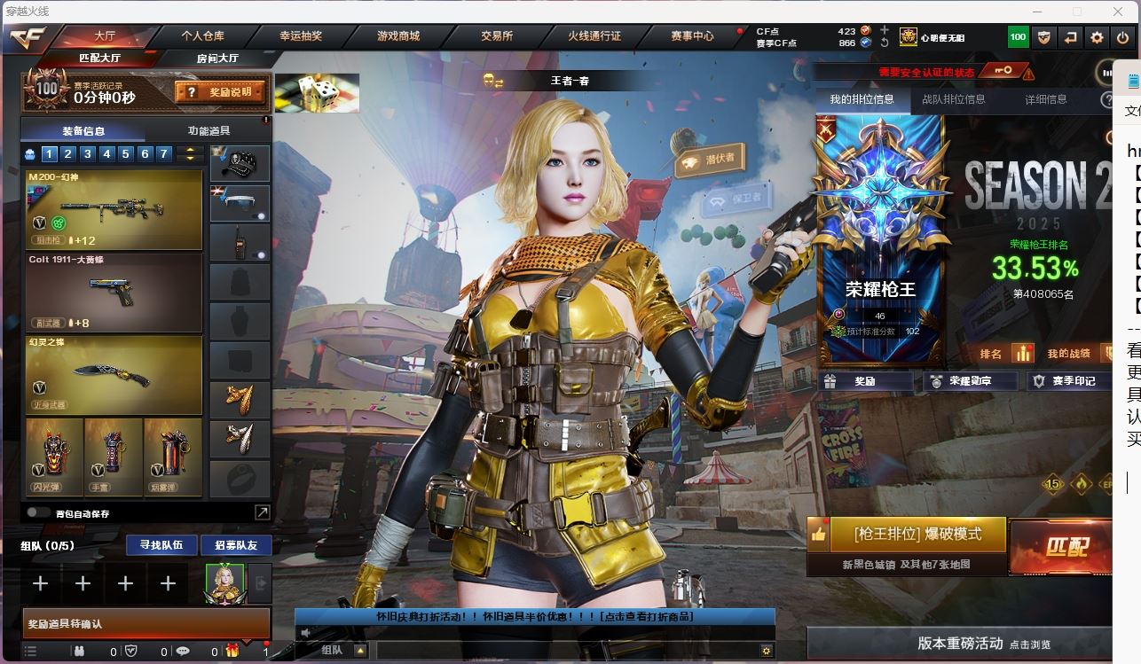 【云游堂】 【可包人脸】hmc AK014159 湖北一区14v【m200幻神+冠军之幻】【王者风神】【qbz金色蔷薇】【雷神+s18冠军 】【武器:青龙 】【手枪:幻灵 天神 】【刀具:屠龙 龙啸 】【雷套:幻灵雷 】【四防角色:职业经理 】----更多炫彩背包/光效/名片/武器具体看图!截图展示段位不代实际段位,赛季更新等不可抗拒因素发生变化、时限道具不保证所剩时间、标题未写送点券默认不送】【主播担保+安全至上+性价比 买号卖号只选金牌商家一左友】