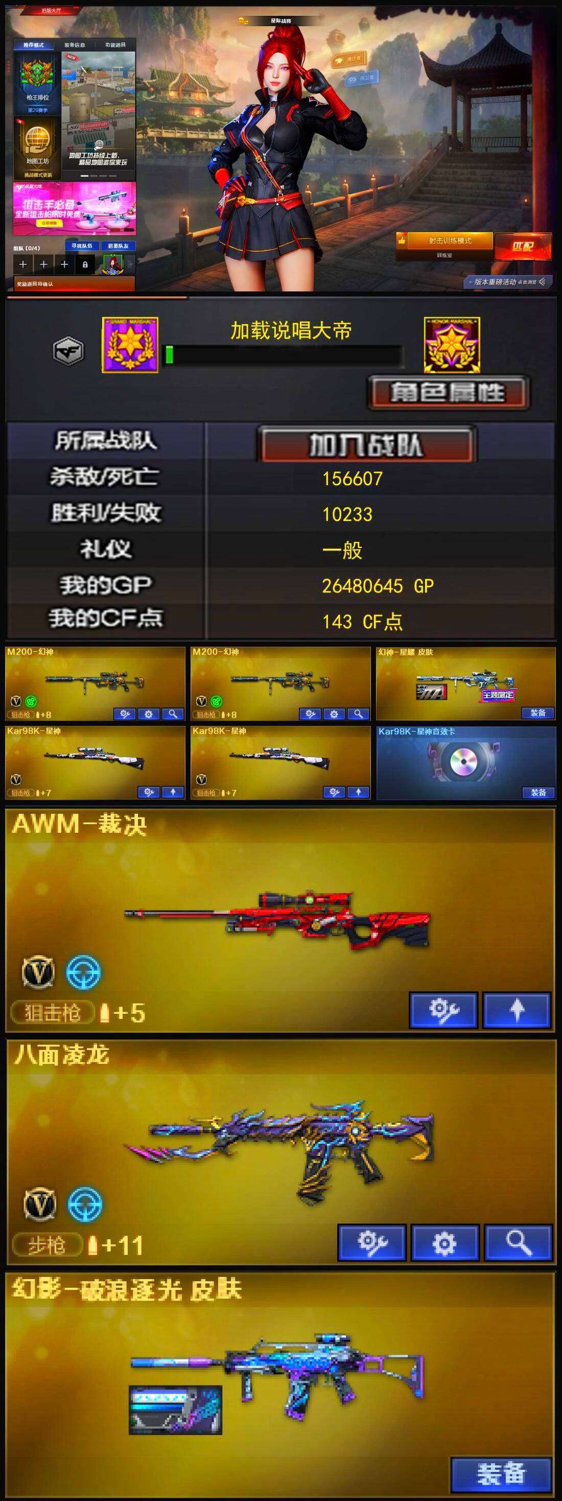 【云游堂】 【可二次实名】幻神星耀/双星神带音效卡/八面凌龙/堕天神cop/网剧冠军套/青龙/朱雀/3烈龙【81v】 【实名情况】可二次实名 【可否排位】可排位 【账号状态】无封号 【区服】湖南二区 【vip】 【游戏等级】lv.101 大元首 【段位排名】未上榜 【cf点】143 【vvip数量】81 【重要套装】网剧冠军套装 【重要角色】_零/_瞳/星际战将/蛇隐宗/蛇姬/王者-瞳-闭月羞花 【传说武器】 【英雄武器】_m200-幻神(2)/barrett-毁灭/barrett-极光/barrett-暗月传说/王者之怒-觉醒版/kar98k-星神(2)/awm-天龙/awm-裁决/m4a1-青龙/m4a1-雷神/m4a1-黑骑士/m4a1-武圣/王者之魄-觉醒版/hk417-朱雀/ak12-天启/ak47-火麒麟(2)/ak47-无影(2)/无影-神兵利器/ak47-黑鲨/黑武士-cf网剧冠军/ak-47-猩红传说(13)/ak47-b-战神/an94-超新星/9a91-烈火/rpk-盘龙/汤姆逊-烈龙(3)/aa-12-雷霆/加特林-炼狱/cop-堕天神/沙鹰-天神/天神-cf网剧冠军/沙鹰-修罗(2)/glock18-武圣/破空呛刃-夜魔/麒麟刺/龙啸/王者之啸-觉醒版/擎天(2)/擎天-cf网剧冠军/屠龙/马来剑-夜魔/高爆手雷-夜魔(4)/高爆手雷-竞技荣光/盐雾蛋-夜魔(4)/闪光丹-夜魔(4)/闪光丹-竞技荣光/八面凌龙 【王者武器】王者之翼/王者之戮 【小人呛】火麒麟-灵狐(2)/火麒麟-绝迹/hk417-朱雀-蛇隐宗/awm-灵狐-15周年嘉年华/m37-葵/夺魂(6)/迷你火种(6)/迷你深渊冰龙(3)/迷你白狐/迷你波特博士(7)/迷你牛牛/迷你裂空之翼(4)/魔能飞环-曼陀罗/生化手雷-小钢/生化手雷-机甲核心/深渊终结者手雷/灵狐娃娃手雷/闪光丹-小乔 【其他重要武器】炫金骑士/炫金毁灭/黑骑士-摸金校尉/机甲撕裂者iii/冰龙粉碎者-白马银呛/激光毁灭者iii/ak-47-红龙/m4a1-guitar 炫彩(2)/m14ebr-天羽/m4a1-圣诞2021/m14ebr-赤血龙魂/m4a1-电音(2)/m14ebr-炎龙(2)/ak47-烛龙/m4a1-紫狱/ak-47-a-波特博士(3)/m4a1-s-火种(6)/m4a1-xs-赤龙/ak12-幽灵/m4a1-狂欢-cfs/m14ebr-cfs 2020/m4a1-ss-呛王排位(2)/an94-青花瓷/ak47-死亡之翼/ak47-qt/m4cqbr-ap-孔明/m4a1-xs-耀龙/ak47-轮回(2)/m4a1-秘银赤龙(2)/g3a3-ss-呛王排位/雷神-赛博朋克/9a91-赤血龙魂/ak47-ss-呛王排位/ak47-破空冰刃/ak47-十二生肖-蛇/m14ebr-情人节2020/m4a1-战龙/ak47-圣诞节[2019]/黄金ak-47/海浪ak47-qq浏览器/m4a1-破空冰刃(2)/ak-103-红色悦动/ak47-呛娘/ak47-绚樱/ak47-万圣节2018/m4a1c-死亡之翼/ak-12-cfs2017纪念版/ak47-ss-9周年/m4a1-樱落/ak47-樱花/awm-恶棍-呛王排位(2)/雷蛇awm/awm-银月/barrett-炎龙(2)/barrett-侠临江湖/m200-神秘黑洞/barrett-耀龙/m200-朋克/barrett-孔明/barrett-捣乱兔兔/awm-a呛王排位ii/m82a1-水呛-机甲核心/awm-pink/m82a1-飞龙在天/m200-wegame/m82a1-青龙/m200-萌杀/m200-大黄蜂/barrett-翔龙/暗金m200/98k-烛龙/m200-赤血龙魂(2)/破天狂龙/芭蕾特-情人节2020/awm-呛娘/m200-圣诞/awm-十周年/凤凰之力/awm-圣诞2013/awm-圣诞/m200-万圣节/末日裁决者/巨龙咆哮ⅲ/kac-小动物(2)/阿梅利轻机呛-暗夜风暴/mg4-蓝色骑士(2)/mg3-翔龙/evo iii-赤血龙魂/斯泰尔-巧克力(2)/evoiii- 曹操/试炼破坏者iii/神圣爆裂者(2)/spas-12-幻能朋克/spas-12-雷电核心/愤怒的公牛-朋克/蟒蛇-炫彩/幻影anaconda-呛王排位/cop-金蝉子-呛王排位(2)/沙墨之鹦-炎龙(2)/colt1911-彩蝶/愤怒公牛左轮-呛王排位(3)/迷彩沙鹰-70kg(2)/cop 357-平天大圣/mac-10-幻能朋克(2)/cop-机甲刑天/新usp-呛王排位奖励/cop357-萌杀/沙鹰-呛王排位(2)/柯尔特-百城/cop 357--绚樱(2)/幻影沙鹰-呛王排位/anaconda-黑金神龙/cop357-赤龙/anaconda-雷电核心/anaconda-万圣节2019/anaconda-炽焰核心/沙鹰-万圣节2018(2)/凤凰之火(2)/收割者-呛王排位/尼泊尔-炎龙/军用铁锹-丹龙/魔能镰刀(5)/虹光女皇利刃-呛王排位/斩神刀-青帝/丛林匕首-呛王排位/蝴蝶刀-呛王排位/幻影扳手-呛王排位/唐刀-九五至尊/丛林匕首-卧龙(4)/鹰爪-呛王排位/胜利奖杯手雷-呛王排位(2)/胜利奖杯闪光丹-呛王排位(2)/胜利奖杯盐雾蛋-呛王排位(2)/闪光丹-呛王排位(3)/手雷-能量核心/红色诅咒娃娃手雷 【重要武器皮肤】幻神-星耀 皮肤/毁灭耀金皮肤/极光-能量核心/awm-天龙-传奇70kg/awm-天龙-传奇白鲨/ak47-火麒麟-传奇even/火麒麟-cfstar/火麒麟-ag/火麒麟-心动糖果/火麒麟-战神关羽/无影-霓裳皮肤/无影-能量核心/黑骑士-地狱火/幻影-破浪逐光 皮肤/战神-流金岁月皮肤/战神-紫绶金章皮肤/战神-粉色甜心皮肤/炼狱-星空/修罗-能量核心/屠龙-星耀 皮肤/黑鲨-电流骇客 皮肤 【重要光效】炼狱-悦蓝金色光效/王者之影金色光效/m200-幻