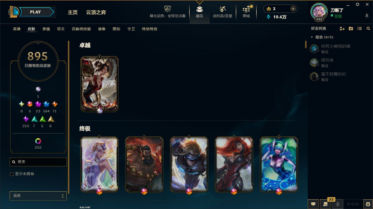 【云游堂】 【可二次实名】艾欧尼亚【895皮肤】卓越1卡莎-终极5-神话23-限定164-传说71-史诗213-王者7-勇士5-典藏6皮-等级446-数10W精粹-全英雄想玩就玩-大杀四方等你来战