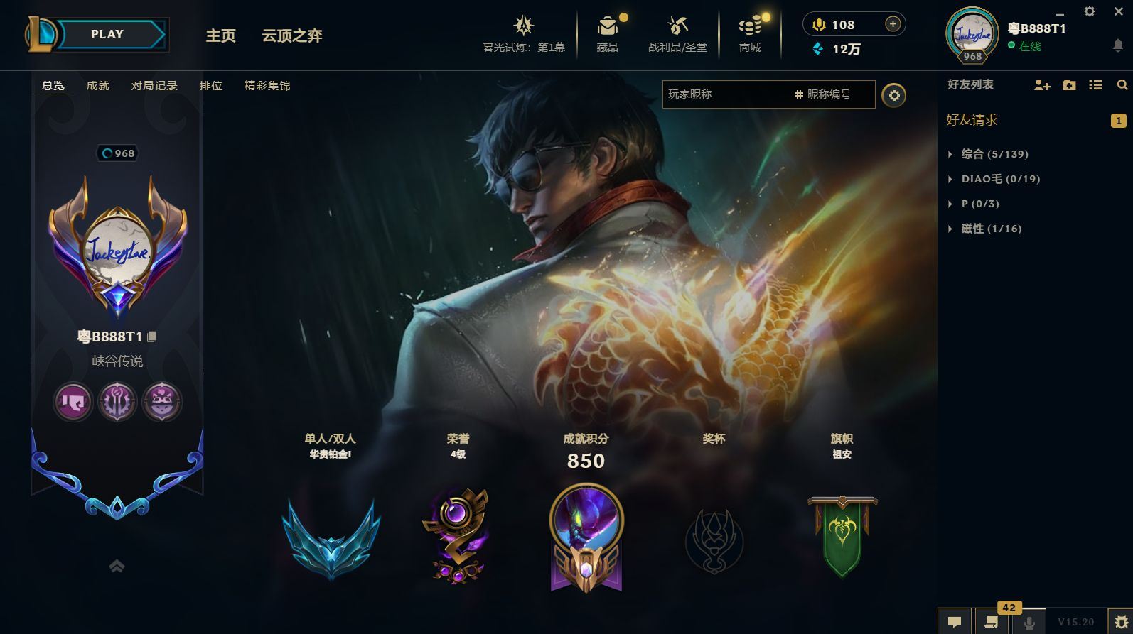 【云游堂】 【可二次实名】IG卡莎!卧虎藏龙!玉剑女刀!雪花图标!气象主播小小风女!E12190.祖安.968皮4终极30神话170限定381炫彩33臻彩