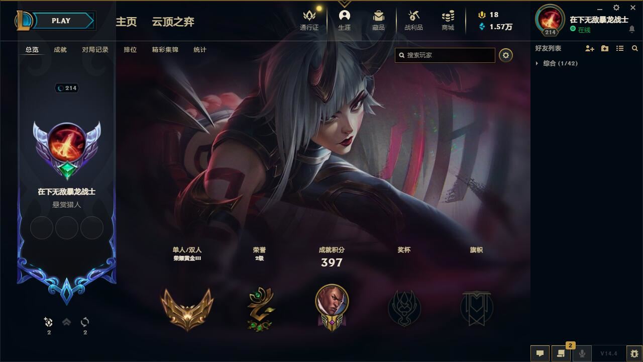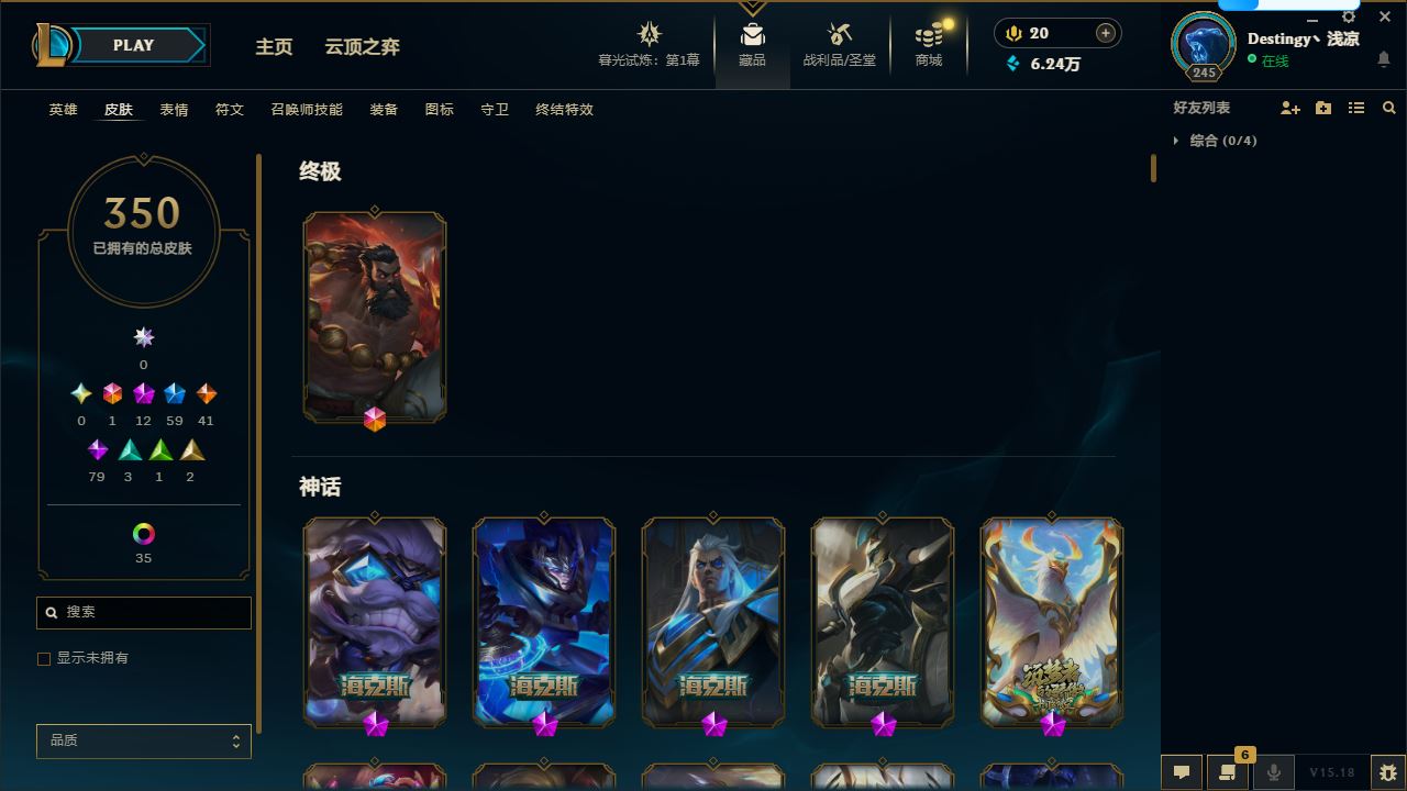 【云游堂】 【可二次实名】【豪华带妹1399皮39神话精品号!冰原酒桶!6张lpl限定臻彩!无畏猎手卡莎!无畏圣弩薇恩!可二次实名!】E10075.德玛西亚.6终极皮肤!39神话基本都有!冠军皇子黄鸡!狗年狗头!冰雪节24年全套!穿星魔锋!创星之灵!春晖神女!大魔王提莫!地底世界卡牌!福牛五张!鸡里奥!克格汪!冰老鼠!猴年猴子!送披萨的小姐姐!花木兰!卧虎藏龙武器!龙嘴龙刀!养蜂人!玉剑男刀!玉剑女刀!御星魔矢!斩星魔剑!EDG冠军全套!ig冠军全套!118传说!27w橙色精粹!14臻彩!神龙尊者瞎子+龙腾云起臻彩!无畏圣弩薇恩!无畏意志石头人!lpl限定!玉剑传说无影竞星臻彩!lpl限定臻彩卢锡安!lpl限定臻彩腕豪!lpl限定臻彩卡莎!