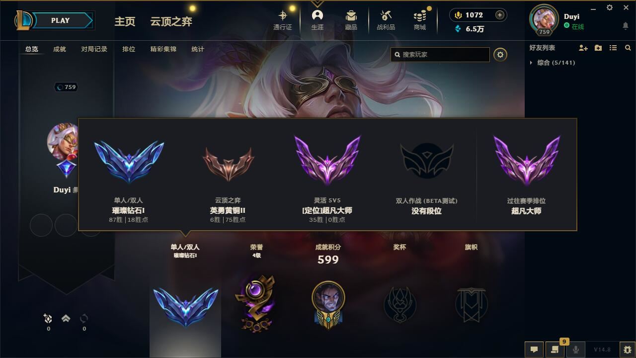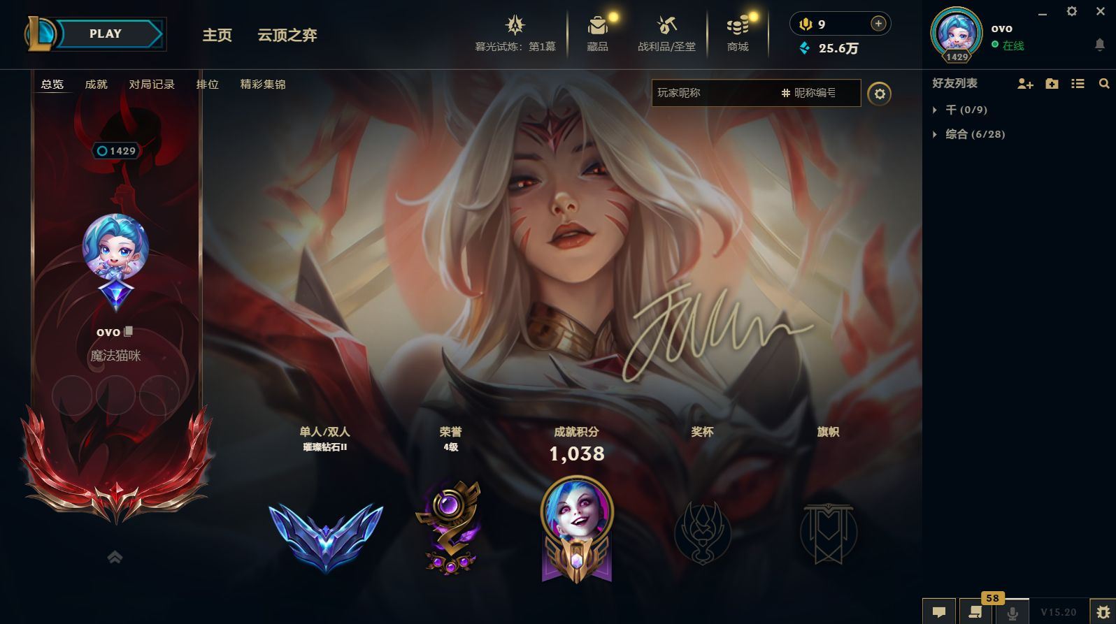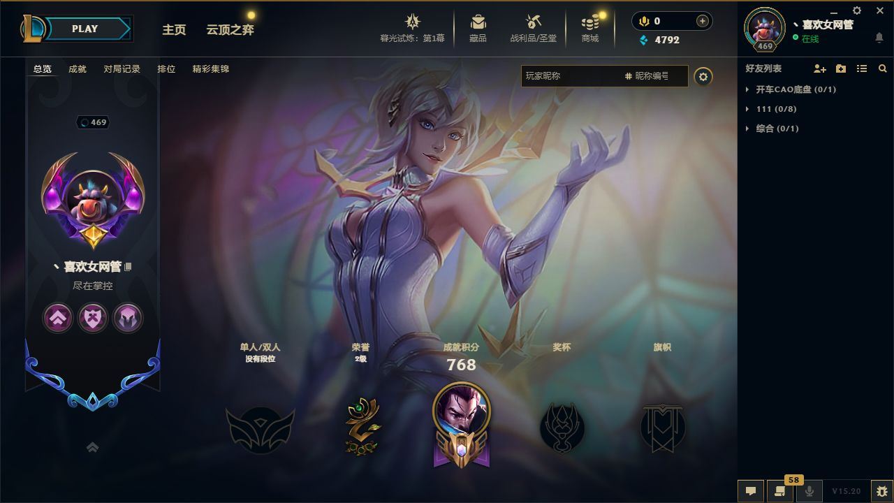 【云游堂】 【可二次实名】G 德玛西亚、红龙虾、哥特萝莉 游戏等级:553 单双排段位:璀璨钻石 英雄数量:171 皮肤数量:767 炫彩数量:117 臻彩数量:7 神话数量:17 云顶神话数量:0 游戏点juan:82 神话精粹:42 蓝色精萃:138512 橙色精粹:108567 钥匙:0 宝箱:127 【重要头像】觅心游侠卢锡安 魔女丽桑卓炫彩 伊纳 幻灵战斗猫金克丝炫彩 至臻幻灵战斗猫金克丝 至臻女帝黛安娜 【重要皮肤】双城之战2指挥官kai特琳至臻 幻灵战斗猫金克丝至臻 女帝黛安娜至臻 灵能特工伊泽瑞尔至臻 heiye使者kai隐至臻 KDA一代卡莎至臻 KDA卡莎2022至臻 烈焰美人薇恩至臻 烈焰美人薇恩2022至臻 真实伤害奇亚娜至臻 真实伤害奇亚娜2022至臻 海克斯科技安妮 海克斯科技雷克顿 海克斯科技崔丝塔娜 摄魂使者薇恩 胜利剑圣易 胜利女神娑娜 哥特萝莉安妮 电玩女神厄运小姐 电玩女神阿狸 玉剑传说无影 玉剑传说舞剑仙 女帝格温 龙的传人李青 虎头虎脑崔丝塔娜 龙腾虎跃瑟提 替父从军花木兰 神龙烈焰金克丝 春晖神女拉克丝 北辰之威内瑟斯 南天之怒沃里克 玉净夜叉kai特琳 紫金罗刹莫甘娜 广寒仙子嫦娥 司马懿仲达 王国机神青龙德莱文 王国机神苍狼瑟提 王国机神白虎贾克斯 王国机神玄武盖伦 胜利之树茂kai 胜利女神奥莉安娜 胜利枪神格雷福斯 胜利枪神卢锡安 胜利之剑亚托克斯 穿心之剑菲奥娜 觅心游侠卢锡安 觅心魔灵奥莉安娜 觅心女王艾希 狂心冰王图奇 冰雪女神辛德拉 魄罗骑士瑟庄妮 夺命美人卡特琳娜 平安夜女神娑娜 圣诞糖果棒厄运小姐 魅惑女巫厄运小姐 魅惑女巫莫甘娜 魅惑女巫崔丝塔娜 魅惑女巫奈德丽 死亡誓约维克托 克烈古拉伯爵 泳池派对普朗克 泳池派对奥莉安娜 泳池派对嘉文四世 泳池派对厄运小姐 泳池派对菲奥娜 泳池派对格雷福斯 泳池派对蕾欧娜 泳池派对雷克顿 电玩战魂赫卡里姆 送披萨的小姐姐希维尔 制胜金靴李青 EDG格雷福斯 DWG奈德丽 FPX墨菲特 iG洛 iG卡莎 SSG洛 SSG纳尔 SKTT1烬 SKTT1辛德拉 SKTT1阿利斯塔 SKTT1卡莉丝塔 SKTT1阿兹尔 SKTT1雷克顿 SSW泰隆 SSW图奇 SSW辛吉德 SKTT1贾克斯 SKTT1劫 SKTT1婕拉 SKTT1李青 SKTT1薇恩 暗杀星蒙多 暗杀星努努和威朗普 暗杀星慎 Fnatic库奇 Fnatic嘉文四世 Fnatic卡尔萨斯 冰雪节格雷福斯 冰雪节玛尔扎哈 冰雪节辛吉德 防暴机器人布里茨 防暴士兵格雷福斯 防暴士兵辛吉德 防暴天使kai尔 钢铁之翼艾尼维亚 冠军典狱长锤石 冠军掠夺者卡兹克 冠军之刃锐雯 冠军之刃锐雯2016 冠军之血希瓦娜 春晖海神卡兹克 鬼影重重魔腾 海贼瑞兹 红桃杰克崔斯特 胡桃夹子萨科 警用试作体K9内瑟斯 蓝色忧郁崔斯特 蒙多蒙多 密林猎手提莫 南瓜头费德提克 女猎手希维尔 圣诞精灵崔丝塔娜 圣诞开心鬼提莫 圣诞狂欢基兰 圣诞狂欢努努和威朗普 圣诞老人古拉加斯 圣诞玩偶波比 圣诞驯鹿克格莫 糖果使徒费德提克 外星装甲库奇 无头骑士赫卡里姆 喜庆之树茂kai 邪恶圣诞老人维迦 幸福女神乐芙兰 雪默丁格 雪装奈德丽 野兽猎人德莱文 野兽猎人泰达米尔 英勇玩具兵普朗克 勇者阿狸 征服者阿利斯塔 暗影沃里克 机械迷城加里奥 阿木木主人不要我了 波比的巧克力工坊 都铎王朝图奇 十周年纪念安妮 源代码乐芙兰 斗魂觉醒佛耶戈 灵魂守卫乌迪尔 武装战姬厄运小姐 【传说皮肤】腥红之月鬼武姬阿卡丽 太空律动猫猫布里和里茨 西部天使艾希 西部魔影大小姐蕾欧娜 光明哨兵格雷福斯 焰尾妖狐阿狸 冰川巨兽墨菲特 鬼魂新娘莫甘娜 神王盖伦 黎明使者索拉卡 炼狱魔犬内瑟斯 偶像歌手阿狸 魔幻卡牌崔斯特 双重冰晶艾尼维亚 战场女武神kai尔 符文战熊沃利贝尔 战地巨兽科加斯 泳池派对吉格斯 烈焰雄心崔丝塔娜 铁哥们儿奥拉夫 光明哨兵薇恩 战地机甲厄加特 枯萎之壤泽拉斯 霸天异形卡兹克 神龙尊者圣龙李青 地狱之门卫士加里奥 黯黑魔龙希瓦娜 神王德莱厄斯 西部魔影卢锡安 电玩女神娑娜 源计划净化薇恩 女警狙击kai特琳 蔷薇绅士杰斯 星之守护者金克丝 丧尸布兰德 神拳李青 女校长菲奥娜 提莫约德尔人的一大步 女主播迦娜 大天使长米迦勒kai尔 陆地王者4WD布里茨 女皇艾希 苍穹之光韦鲁斯 第三类接触黑默丁格 绅士科加斯 邪鸦魅影乐芙兰 红色男爵库奇 律政大亨蒙多 欧米伽小队幽灵特工 宇航员诺提勒斯 星之守护者拉克丝 源计划林易 屠龙勇士潘森 【重要炫彩】龙战于野 净雪之月莫甘娜冬虹 玉剑传说无影竞星 奥德赛娑娜恒星游历者 时之砂艾克邪龙 奥德赛亚索恒星游历者 泳池派对璐璐呆呆小丑鱼 泳池派对璐璐笨笨暹罗猫 生化魔人扎克草莓软糖魔人 胜利