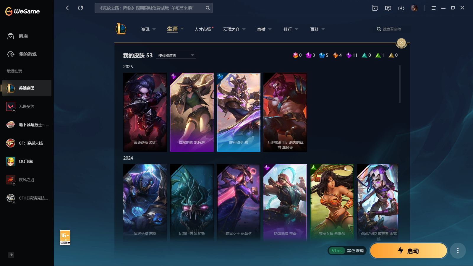 【云游堂】 【可二次实名】【kf3179】黑色玫瑰圣堂金克丝98英雄53皮肤3神话4限定4传说【圣堂金克丝双城之战2破碎者金克丝】至臻狼神英灵思维因,至臻双城之战女警,至臻心之钢永恩,T1伊莉丝,神王诺手,qq等级皇冠+2太阳再送艾欧尼亚小号