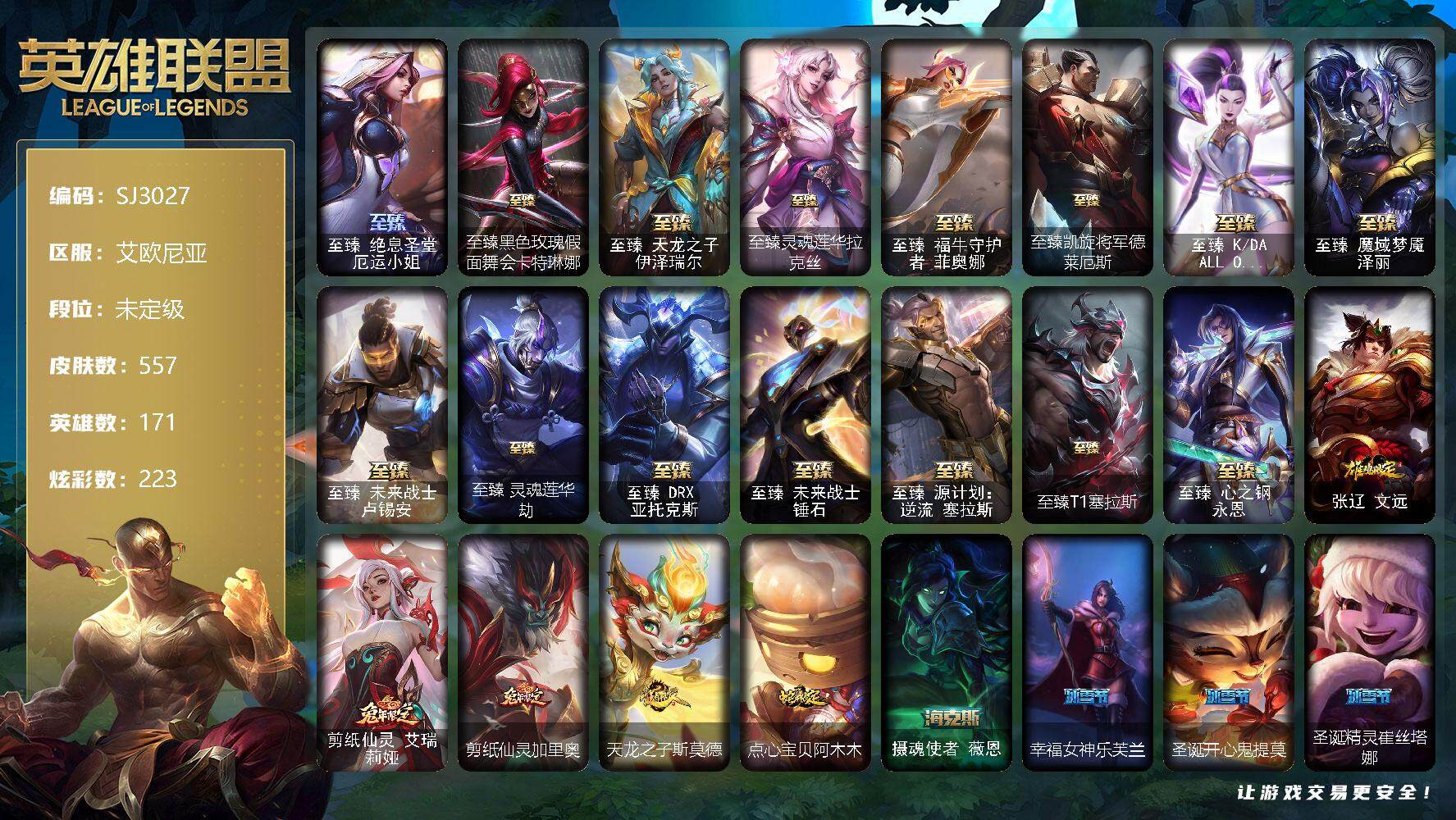 【云游堂】 【可二次实名】【sj3027】171英雄/557皮肤/2终极/23神话/71限定/12臻彩/223炫彩/47传说/111史诗/未定级/觅心之翼奎因头像/至臻绝息圣堂厄运小姐/至臻黑色玫瑰假面舞会卡特琳娜/至臻天龙之子伊泽瑞尔/至臻灵魂莲华拉克丝/至臻福牛守护者菲奥娜/至臻凯旋将军德莱厄斯/至臻kdaallout卡莎/至臻魔域梦魇泽丽/至臻未来战士卢锡安/至臻灵魂莲华劫/至臻drx亚托克斯/至臻未来战士锤石/至臻源计划逆流塞拉斯/至臻t1塞拉斯/至臻心之钢永恩/天龙之子卡莎飞龙乘云/无畏骑士瑟庄妮赤子初心/墨之影武者亚索金墨耀影/征服者阿利斯塔炫金/神龙尊者圣龙李青登龙/幻灵战斗猫金克丝梦幻强袭/殿堂传奇乐芙兰登神/魔女阿卡丽虚荣/净雪之月莫甘娜冬虹/预知之眼亚索不怠/心之钢伊泽瑞尔天纵才华/张辽文远/剪纸仙灵艾瑞莉娅/剪纸仙灵加里奥/天龙之子斯莫德/点心宝贝阿木木/摄魂使者薇恩/幸福女神乐芙兰/圣诞开心鬼提莫/圣诞精灵崔丝塔娜/圣诞糖果棒厄运小姐/平安夜女神娑娜/冬季仙境卡尔玛/邪恶圣诞老人维迦/雪装奈德丽/冰雪驯鹿波比/圣诞老人古拉加斯/圣诞驯鹿克格莫/魄罗骑士瑟庄妮/冰雪节辛吉德/北极星神黛安娜/大元素使拉克丝/dj娑娜/十周年纪念安妮/源代码乐芙兰/殿堂传奇乐芙兰/十五周年纪念希维尔/殿堂传奇薇恩/星之守护者塔莉垭/水晶圣骑塔莉娅/冠军之刃锐雯2016/冠军之隐劫/冠军掠夺者卡兹克/fnatic迦娜/fnatic库奇/暗杀星蒙多/暗杀星努努和威朗普/暗杀星慎/sktt1贾克斯/sktt1劫/sktt1李青/sktt1薇恩/ssw图奇/ssw泰隆/sktt1阿兹尔/sktt1雷克顿/sktt1瑞兹/sktt1娜美/sktt1辛德拉/ig菲奥娜/ig卡莎/f薇恩/女帝厄运小姐/暗裔英雄盖伦/胜利之剑亚托克斯/胜利女神娑娜/胜利剑圣易/胜利之运崔斯特/胜利女神菲奥娜/南瓜头费德提克/鬼影重重魔腾/鬼影森森茂凯/无头骑士赫卡里姆/魅惑女巫莫甘娜/泳池派对厄运小姐/泳池派对菲奥娜/泳池派对雷克顿/泳池派对李青/泳池派对佐伊/密林猎手提莫/野兽猎人德莱文/野兽猎人瑟庄妮/野兽猎人泰达米尔/波比的巧克力工坊/永恒之森乐芙兰/电玩战魂赫卡里姆/都铎王朝图奇/红桃杰克崔斯特/征服者卡尔玛/征服者诺提勒斯/防暴士兵格雷福斯/警用试作体k9内瑟斯/铁哥们儿奥拉夫/邪鸦魅影乐芙兰/血石领主弗拉基米尔/源计划林易/恶魔男爵瑞兹/黎明使者索拉卡/约德尔国队长提莫/欧米伽小队幽灵特工/烈焰雄心崔丝塔娜/合金巨兽努努和威朗普/女皇艾希/源计划联合艾希/西部天使艾希/恶魔之刃泰达米尔/鬼魂新娘莫甘娜/绅士科加斯/战地巨兽科加斯/律政大亨蒙多/冰霜之刃艾瑞莉娅/女主播迦娜/红色男爵库奇/最终boss维迦/女警狙击凯特琳/地狱行者孙悟空/神龙尊者圣龙李青/第三类接触黑默丁格/炼狱魔犬内瑟斯/屠龙勇士潘森/战斗学院伊泽瑞尔/青花瓷伊泽瑞尔/腥红之月鬼武姬阿卡丽/钢铁军团盖伦/黎明使者锐雯/星之守护者拉克丝/暗星女王拉克丝/黯黑魔龙希瓦娜/冰霜亚龙希瓦娜/星之守护者阿狸/宇航员诺提勒斯/女校长菲奥娜/泳池派对吉格斯/灌篮高手德莱厄斯/神王德莱厄斯/黑夜使者亚索/真实伤害艾克/灵魂莲华锤石/源计划毁灭派克/冰霜烈焰安妮/安伯斯与提妮/科学怪熊的新娘安妮/皇家火呛手崔斯特/摄魂男爵弗拉基米尔/圣光审判凯尔/天人合一易/战争机器赛恩/钢铁之心希维尔/源代码索拉卡/熊猫提莫/火箭达人崔丝塔娜/火牙狼人沃里克/黑帮狂花厄运小姐/国王泰达米尔/少林武僧贾克斯/黑色荆棘莫甘娜/炼金狂士辛吉德/死神卡尔萨斯/侏罗纪化石科加斯/小小骑士阿木木/熔火之心拉莫斯/全金属狂潮拉莫斯/飞越疯人院萨科/战争血统蒙多/五杀摇滚键盘手娑娜/掠星魔刃卡萨丁/夜刃艾瑞莉娅/夜行义贼艾瑞莉娅/绝代智将斯维因/驯龙大师斯维因/抵抗军天使凯特琳/古墓丽影凯特琳/铁血狙击手凯特琳/霸天巨兽墨菲特/无畏号墨菲特/海贼魅影卡特琳娜/前线指挥官卡特琳娜/符文战神雷克顿/枯萎之壤雷克顿/凯旋英雄嘉文四世/死亡绽放伊莉丝/腥红之月伊莉丝/灵骨工匠奥莉安娜/三昧真火孙悟空/斗战胜佛孙悟空/冰晶之核布兰德/灵魂烈焰布兰德/防弹武僧李青/至高之拳李青/苍穹之光薇恩/深海妖姬卡西奥佩娅/生化博士黑默丁格/艳后奈德丽/军神战甲波比/飞车暴走族古拉加斯/冰川勇者伊泽瑞尔/死亡领主莫德凯撒/银色之牙阿卡丽/铁甲雄心盖伦/孤高游侠盖伦/至高君王玛尔扎哈/刺客信条锐雯/血色精锐锐雯/兔女郎锐雯/帝王斑蝶克格莫/侏罗纪化石克格莫/战地机甲克格莫/战国大名慎/奥术光辉拉克丝/odst地狱伞兵拉克丝/星际迷航拉克丝/骸骨之爪希瓦娜/银河魔装机神希瓦娜/暗影妖狐阿狸/黑帮教父格雷福斯/白色死神韦鲁斯/皇家守卫菲奥娜/夜鸦菲奥娜/源计划火菲奥娜/驯龙女巫璐璐/绞肉机刽子手德莱文/生化骑士德莱厄斯/全金属狂潮杰斯/源代码丽桑卓/暗黑女武神黛安娜/腥红之月黛安娜/仲裁圣女辛德拉/亚特兰蒂斯辛德拉/野火之藤婕拉/驯龙女巫婕拉/萌侦探喵尔摩斯/邪恶魔人扎克/西部牛仔亚索/源计划风亚索/腥红之月亚索/源代码卡蜜尔/银河魔装机神千珏/黑帮狂花金克丝/五星大厨塔姆/职业杀手卢锡安/源计划雷卢锡安/源计划自由艾克/霸天剑魔亚托克斯/锦鲤娜美/星际之门阿兹尔/幽冥领主阿兹尔/腥红之月锤石/虚空使者俄洛伊/冰雪游神巴德/暮星之羽霞/星空之门内瑟斯/霹雳游侠弗拉基米尔/西部牛仔崔