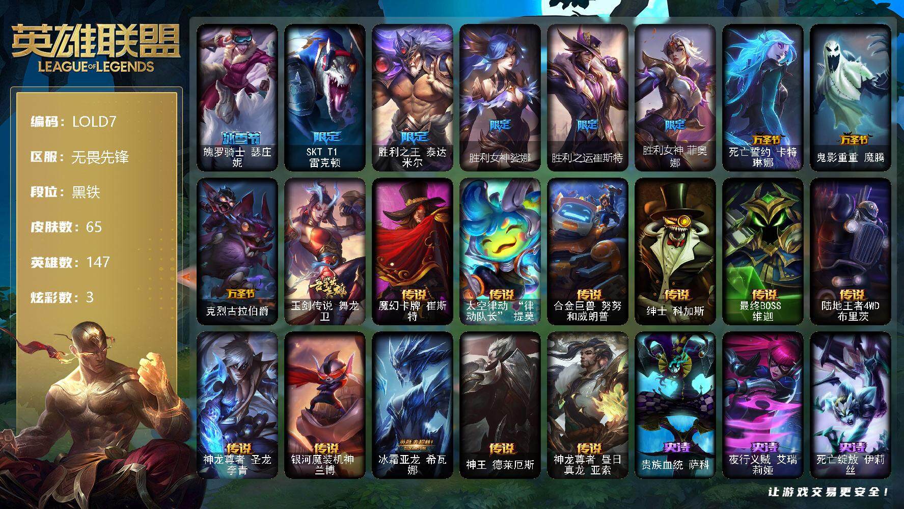 【云游堂】 【lold7】147英雄/65皮肤/10限定/2臻彩/3炫彩/11传说/9史诗/黑铁/无畏骑士瑟庄妮赤子初心/可爱可爱粉红红布里茨/魄罗骑士瑟庄妮/sktt1雷克顿/胜利之王泰达米尔/胜利女神娑娜/胜利之运崔斯特/胜利女神菲奥娜/死亡誓约卡特琳娜/鬼影重重魔腾/克烈古拉伯爵/玉剑传说舞龙卫/魔幻卡牌崔斯特/太空律动律动队长提莫/合金巨兽努努和威朗普/绅士科加斯/最终boss维迦/陆地王者4wd布里茨/神龙尊者圣龙李青/银河魔装机神兰博/冰霜亚龙希瓦娜/神王德莱厄斯/神龙尊者昼日真龙亚索/贵族血统萨科/夜行义贼艾瑞莉娅/死亡绽放伊莉丝/军神战甲波比/飞车暴走族古拉加斯/铁甲雄心盖伦/腥红之月鬼武者慎/驯龙女巫璐璐/霸天剑魔亚托克斯/亮丽女神希维尔/电锯狂人厄加特/星之吞噬者费德提克/荒野镖客阿利斯塔/瑞兹白须/小蜜蜂提莫/宗师级钓鱼训练师贾克斯/探戈灵魂伊芙琳/自由女神卡尔萨斯/千纸凤凰艾尼维亚/万能小丑萨科/地下都市梦魇萨科/源计划正义艾瑞莉娅/珊瑚礁墨菲特/石破天惊墨菲特/黑色玫瑰假面舞会伊莉丝/单身贵族内瑟斯/银河魔装机神奈德丽/诺克萨斯波比/英仙座珀尔修斯潘森/光执事伊泽瑞尔/灵能特工伊泽瑞尔/烈阳执事蕾欧娜/极寒慎/炎爆慎/未来战士慎/符文生物泽拉斯/高丽风情阿狸/禁卫机甲格雷福斯/绒毛菲兹/猎户星神韦鲁斯/灵魂莲华德莱厄斯/战斗学院杰斯/战斗校长悠米/黎明使者薇古丝