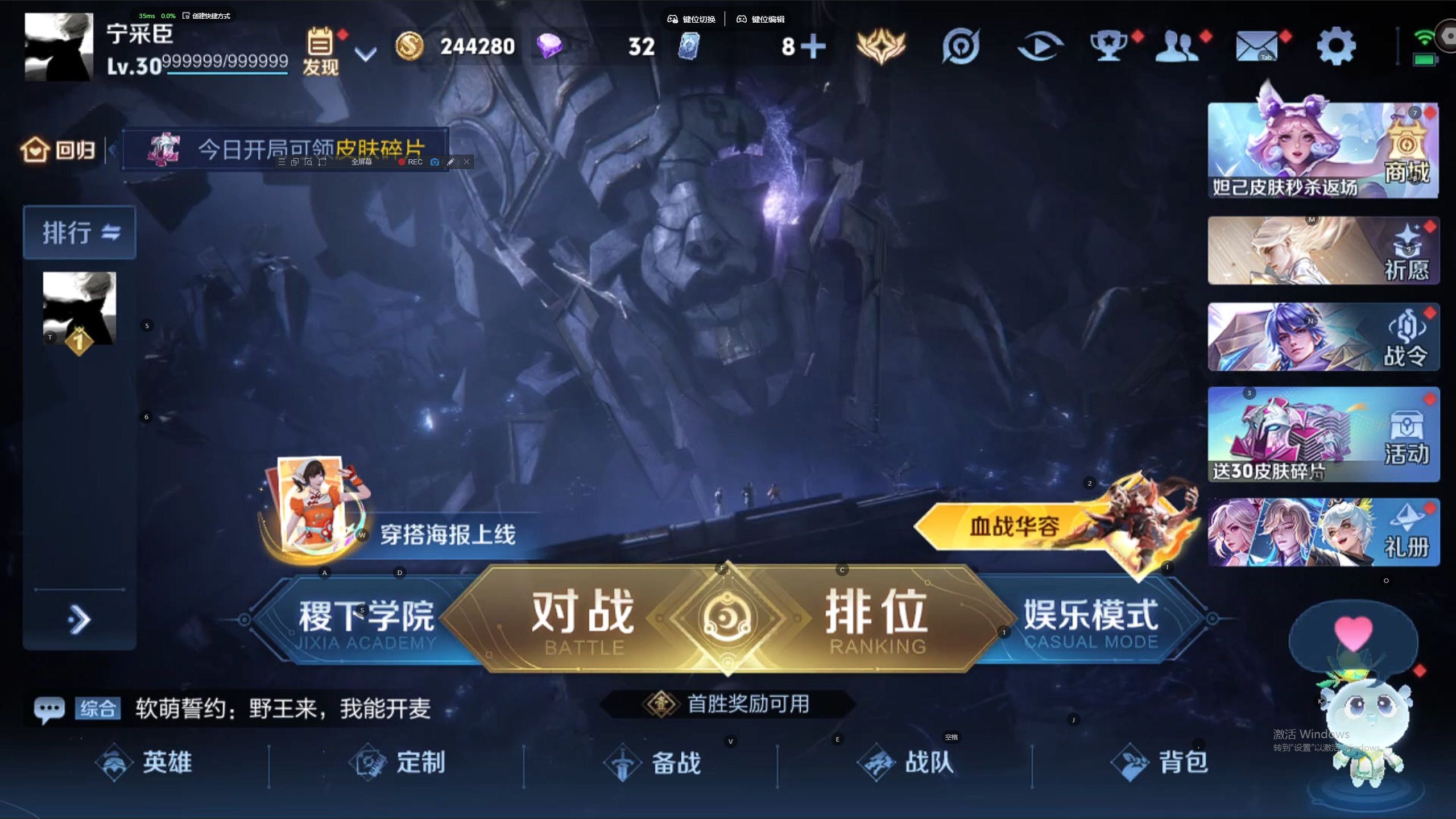【云游堂】 【可二次实名】【豪华带妹系列248皮1典藏1星传说2传说精品V7号!鸣剑曳影!+可二次实名】B12183.安卓QQ区 营地id:449717568 典藏1个鸣剑曳影 星传说1个星际治安官 传说2个炽阳神光、超时空战士 贵族积分4万 典藏下一个马上就出!喜欢别错过!