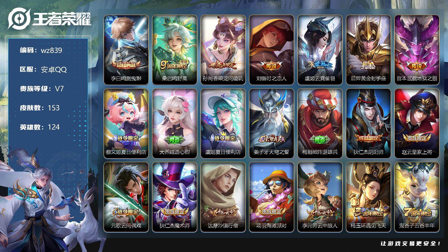 【云游堂】 【可二次实名】【wz839】【商品标题】:安卓Q-V7-永恒钻石II段位-124英雄-153皮肤-1典藏-0珍品无双-0无双-0珍品传说-6传说-47史诗 【荣耀典藏】:李白鸣剑曳影 【传说皮肤】:桑启鸣野蒿,孙尚香乘龙问璇玑,刘备时之恋人,虞姬云霓雀翎,后羿黄金射手座,宫本武藏地狱之眼 【限定皮肤】:蔡文姬夏日便利店,大乔绒语心约,虞姬夏日便利店,姜子牙天穹之誓,杨戬破阵退雄兵,狄仁杰阴阳师,赵云皇家上将,元歌云间偶戏,狄仁杰魔术师,达摩沙漠行僧,项羽海滩派对,李元芳云中旅人,杨玉环遇见飞天,鬼谷子五谷丰年,苏烈千军破阵,百里玄策原初追逐者,公孙离玉兔公主,沈梦溪大漠名商,裴擒虎擒涛扼浪,云中君纤云弄巧,嫦娥拒霜思,西施玲珑珍味,鲁班大师探海日志,桑启海盐诗旅,戈娅驭风魔法,艾琳流音漫舞,司空震地狱燃心,阿古朵江河有灵,张良古海寻踪,蒙犽百解令,高渐离燃音魔法,妲己灵卜魔法,鬼谷子天穹祈灯,伽罗琥珀纪元,姬小满妄想食味,孙尚香乘龙问璇玑,百里玄策超元猎域,沈梦溪龙舞盛年,刘邦剑破天穹,程咬金群星魔术团,镜青焰无极,项羽苍威无极,刘备异域游侠,周瑜熔金海岸 【年限皮肤】:孙尚香乘龙问璇玑 【赛季限定】:达摩沙漠行僧,张良古海寻踪,李元芳云中旅人,苏烈千军破阵,百里玄策原初追逐者,沈梦溪大漠名商,裴擒虎擒涛扼浪,鲁班大师探海日志,桑启海盐诗旅,鬼谷子天穹祈灯,刘邦剑破天穹,姜子牙天穹之誓 【战令限定】:蔡文姬夏日便利店,虞姬夏日便利店,元歌云间偶戏,艾琳流音漫舞,西施玲珑珍味,司空震地狱燃心,戈娅驭风魔法,高渐离燃音魔法,妲己灵卜魔法,镜青焰无极,项羽苍威无极 【史诗皮肤】:鲁班七号电玩小子,露娜紫霞仙子,阿轲暗夜猫娘,赵云皇家上将,甄姬冰雪圆舞曲,狄仁杰魔术师,廉颇地狱岩魂,宫本武藏鬼剑武藏,孙尚香水果甜心,嬴政摇滚巨星,妲己魅力维加斯,妲己女仆咖啡,吕布圣诞狂欢,李白千年之狐,张飞乱世虎臣,花木兰水晶猎龙者,刘邦德古拉伯爵,夏侯惇乘风破浪,小乔缤纷独角兽,兰陵王暗隐猎兽者,安琪拉心灵骇客,李元芳逐浪之夏,杨玉环遇见飞天,伽罗箭羽风息,狄仁杰鹰眼统帅,百里玄策原初追逐者,云中君纤云弄巧,元歌云间偶戏,沈梦溪月团寄思,司马懿暗渊魔法,嫦娥拒霜思,公孙离玉兔公主,鬼谷子五谷丰年,戈娅驭风魔法,司空震地狱燃心,阿古朵江河有灵,蒙犽百解令,妲己灵卜魔法,高渐离燃音魔法,伽罗琥珀纪元,姬小满妄想食味,百里玄策超元猎域,镜青焰无极,蔡文姬夏日便利店,亚连破空之剑,牛魔星界战将,西施织梦人,公孙离涂山容容 【其他皮肤】:项羽海滩派对,韩信教廷特使,韩信街头霸王,露娜哥特玫瑰,赵云忍炎影,芈月红桃皇后,白起白色死神,扁鹊化身博士,姜子牙时尚教父,典韦黄金武士,亚瑟死亡骑士,花木兰兔女郎,张飞五福同心,宫本武藏万象初新,狄仁杰阴阳师,刘备汉昭烈帝,钟无艳海滩丽影,王昭君幻想奇妙夜,老夫子功夫老勺,苏烈坚韧之力,明世隐虹云星官,沈梦溪鲨炮海盗猫,哪吒次元突破,盾山圆桌骑士,狂铁特工战影,刘禅秘密基地,露娜瓷语鉴心,张良缤纷绘卷,鲁班大师乓乓大师,苏烈千军破阵,达摩沙漠行僧,米莱狄契约魔法,沈梦溪大漠名商,蒙恬蔚蓝守将,李元芳云中旅人,刘备潮玩造梦师,桑启海盐诗旅,猪八戒潮玩探月行,赵怀真太极少年,裴擒虎擒涛扼浪,太乙真人劲辣红锅,鲁班大师探海日志,西施玲珑珍味,李元芳妄想特派,艾琳流音漫舞,张良古海寻踪,钟无艳聚星闪耀,海月王牌新星,兰陵王幻夜行动,曹操决胜大满贯,后羿完美运算,程咬金暖冬絮语,鬼谷子天穹祈灯,妲己灵卜魔法,海诺时空谍影,嫦娥漠中幻影,朵莉亚金色潮汐,亚瑟鸿运当头,沈梦溪龙舞盛年,钟无艳春野之旅,扁鹊无尽旅途,刘邦剑破天穹,盘古经纬探寻者,程咬金群星魔术团,项羽苍威无极,大司命暗都幽影,刘备异域游侠,杨戬破阵退雄兵,姜子牙天穹之誓,周瑜熔金海岸,虞姬夏日便利店,大乔绒语心约,孙悟空神迹守卫,盘古敬我三分,苍苍林狼骑,典韦铁骨偃魂,姜子牙星梦巡礼,阿古朵布丁狗之约,甄姬逆浪荇歌,狄仁杰锦衣卫,张良一千零一夜,孙悟空西部大镖客,后羿精灵王,蔡文姬蔷薇王座,马可波罗激情绿茵,苍维京掠夺者,黄忠芝加哥教父,干将莫邪第七人偶,铠龙域领主,百里守约绝影神枪,女娲尼罗河女神,弈星踏雪寻梅,米莱狄精准探案法,元歌午夜歌剧院,伽罗花见巫女,瑶森,曜归虚梦演,澜孤猎,司空震启蛰 【内测皮肤】:狂铁特工战影 【营地ID】:1807610269