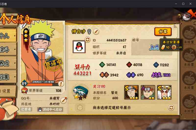 【云游堂】 【可包人脸】wd2278-安卓手q1650区-v11-战斗力636w-13s-30a-九喇嘛连结漩涡鸣人-忍界大战春野樱-大蛇丸-纲手-死门迈特凯-波风水门-秽土转生千手扉间-秽土转生宇智波斑-木叶创立宇智波斑-白面具宇智波斑-秽土转生半藏-忍界大战大野木-大筒木金式