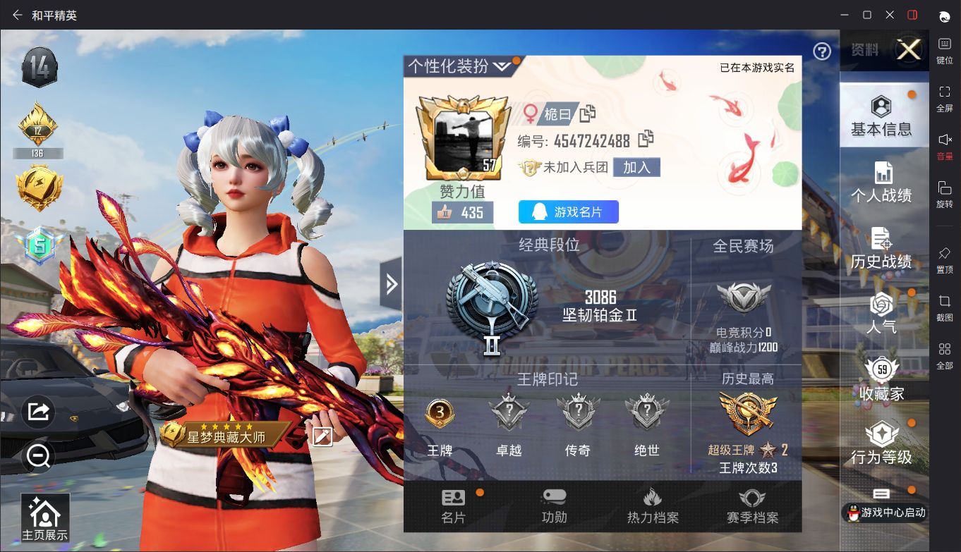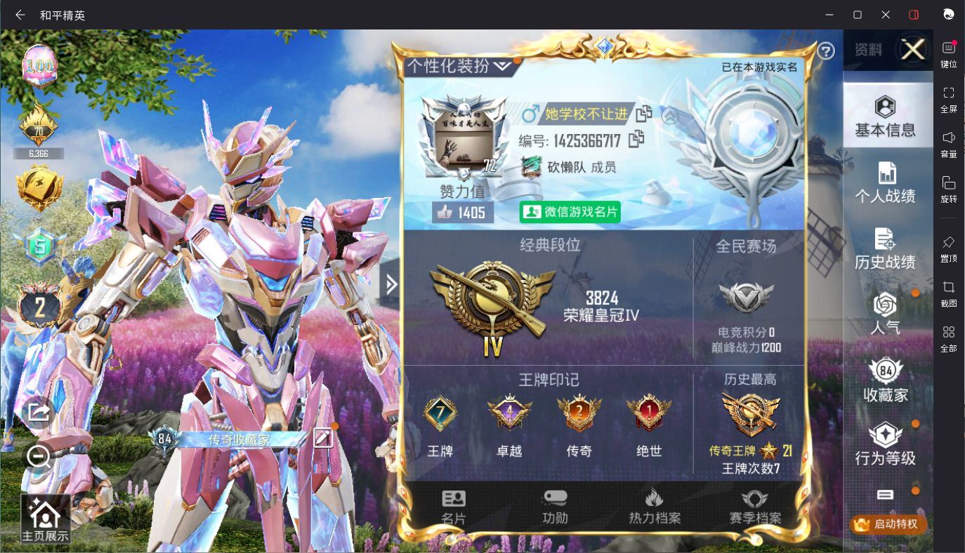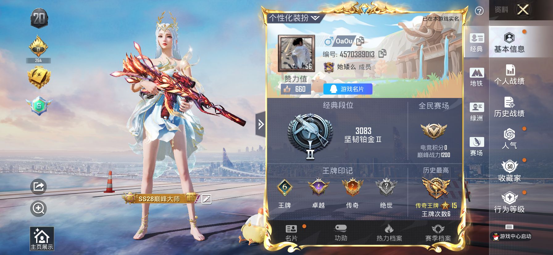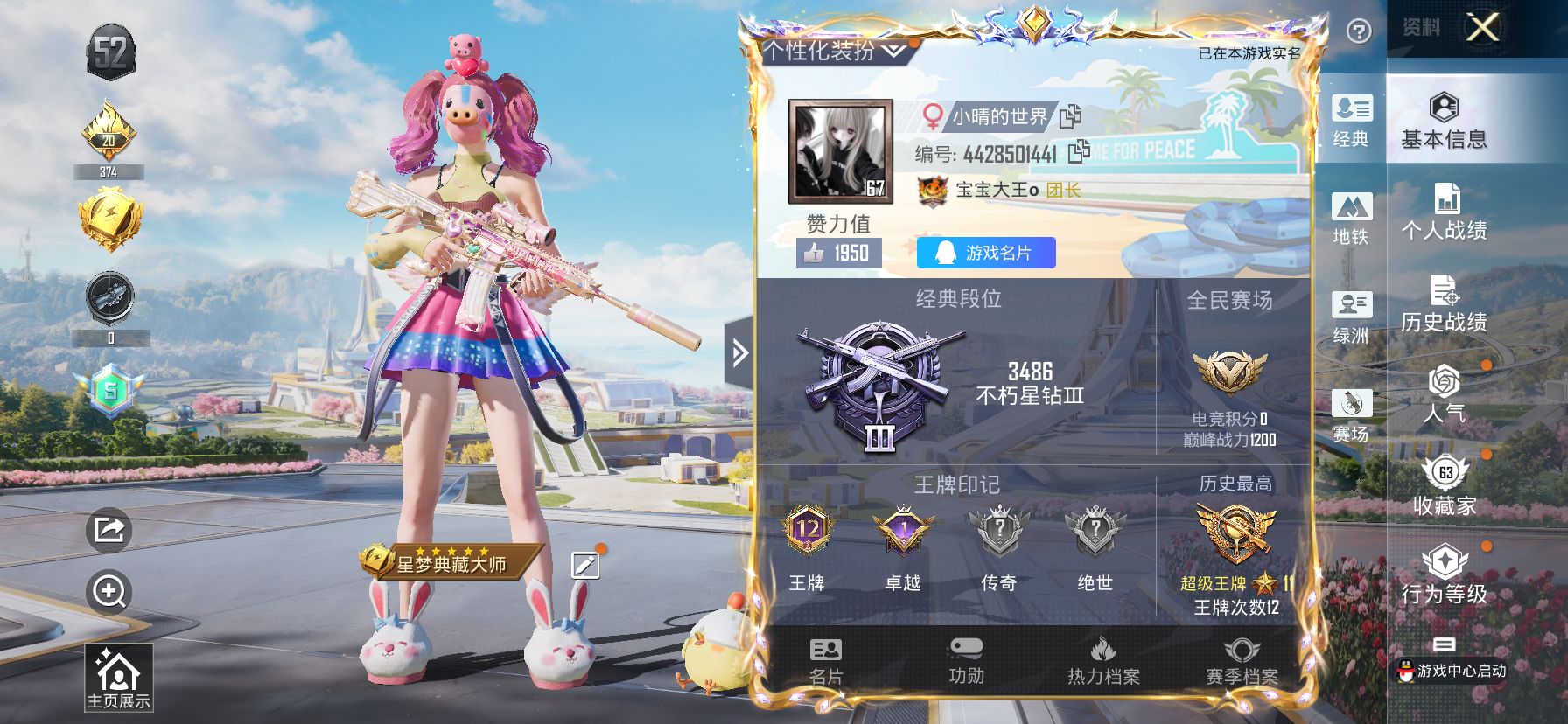【云游堂】 【可二次实名】2级帕修斯!塞卢姆!3级宾利飞驰(皇家紫)!满级宇宙意志!雪国幻梦!12万热力值!可二次!D10666.安卓微信.2红24粉14枪10载具.当前赛季豪华手册已开.营地id:785910046. 【粉色套装】套装-金曜白虎/套装-木曜青龙/套装-土曜战麒/套装-水曜玄武/套装-火曜朱雀/套装-古堡领主/套装-守护骑士/套装-梦幻火箭/套装-精灵迷巫/套装-金风玉露/套装-星之信仰/套装-蝶舞迷情/套装-彗云及圣/套装-向日葵/套装-幻彩马卡龙/套装-心之恋语/套装-香水柠檬/套装-银龙傲海/套装-骨龙祭渊/套装-沙场疾风/角色-圣堂之誓/角色-星梦奇缘/角色-千金淑猫 【粉色枪皮】M416-五爪金龙[2级]/M416-心之恋语[7级]/M762-甜蜜誓约[5级]/M24-星之信仰[4级]/AUG-星梦奇缘[3级]/Kar98K-伏魔团[4级]/Kar98K-巳巳如意[5级]/AWM-焰龙焚天[4级]/Mk14-甜梦熊击[5级]/UMP45-宇宙意志[9级]/Vector-最终圣卫者[3级]/DP-28-圣堂之誓[3级]/DP-28-扶摇飞仙[2级]/烟雾弹-丁香清露[5级] 【载具】合金龙骨(绿)/兰博基尼URUS(明艳黄)/玛莎拉蒂Ghibli(粉)/最终圣卫者摩托车/双人摩托-梦幻火箭/兰博基尼Aventador SVJ(翡翠绿)/宾利欧陆GT敞篷(火焰橘)/星梦玉骢 【飞行器】至尊龙雀飞行服/梦幻火箭飞行器/精灵迷巫飞行器/春暖花开飞行器/古堡领主飞行器/繁花小夜曲飞行翼/四圣焕新飞行器/马卡龙飞行器/潮汐统领飞行器/终晖之翼飞行器/深渊漩涡飞行器/星梦奇缘飞行器 【珍稀背包】洛神天依背包(3级)