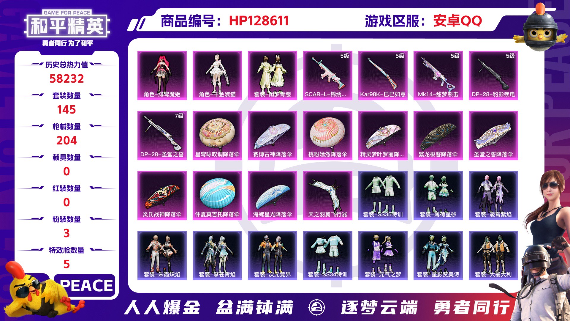 【云游堂】 2184660-苹果q-5粉装3特效呛【5粉装】凤凰座一辉bearbrick未来领航者霓裳武神俏雪含霜【3特效呛】m416-电玩时刻(5级)kar98k-巳巳如意(5级)groza-镜光银凌(5级)【11热门】mark.06龟仙人梦魇先生迅捷狂鲨团圆交子瑞龙福将粉红小猪破蛋小黄鸡m762-瑞龙福将m24-奇异狩猎者s686-奇异狩猎者【1头盔】甜心宝贝头盔【1背包】幻影战神背包营地id:791643301