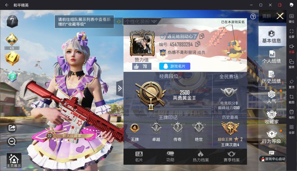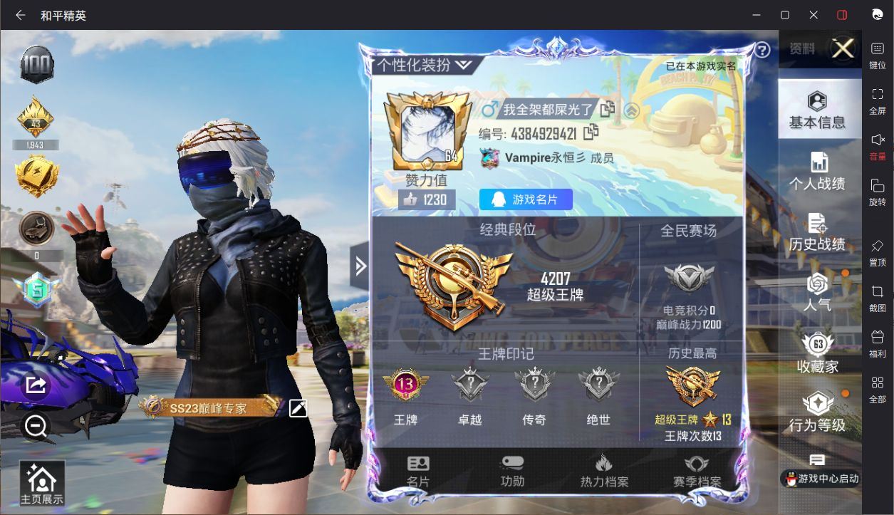 【云游堂】 【可二次实名】SS20战神框!10万热力值!兰博基尼Estoque(银翼灰)!梦幻火箭!新星烈龙!满级心之恋语!D10600.安卓QQ.230套装24粉装7载具243枪皮6粉枪7飞行器.营地ID:716470312.特权卡284天. 【稀有资产】套装-浪漫天命/套装-雪山精英/套装-暗影哥特/套装-浪漫波比/套装-狂沙舞者/套装-牛仔情诗/套装-萌萌史莱姆/M416-仓鼠灰灰 【赛事队服】套装-TJB战队服 【粉色套装】套装-梦幻火箭/套装-金风玉露/套装-黄蜂伯爵/套装-放客神游/套装-新星烈龙/套装-馨动时刻/套装-极致幻想/套装-甜梦冰蝶/套装-冰霜白皇/套装-童趣迷兔/套装-炙焰红王/套装-桀骜红莲/套装-天之羽翼/套装-香水柠檬/套装-葫芦兄弟/套装-蓝莓炮弹/套装-恐龙拽拽/套装-精灵娃娃/套装-荒漠赏金/套装-绒雪飘舞/套装-傲雪凌霜/套装-霁雪冰心/角色-圣堂之誓/套装-墨金战记 【粉色枪皮】M416-心之恋语[7级]/AKM-炫紫旋律[3级]/AKM-梦之光华[7级]/SCAR-L-童趣迷兔[5级]/AUG-暖羊咩咩[5级]/UMP45-相思残雪[5级] 【载具】海龙奔腾/阿斯顿·马丁DBX(蓝)/兰博基尼URUS(明艳黄)/特斯拉Roadster(水滴蓝)/兰博基尼Estoque(银翼灰)/阿斯顿·马丁DBS(绿)/特斯拉Model 3(冷光银) 【飞行器】神秘黑猫飞行器/天之羽翼飞行器/诡面斩飞行器/绒雪飘舞飞行器/阿狸红飞行器