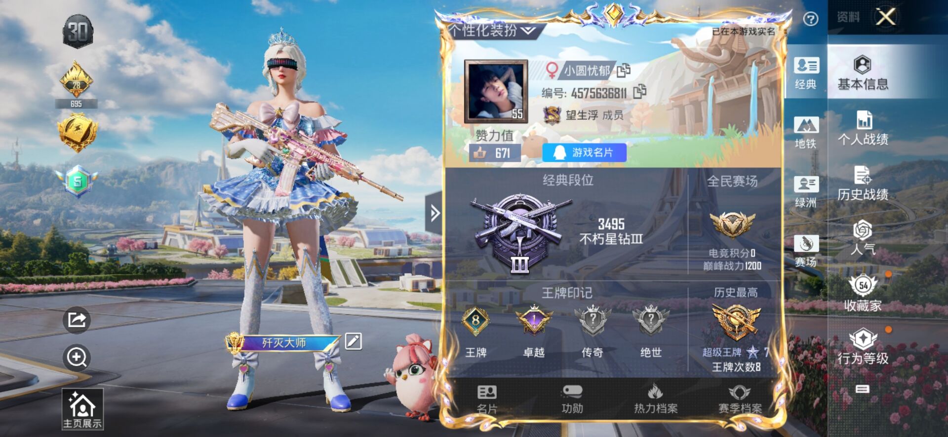 【云游堂】 【可二次实名】2级云鸾!星梦奇缘!满级M416风花雪月!3.7万热力值!D10593.安卓QQ.66套装1红装5粉装91枪皮7粉枪3飞行器.营地ID:781887077.星穹咏叹调.镜域双华灵镜之阶. 【稀有资产】盛世惊鸿-云鸾[2级]/套装-龟仙人/角色-都市丽猫/大砍刀-青龙偃月刀 【粉色套装】角色-圣堂之誓/套装-傲傲奶龙/角色-星梦奇缘/套装-金丰海韵/套装-星穹咏叹调 【粉色枪皮】AKM-绿萝繁花[5级]/SCAR-L-锦绣绵绵[5级]/M416-风花雪月[7级]/Kar98K-巳巳如意[5级]/M24-莲影清波[4级]/Mk14-盛世惊鸿[3级]/MG3-酷泡奶龙[6级] 【飞行器】天之羽翼飞行器/凤舞九天飞行器/镜域双华-灵镜之阶 【珍稀背包】洛神天依背包(3级)/