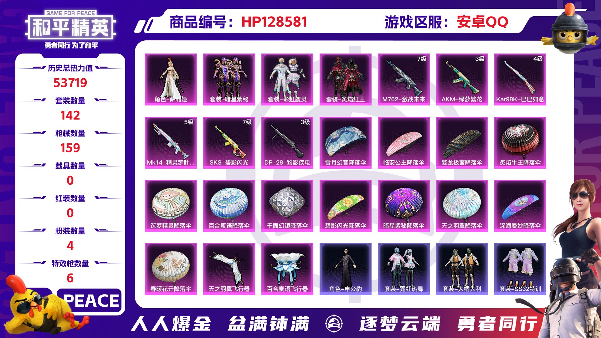 【云游堂】 【可二次实名】2182445-安卓qq历史总热力值:53719粉装数量:4特效呛数量:6王牌印记:6历史最高段位:超级王牌14星套装数量:142时装数量:583呛械数量:159战备数量:129装备数量:194时装:套装-彩虹鹿灵套装-暗星紫秘套装-炙焰红王角色-萨利娅套装-ss10特训套装-ss13特训套装-ss14特训套装-ss15特训套装-ss16特训套装-ss17特训套装-ss18特训套装-ss19特训套装-ss1特训套装-ss20特训套装-ss21特训套装-ss22特训套装-ss25特训套装-ss2特训套装-ss32特训套装-ss4特训套装-ss5特训套装-ss6特训套装-ss7特训套装-ss8特训套装-ss9特训套装-万圣娃娃套装-传奇侦探套装-六六大吉套装-冰凉西瓜套装-冰爽海盐套装-冷焰舞者套装-凛冬战士套装-刚毅裁决者套装-北国孤狼套装-半糖蓝莓套装-吉莉礼服套装-呆萌铁蟹套装-圣诞大吉套装-坚韧舞者套装-夏日音浪套装-大橘为重套装-大橘大利套装-奇异狩猎者套装-娇憨猪猪套装-完美偶像套装-巳巳如意套装-幻世战舞者套装-异彩先驱套装-惊鸿侠骨套装-战地督导套装-战术大师套装-拳皇97八神庵套装-探宝勇士套装-时尚圣诞套装-星梦畅游套装-星河入梦套装-智慧隐士套装-极乐追光套装-极速竞梦套装-格斗专家套装-格斗先锋套装-梦之呓语套装-梦起落英套装-梦魇先生套装-棕色飞行服套装-沙漠兵团套装-治愈之星套装-浪漫樱花套装-海滨突袭者套装-海盐绵绵冰套装-游猎者套装-湖蓝色名流套装-滨海假日套装-灰色格斗者套装-炫蓝之夏套装-炽焰拳师套装-热情海星套装-热血青春套装-焰山流火套装-熔岩使者套装-燃烧卡路里套装-牛气满满套装-特战装甲套装-特殊使命套装-特种颜团子套装-特训学院套装-玉兔迎春套装-甜心亚梦套装-甜蜜告白套装-疯狂小兔子套装-白色伏地魔套装-福星高照套装-科技之星套装-空投萌叽套装-竞技勇士朋克套装-竞技名士套装-竞技达人朋克套装-粉红小猪套装-纯真浪花套装-缤纷果语套装-耀粉歌者套装-茉莉之诺套装-荣耀套装-萌趣咩咩套装-萌趣颜团子套装-蓝色守护者套装-虚音幻奏套装-覆海蛟龙套装-跃动心情套装-轻风白浪套装-都市魅力套装-酸甜橘柚套装-金耀舞者套装-银白舞王套装-锦衣飞扬套装-镭射皇者套装-长空猛禽套装-阳光火鸡套装-雪山征服者套装-雪山精英套装-霓虹极客套装-霓虹热舞套装-霓虹街区套装-青春校园套装-音速流光套装-风行保卫者套装-风铃甜诗套装-飞行日记套装-飞驰魅影套装-骑行爱好者套装-魅力单车套装-鹤鸣套装-麻辣教官套装-黄色名流套装-黑夜传说套装-黑色伏地魔套装-龙的传人套装-龙腾端午玩偶服-卖崽青蛙角色-冰公主角色-申公豹角色-风玲呛械:akm-绿萝繁花(3级)m762-激战未来(7级)ac-val-天降萌叽ac-val-彩虹甜喵ac-val-甜心亚梦akm-夜灯akm-灼热熔岩akm-生命誓言akm-破晓战魂akm-萌趣颜团子akm-虎虎生威akm-霓虹街区akm-龙的传人aug-天降萌叽aug-幻影战神aug-紫晶流影aug-耀粉歌者g36c-暗夜玫瑰groza-异彩先驱groza-恐龙拽拽groza-治愈之星groza-生命誓言m16a4-冰河战士m16a4-幻世战舞者m16a4-甜心亚梦m16a4-生命誓言m416-夜灯m416-红色方程式m416-绯红前夜m416-蓝色火焰m762-拳皇97m762-绯红前夜m762-诡娃娃m762-镭射皇者mk47-乌木金纹qbz-彩虹符号qbz-纯真浪花qbz-诡娃娃qbz-飞驰魅影scar-l-海盐豹豹scar-l-生命誓言scar-l-碧影闪光蜜獾-垂柳戏鸭蜜獾-娇憨猪猪蜜獾-精灵梦叶罗丽kar98k-巳巳如意(4级)awm-纯真浪花kar98k-彩虹符号kar98k-炫彩节奏kar98k-红色方程式kar98k-飞驰魅影m200-惊鸿侠骨m24-冰封烈焰m24-影袭m24-治愈之星m24-炫彩节奏m24-青空秋雨mk14-精灵梦叶罗丽(5级)sks-碧影闪光(7级)m417-惊鸿侠骨mini14-异彩先驱mini14-辉羽雀灵mk14-乌木金纹mk14-治愈之星mk14-童趣迷兔sks-夜灯sks-诡娃娃slr-娇憨猪猪vss-田园牧歌vss-碧影闪光vss-镭射皇者vss-香桃花海mp5k-异彩先驱p90-飞驰魅影ump45-天启纪元ump45-春暖花开ump45-生命誓言ump45-粉色回忆ump45-诡娃娃uzi-娇憨猪猪uzi-炫彩节奏uzi-生命誓言vect-彩虹符号vect-治愈之星vect-生命誓言vect-田园牧歌vect-香水柠檬汤姆逊-天降萌叽汤姆逊-异彩先驱汤姆逊-纯真浪花aa12-g-纯真浪花dbs-暗星紫秘dbs-甜心亚梦s12k-垂柳戏鸭s12k-娇憨猪猪s12k-幻世战舞者s12k-香水柠檬s1897-碧影闪光s1897-精灵梦叶罗丽s1897-镭射皇者s1897-飞驰魅影s686-冰封烈焰s686-奇异狩猎者s686-生命誓言dp-28-豹影疾电(3级)dp-28-甜心亚梦m249-彩虹符号m249-拳皇97m249-金丰海韵m249-镭射皇者mg3-乌木金纹mg3-幻世战舞者mg3-惊鸿侠骨p1911-冰封烈焰p92-拳皇97信号呛-异瞳寒姬大砍刀-粉色回忆平底锅-冰封烈焰平底锅-娇憨猪猪平底锅-异彩先驱平底锅-惊鸿侠骨平底锅-拳皇97平底锅-治愈之星平底锅-甜心亚梦平底锅-田园牧歌平底锅-精灵梦叶罗丽平底锅-纯真浪花平底锅-诡娃娃平底锅-镭射皇者平底锅-飞驰魅影撬棍-传奇侦探撬棍-幻世战舞者爆炸猎弓-惊鸿侠骨破片手留单-萌趣颜团子战备:临安公主降落伞千面幻镜降落伞天之羽翼降落伞春暖花开降落伞暗星紫秘降落伞深海曼妙降落伞炙焰牛王降落伞百合蜜语降落伞碧影闪光降落伞筑梦精灵降落伞繁龙极客降落伞雪月幻音降落伞2022烟花降落伞2b战斗服款降落伞ss14王牌降落伞ss18王牌降落伞ss19王牌降落伞ss20王牌降落伞ss21王牌降落伞ss6王牌降落伞光子定制降落伞冰封烈焰降落伞冰河战士降落伞勇者同行降落伞化学天才降落伞娇憨猪猪降落伞寂夜之火降落伞山经魅狐降落伞幻世战舞者降落伞异彩先驱