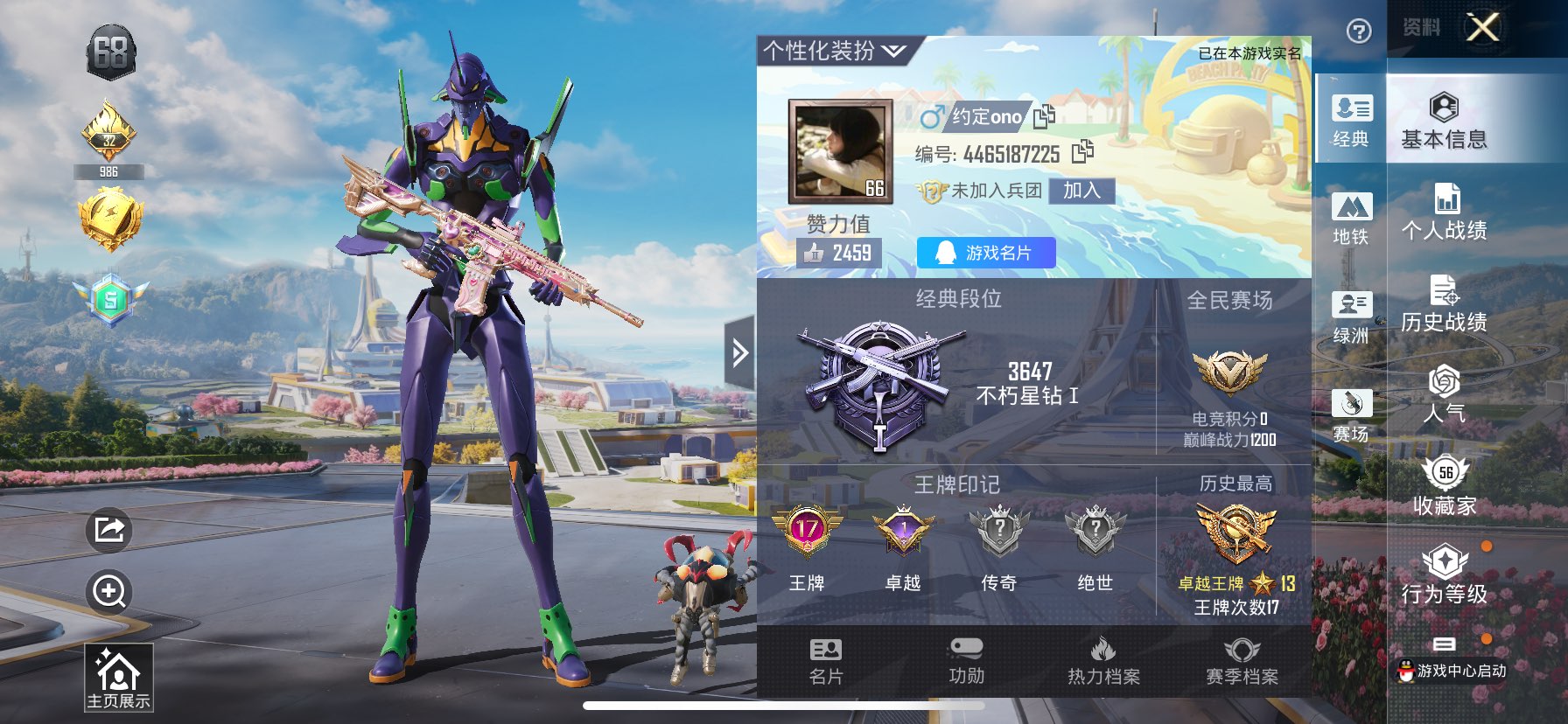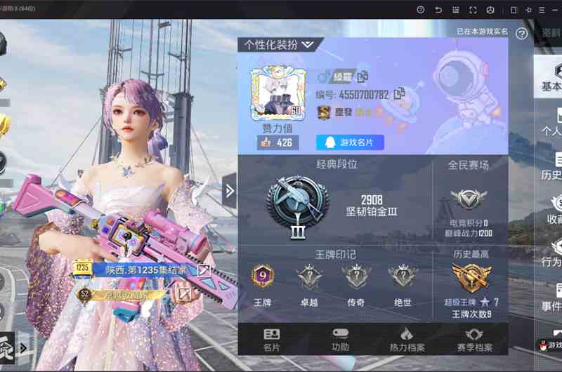 【云游堂】 【可二次实名】【akm-梦之光华(5级)!m416-五爪金龙(5级)!ma16-心之恋语(6级)!groza-香水柠檬(6级)!15粉装5车1飞机4特效呛+可二次实名!】d10384.iosqq. 【热力值】65040 【历史最高段位】超级王牌4星 【王牌印记】11 【珍稀数量】4 【套装数量】123 【呛械数量】148 【 【飞行器数量】2 【稀有】角色-mark.06/套装-奇异狩猎者/套装-粉红小猪/套装-龟仙人 【粉色套装】套装-宝贝奶油派/套装-天使彩虹糖/套装-梦幻火箭/套装-蝶舞迷情/套装-甜蜜誓约/套装-诡面斩/套装-草莓生巧/套装-迷蝶贵族/套装-极致幻想/套装-俏皮狐尾/套装-暗翼战神/套装-苍蓝魅影/套装-翡翠骑士/套装-绮梦青鸾/套装-星之彼岸 【粉色呛皮】m416-五爪金龙[5级]/m416-心之恋语[6级]/groza-香水柠檬[6级]/akm-梦之光华[5级] 【载具】阿斯顿·马丁dbx(橙)/特斯拉roadster(沁心粉)/特斯拉roadster(水滴蓝)/阿斯顿·马丁dbs(红)/双人摩托-双刃魅影(绿) 【飞行器】甜蜜誓约飞行器/锦绣火鲤飞行器