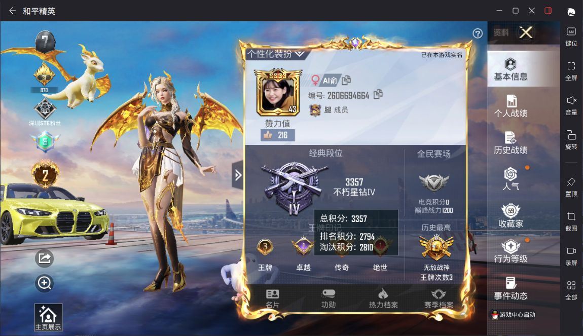 【云游堂】 【可二次实名】极品女号!瑞拉!初翊!欧若拉!SS33战神框!沙漠守护者!合金龙骨蓝!D10877.IOSQQ.3红装8粉装5载具11粉枪.宝马M4(圣保罗黄).狂魅哈莉.时光之吻.3.8万热力值. 【稀有资产】辉羽雀灵-初翊[1级]/圣域龙灵-瑞拉[2级]/镜域双华-欧若拉[1级]/套装-沙漠守护者/套装-粉红小猪/套装-龟仙人/套装-圣穹绘梦/角色-灵公主 【赛事队服】套装-STE追光队服 【粉色套装】角色-绝色倾城/角色-脉冲星/角色-幻星舰长/角色-时光之吻/角色-狂魅哈莉/角色-狂魇小丑/套装-幻彩电音/套装-星穹咏叹调 【粉色枪皮】AKM-炫紫旋律[5级]/M416-风花雪月[5级]/AUG-圣斗士星矢[5级]/Kar98K-圣域龙灵[1级]/M24-镜域双华[3级]/AWM-湮灭星辰[5级]/Mk14-爆裂游戏[5级]/AKS-74U-星穹咏叹调[5级]/MG3-辉羽雀灵[3级]/MG-36-幻彩电音[4级]/破片手榴弹-瓶中星球[2级] 【载具】合金龙骨(蓝)/宝马M4(圣保罗黄)/迈kai伦塞纳(冷萃蓝)/辉羽雀灵自行车 【僚机】僚机-圣域龙宝 【飞行器】镜域双华-灵镜之阶/雀灵庇佑飞行器/圣域金龙飞行器[1级]/幻星舰长飞行器
