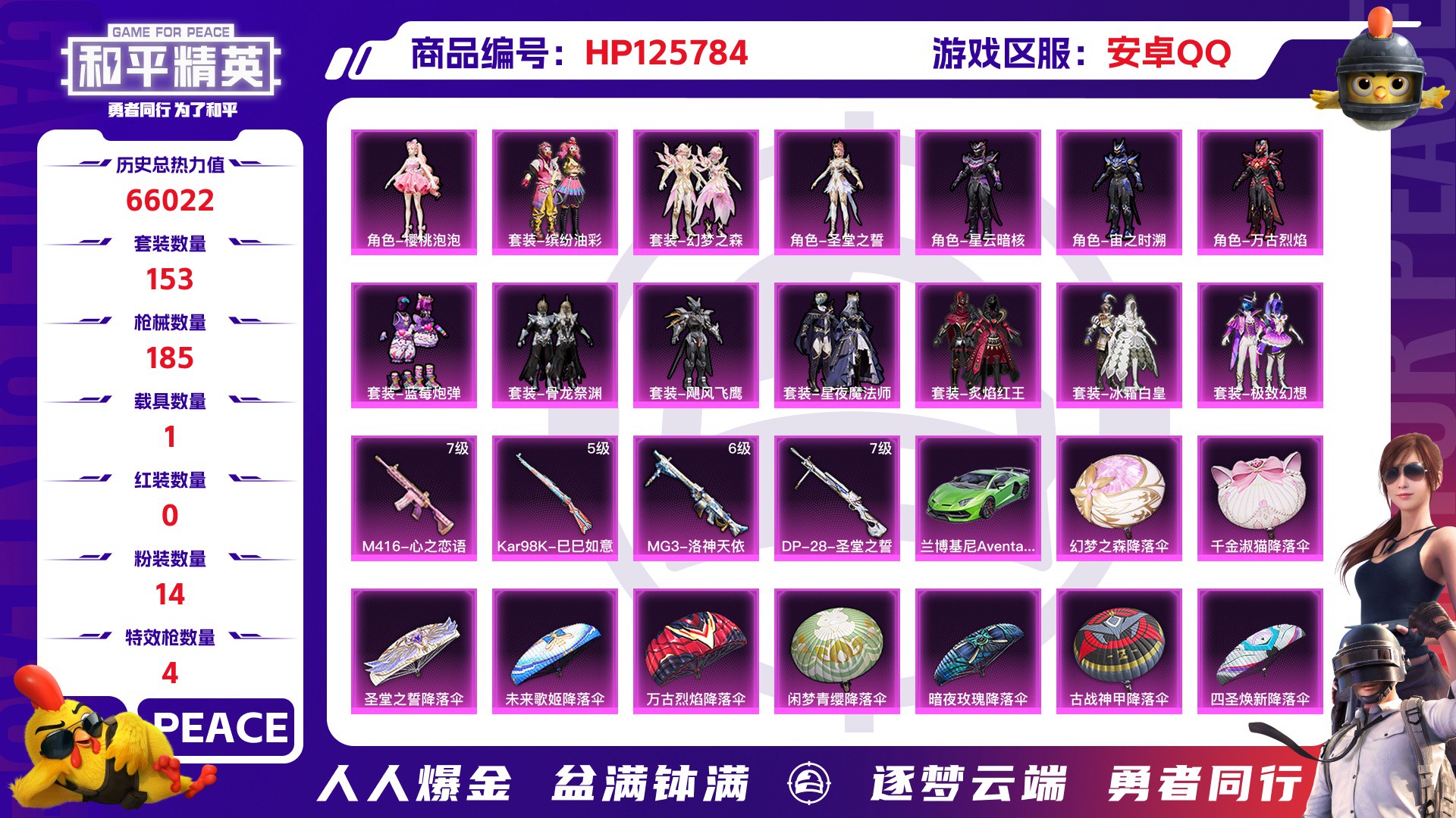 【云游堂】 【可二次实名】2158931-安卓qq历史总热力值:66022粉装数量:14特效呛数量:4载具数量:1王牌印记:14历史最高段位:卓越王牌9星套装数量:153时装数量:552呛械数量:185战备数量:131装备数量:236载具:兰博基尼aventadsvj(翡翠绿)时装:套装-冰霜白皇套装-幻梦之森套装-星夜魔法师套装-极致幻想套装-炙焰红王套装-缤纷油彩套装-蓝莓炮弹套装-飓风飞鹰套装-骨龙祭渊角色-万古烈焰角色-圣堂之誓角色-宙之时溯角色-星云暗核角色-樱桃泡泡套装-ss11特训套装-ss12特训套装-ss13特训套装-ss14特训套装-ss15特训套装-ss16特训套装-ss17特训套装-ss18特训套装-ss19特训套装-ss20特训套装-ss21特训套装-ss22特训套装-ss23特训套装-ss24特训套装-ss25特训套装-ss26特训套装-ss27特训套装-ss28特训套装-ss30特训套装-ss31特训套装-ss32特训套装-ss33特训套装-人鱼之吻套装-光之冒险套装-冥星暗影套装-冰爽海盐套装-冷焰舞者套装-千禧之恋套装-吉莉礼服套装-团圆交子套装-坚韧舞者套装-夏日音浪套装-大橘大利套装-天籁歌者套装-小丑鱼套装-巳巳如意套装-幻世战舞者套装-幻羽潜行套装-异彩先驱套装-快闪甜心套装-怒火燎原套装-惊鸿侠骨套装-懵萌河马套装-战地督导套装-战术大师套装-探宝勇士套装-无暇誓言套装-时空追击者套装-明鸳圣池套装-星渊小夜曲套装-春光漫游套装-暗夜魅影套装-暴风机械师套装-朱雀圣者套装-柠萌假日套装-橘黑制服套装-沙漠兵团套装-治愈之星套装-海盐绵绵冰套装-涂山之恋套装-深蓝色名流套装-湖蓝色名流套装-滨海假日套装-灼焰舞者套装-炫光向阳套装-炫蓝之夏套装-热血青春套装-焰鹰斗篷套装-燕燕于飞套装-牛气冲天套装-牛气满满套装-特种颜团子套装-特训学院套装-猎鹰套装-猛禽套装-玄武圣者套装-玉兔迎春套装-王牌教练套装-瑞龙福将套装-甜心亚梦套装-甜蜜熊情侣套装-电音精灵套装-白熊同盟套装-白色伏地魔套装-石蕴玉辉套装-破晓战魂套装-破蛋小黄鸡套装-神气柴柴套装-神秘领域套装-福星高照套装-科技之星套装-空岛之星套装-竞技名士套装-竞技达人朋克套装-紫幽梦套装-红色运动套装-绮丽涂鸦套装-绯格组合套装-缤纷果语套装-耀粉歌者套装-老实芭蕉套装-荣耀套装-萌趣颜团子套装-萌黄之夏套装-蓝冰羽套装-蓝彩潮人套装-蓝色守护者套装-蓝色运动套装-虎虎生威吉莉套装-虚音幻奏套装-街头潮人套装-贝斯之夜套装-辉光之湖套装-迅捷之星套装-迷雾之月套装-都市魅力套装-酒红色名流套装-醒狮腾龙套装-金戈铁马套装-锦衣飞扬套装-长空猛禽套装-雪鹰学院套装-霓虹极客套装-霓虹街区套装-青年教官套装-青涩时光套装-青玉碎影套装-飞行日记套装-魅力单车套装-鱼渊荷华套装-麻辣教官套装-黄色名流套装-黄色运动套装-黎明保卫者套装-龙的传人套装-龟仙人角色-孙悟空角色-情公主角色-湖雨初晴呛械:m416-心之恋语(7级)ac-val-乌木金纹ac-val-天降萌叽ac-val-快闪甜心ac-val-甜心亚梦akm-夜灯akm-彩虹符号akm-破晓战魂akm-萌趣颜团子akm-虎虎生威akm-锦绣火鲤akm-龙的传人aug-耀粉歌者aug-辉耀战甲famas-镜域双华g36c-懵萌河马g36c-时空追击者g36c-星穹咏叹调g36c-暗夜玫瑰groza-异彩先驱groza-彩虹符号groza-影袭groza-懵萌河马groza-治愈之星m16a4-冰河战士m16a4-幻世战舞者m16a4-甜心亚梦m16a4-红色方程式m16a4-蓝色火焰m416-糯团青竹m416-红色方程式m416-蓝色火焰m762-天降萌叽m762-奇异狩猎者m762-牛气冲天m762-瑞龙福将m762-绯红前夜mk47-乌木金纹qbz-彩虹符号scar-l-暗夜玫瑰scar-l-海盐豹豹scar-l-炫彩节奏scar-l-玉兔迎春scar-l-红色方程式蜜獾-天降萌叽kar98k-巳巳如意(5级)awm-圣堂之誓awm-焰鹰斗篷awm-王牌四分卫kar98k-彩虹符号kar98k-梦幻火箭kar98k-洛神天依kar98k-炫彩节奏kar98k-红色方程式kar98k-蓝莓炮弹m200-惊鸿侠骨m24-治愈之星m24-香水柠檬win94-瑞龙福将莫辛纳甘-乌木金纹莫辛纳甘-懵萌河马m417-惊鸿侠骨mk20-h-快闪甜心mini14-异彩先驱mini14-旋转彩虹mini14-炫彩节奏mini14-耀粉歌者mini14-香桃花海mk14-乌木金纹mk14-冰河战士mk14-山经魅狐mk14-治愈之星mk14-紫幽梦sks-夜灯sks-时空追击者sks-炫彩节奏sks-糯团青竹slr-四圣焕新vss-幻梦之森vss-彩虹符号aks-74u-鬼刀mp5k-异彩先驱p90-快闪甜心p90-玩趣呆呆ump45-仲夏莫吉托ump45-圣穹绘梦ump45-夜灯ump45-时空追击者ump45-涂山之恋ump45-炫光之旅ump45-生命誓言ump45-蓝色火焰uzi-冰河战士uzi-啾咪啾咪uzi-天降萌叽uzi-月影灵韵uzi-炫彩节奏uzi-红色方程式vect-彩虹符号vect-暗夜玫瑰vect-治愈之星vect-焰鹰斗篷vect-燕燕于飞vect-生命誓言汤姆逊-天降萌叽汤姆逊-异彩先驱汤姆逊-炫彩节奏汤姆逊-环太平洋汤姆逊-耀粉歌者野牛-燕燕于飞野牛-王牌四分卫dbs-圣堂之誓dbs-时空追击者dbs-焰鹰斗篷dbs-甜心亚梦s12k-幻世战舞者s12k-玩趣呆呆s12k-瑞龙福将s12k-破晓战魂s1897-紫幽梦s686-千金淑猫s686-生命誓言s686-繁龙极客s686-红色方程式s686-蜜语绒猫spas-12-燕燕于飞dp-28-圣堂之誓(7级)mg3-洛神天依(6级)dp-28-彩虹符号dp-28-焰鹰斗篷dp-28-甜心亚梦dp-28-锦绣火鲤m249-彩虹符号m249-破晓战魂m249-绯穹魔姬mg3-乌木金纹mg3-幻世战舞者mg3-惊鸿侠骨mg3-瑞龙福将pkm-啾咪啾咪pkm-懵萌河马pkm-紫幽梦p92-紫幽梦沙墨之鹦-快闪甜心短管霰弹-星穹咏叹调蝎式手呛-燕燕于飞大砍刀-万古烈焰平底锅-异彩先驱平底锅-快闪甜心平底锅-惊鸿侠骨平底锅-懵萌河马平底锅-时空追击者平底锅-治愈之星平底锅-