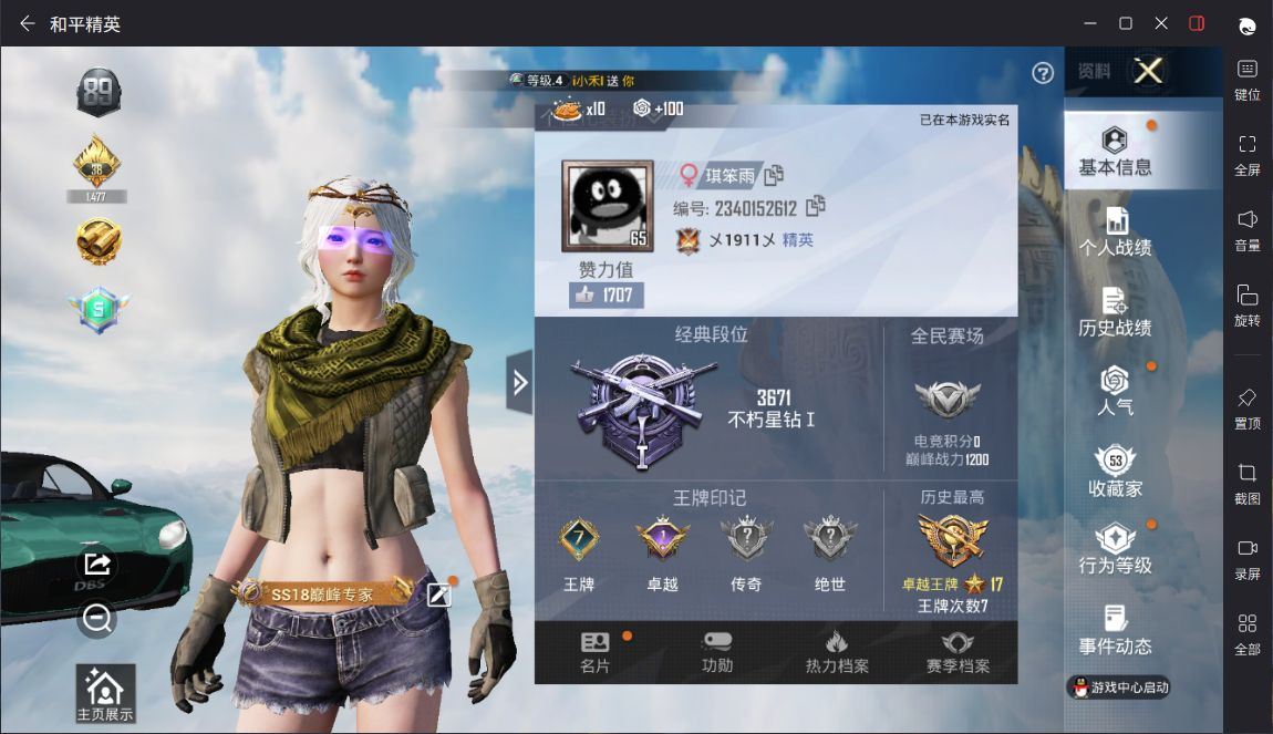 【云游堂】 【可二次实名】阿斯顿马丁绿!连体V8王者196皮!鸣剑曳影!4.9w热力值.D10870.IOSQQ-3粉衣3枪1车-3粉衣海渊国主、PEL轰鸣竞梦者、蝶舞迷情-3枪-4级豹影疾电、5级巳巳如意、7级炫紫旋律-1车阿斯顿马丁绿套装数量】125 【枪械数量】143 【粉枪械数量】3 【粉套装数量】3 【载具数量】1 【飞行器数量】3 【稀有资产】套装-浪漫天命/套装-潮萌小黄鸭/套装-浪漫波比/套装-狂沙舞者/M416-仓鼠灰灰 【粉色套装】套装-蝶舞迷情/套装-PEL轰鸣竞梦者/套装-海渊国主 【粉色枪皮】AKM-炫紫旋律[7级]/Kar98K-巳巳如意[5级]/DP-28-豹影疾电[4级] 【载具】阿斯顿·马丁DBS(绿) 【飞行器】春暖花开飞行器/炫紫旋律飞行器/心之恋语飞行翼