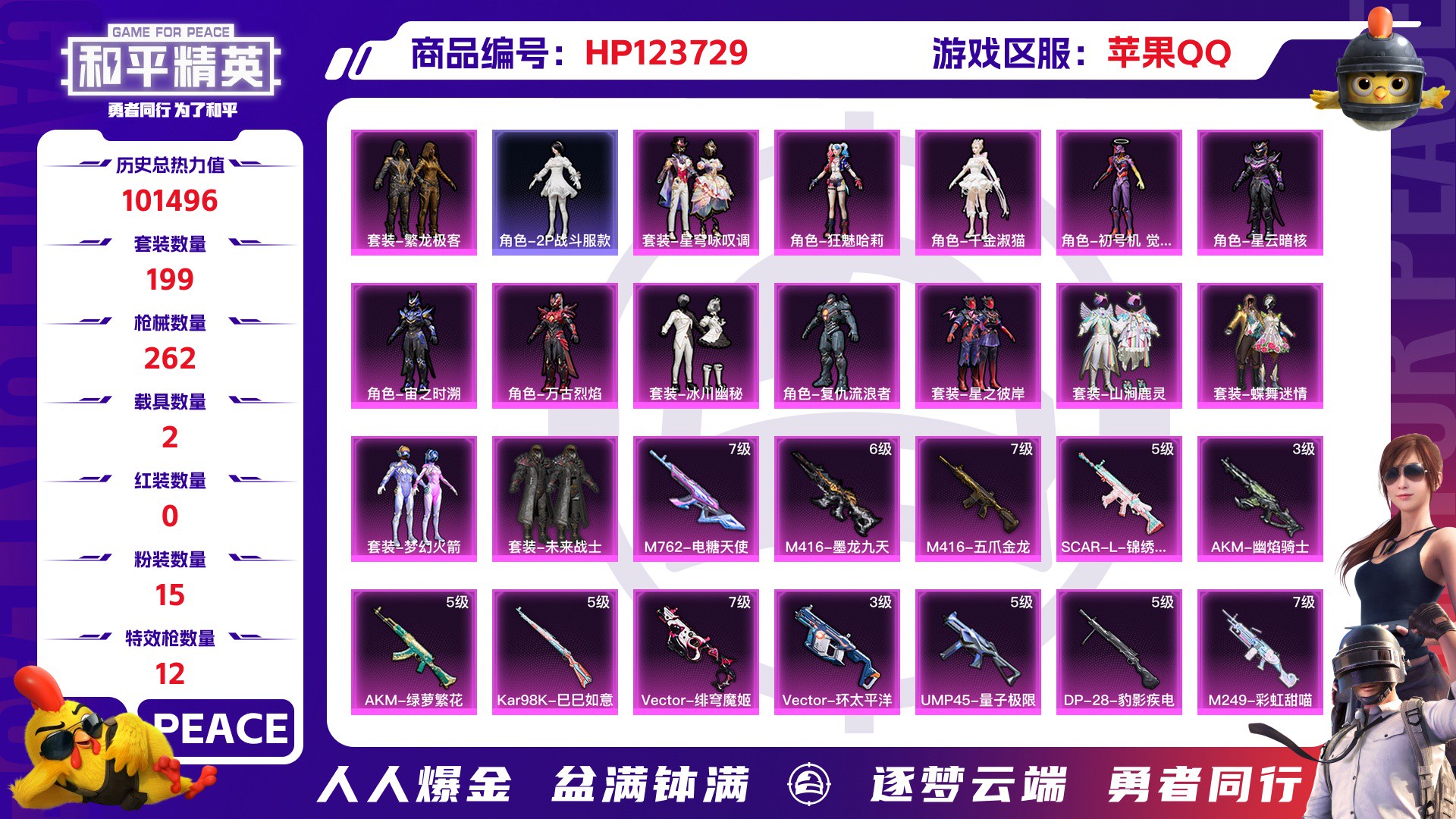 【云游堂】 【可二次实名】1520730-(可二次实名)苹果q-113360热力值13王牌印记历史无敌战神222套装251呛皮【4载具】玛莎拉蒂q幻星粉(2级)迈凯伦570s天际蓝合金龙骨绿色特斯拉3白色【3稀有】akm-缤纷海域都市猎人浪漫天命【41粉装】红螳螂紫螳螂梦幻火箭雪国幻梦猪猪侠水仙星宝贝奶油派天使彩虹糖甜心巧克力怪诞乔克呆萌星弥小可学妹孙悟空闲梦青缨金属狂野缤纷油彩放客神游粉色回忆第五大道新星烈龙甜蜜誓约极致幻想星空之魅花间之火冰川幽秘童趣迷兔冰霜白皇绒雪飘舞炙焰红王霁雪冰心傲雪凌霜馨动时刻彩虹甜喵冰川粉黛冰川红玫蜜桃特工暗夜玫瑰林间仙鹿彩虹鹿灵寒光使者复仇流浪者【14特效呛】scar-l-梦幻火箭(6级)m416-全功率超战(1级)scar-l-纯梦嫁纱(1级)m416-心之恋语(5级)akm-甜心宝贝(6级)akm-炫紫旋律(1级)aug-超新星(6级)mk14-闲梦青缨(5级)m416-至情至圣(9级)m417-第五大道(1级)mg3-梦幻舞会(5级)p90-甜蜜草莓(5级)vect-环太平洋(5级)ump45-恐龙拽拽(5级)【3飞行器】甜蜜誓约飞行器风花雪月飞行器纯梦嫁纱飞行翼【36热门】雪山精英呆萌铁蟹鹰眼刺客软萌银虎兔兔白日梦激萌罗小黑迅捷狂鲨深海小丑鱼大橘为重胖达圆圆胖达团团ag战队服神秘黑猫暗夜契约暗影哥特团圆交子瑞龙福将纯白誓言粉红小猪豚鼠丹丹水银刺客漫步者薄荷蓝莓海洋之心机械英豪破蛋小黄鸡风华少年志军刀雅典娜英勇保护者m416-仓鼠灰灰m762-潮萌小黄鸭m762-瑞龙福将kar98k-深海曼妙mk47-林间仙鹿mini14-林间仙鹿groza-林间仙鹿【6头盔】雪国精灵头盔甜心宝贝头盔金属狂野头盔甜蜜誓约头盔马卡龙头盔夏日绵绵冰头盔【8背包】精灵迷巫背包梦幻火箭背包雪国精灵背包甜心宝贝背包金属狂野背包萌熊伴侣背包神秘黑猫背包甜蜜誓约背包营地id:910261800