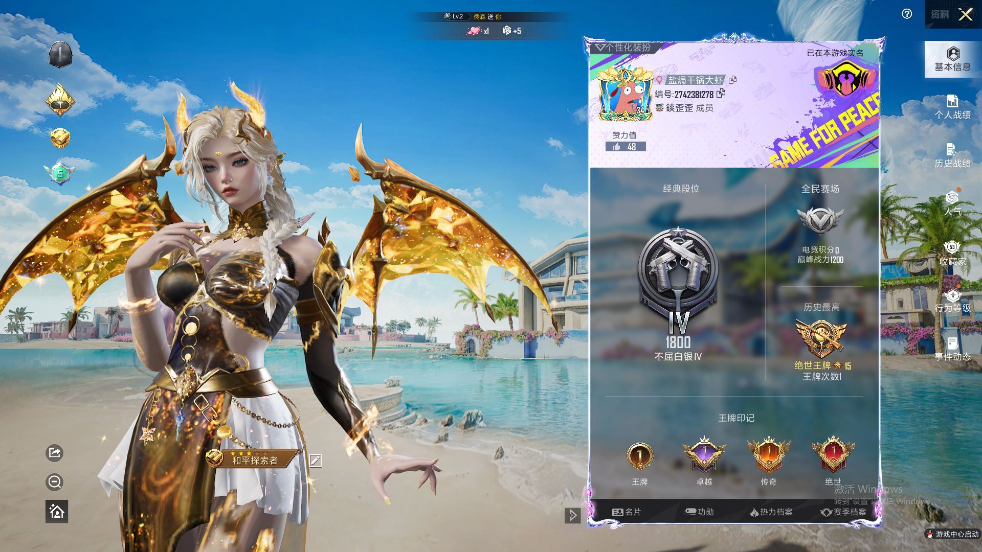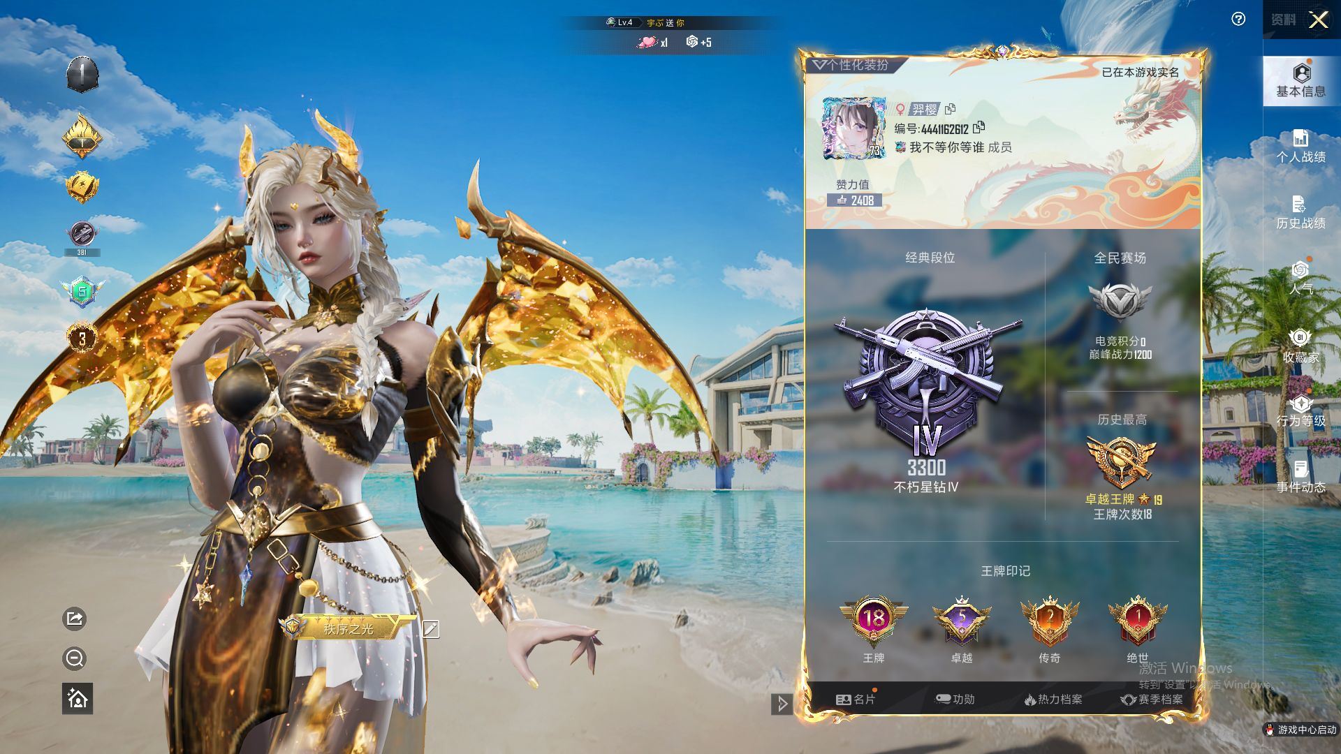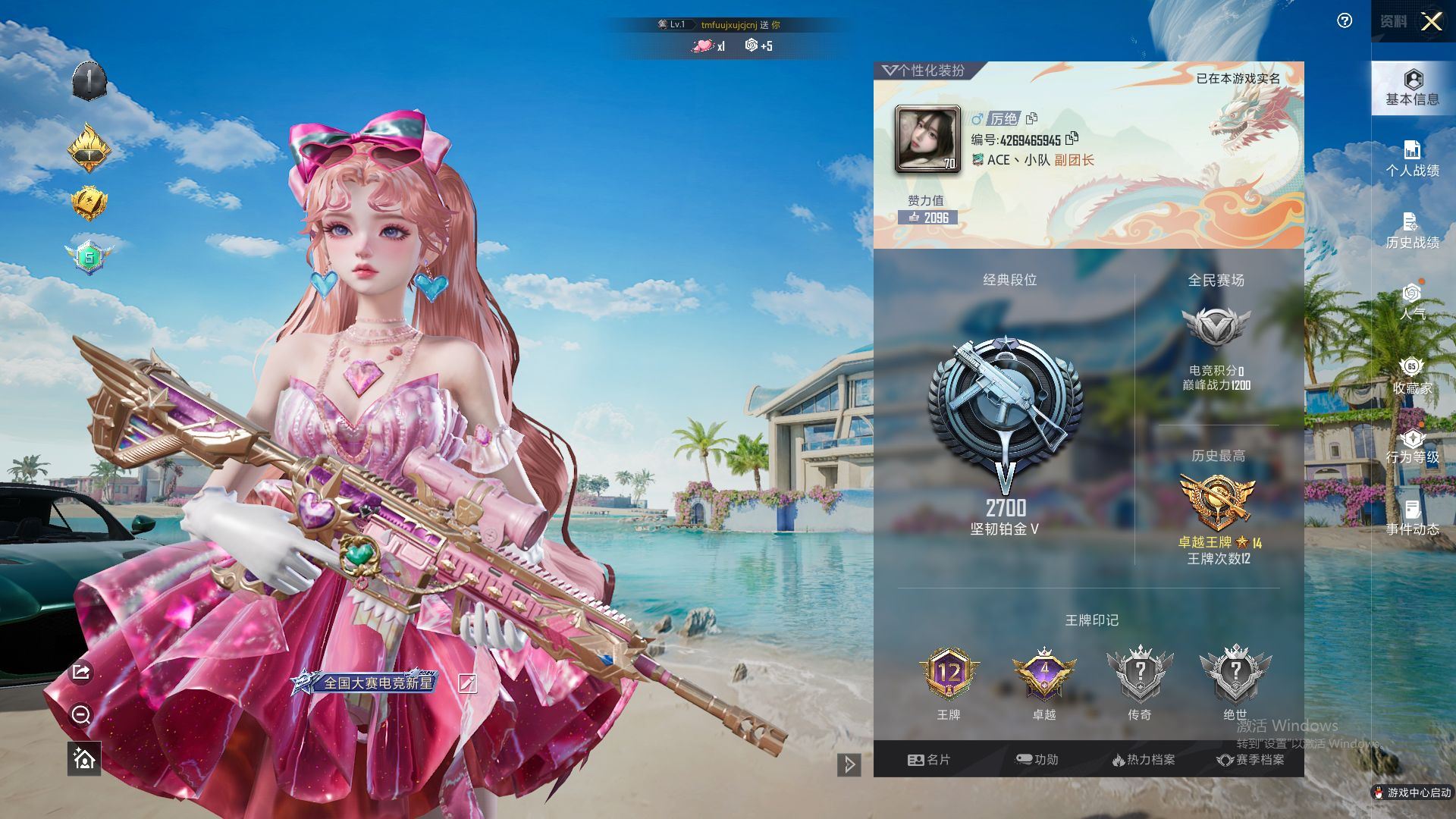 【云游堂】 【可二次实名】双红装!400红装碎片!稻草人!风花雪月!宝马M4黄!迈kai伦塞纳蓝!2.8w热力值!D10790.iOSQQ.2神装-6粉装-14粉枪-3载具-2珍稀飞行器-26套装-70枪皮 特权卡26年4月5号到期! 【稀有资产】辉羽雀灵-初翊[1级]/圣域龙灵-瑞拉[1级]/角色-六号稻草人/套装-虚空漩涡/角色-鲛海歌灵 【粉色套装】角色-歌者泠鸢/角色-绝色倾城/套装-御兔特攻/角色-绯穹魔姬/角色-幻海仙踪/套装-星穹咏叹调 【粉色枪皮】M762-激战未来[1级]/AKM-幻海仙踪[5级]/M416-风花雪月[5级]/GROZA-圣辉之星[5级]/AUG-圣斗士星矢[5级]/Kar98K-圣域龙灵[4级]/AWM-湮灭星辰[3级]/AMR-智耀战神[1级]/Mk14-甜梦熊击[4级]/UZI-圣斗士星矢[1级]/AKS-74U-星穹咏叹调[5级]/P90-冷漠罗丽[4级]/MG3-辉羽雀灵[1级]/破片手榴弹-瓶中星球[2级] 【载具】宝马M4(圣保罗黄)/迈kai伦塞纳(冷萃蓝)/辉羽雀灵自行车 【飞行器】雀灵庇佑飞行器/圣域金龙飞行器[1级]