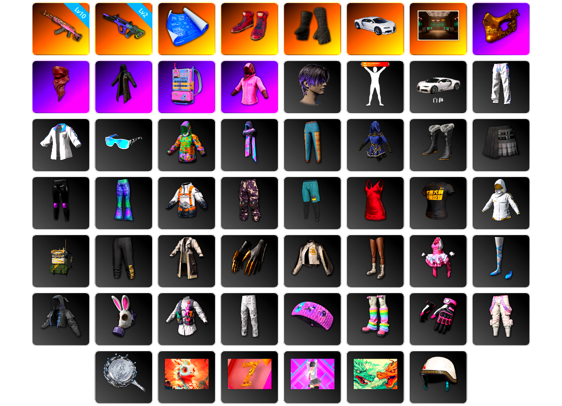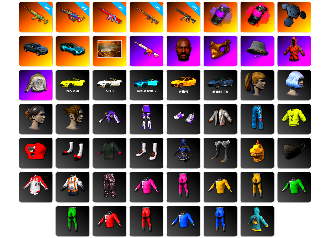 【云游堂】 [lwd674]10级火麒麟 2级霓虹aug 张图纸 柏林鞋 黑绷带 布加迪跑车 交易所接待室 金面 红面巾 黑大衣 电磁背包 粉战神 车漆 小兔学院 悲喜