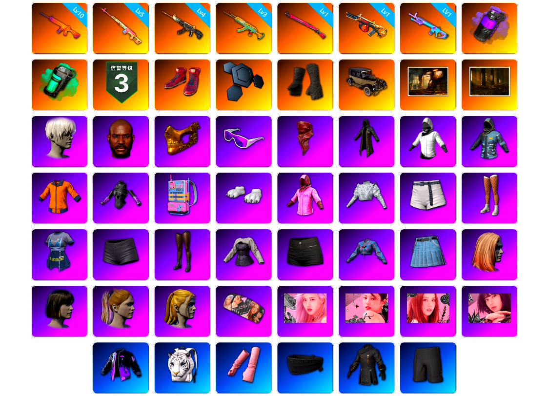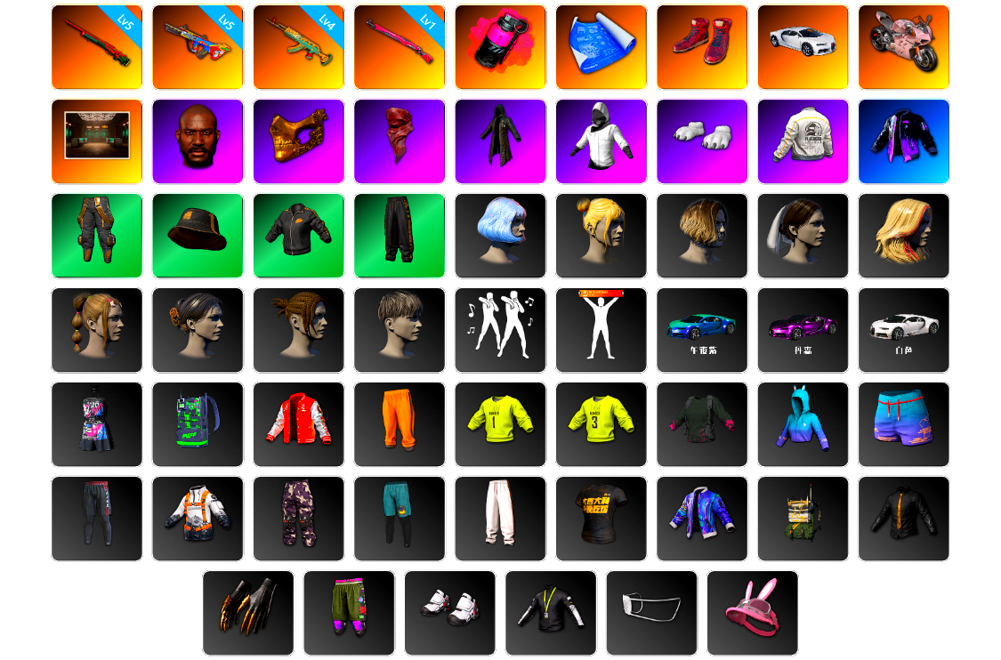 【云游堂】 [lwd659]5级爆裂aug 4级水麒麟 1级午夜惊魂98k 品红色盐雾蛋 张图纸 柏林鞋 布加迪跑车 杜卡迪叛逆玫瑰 交易所接待室 黑鬼 金面 红面巾 黑大衣 白战神 白熊鞋 拉风龙 丸子头 脏辫 青海摇 车漆 小兔学院 西游记