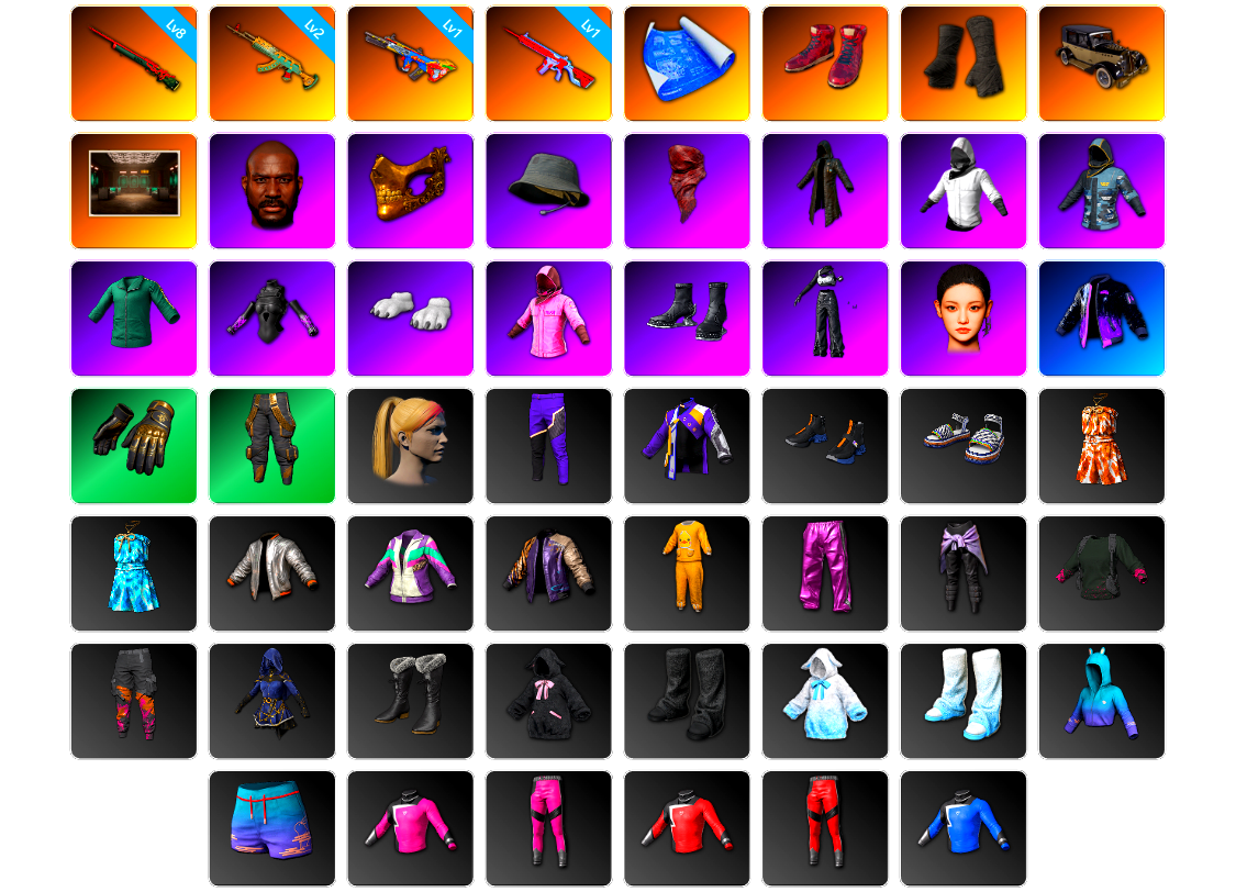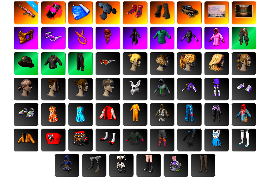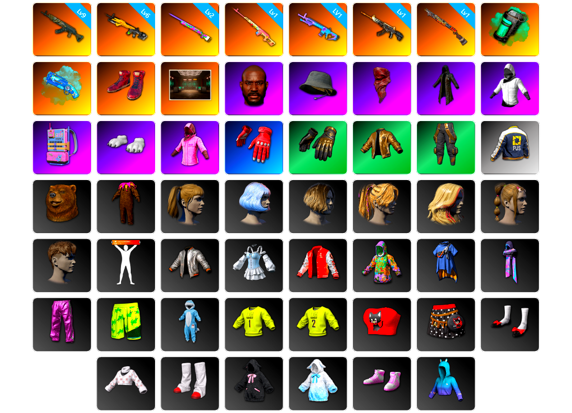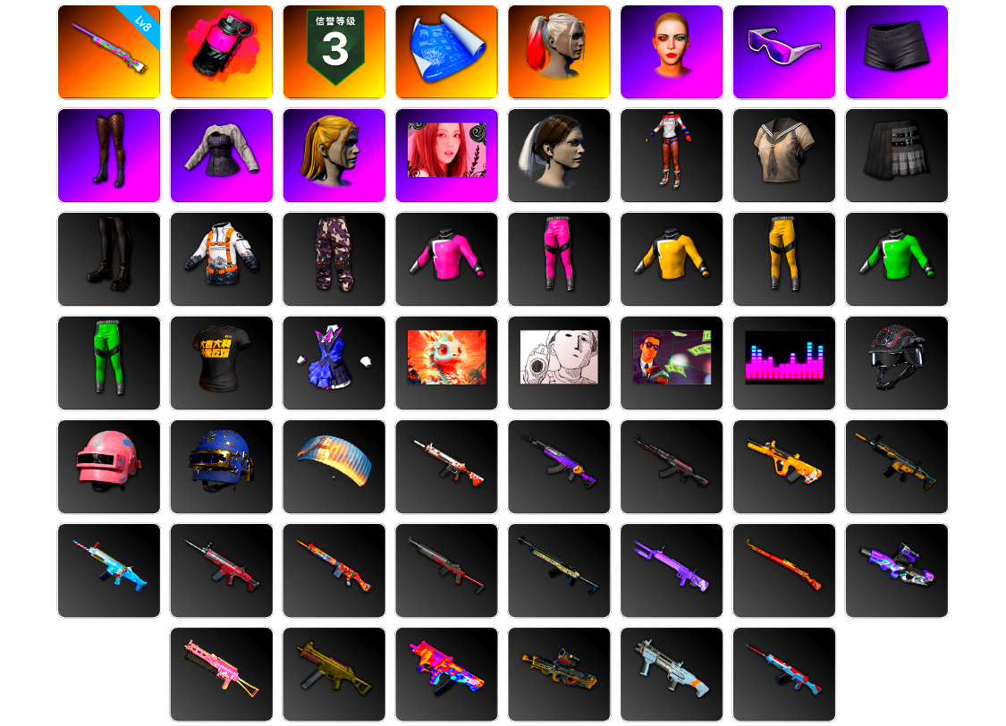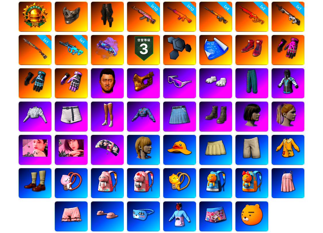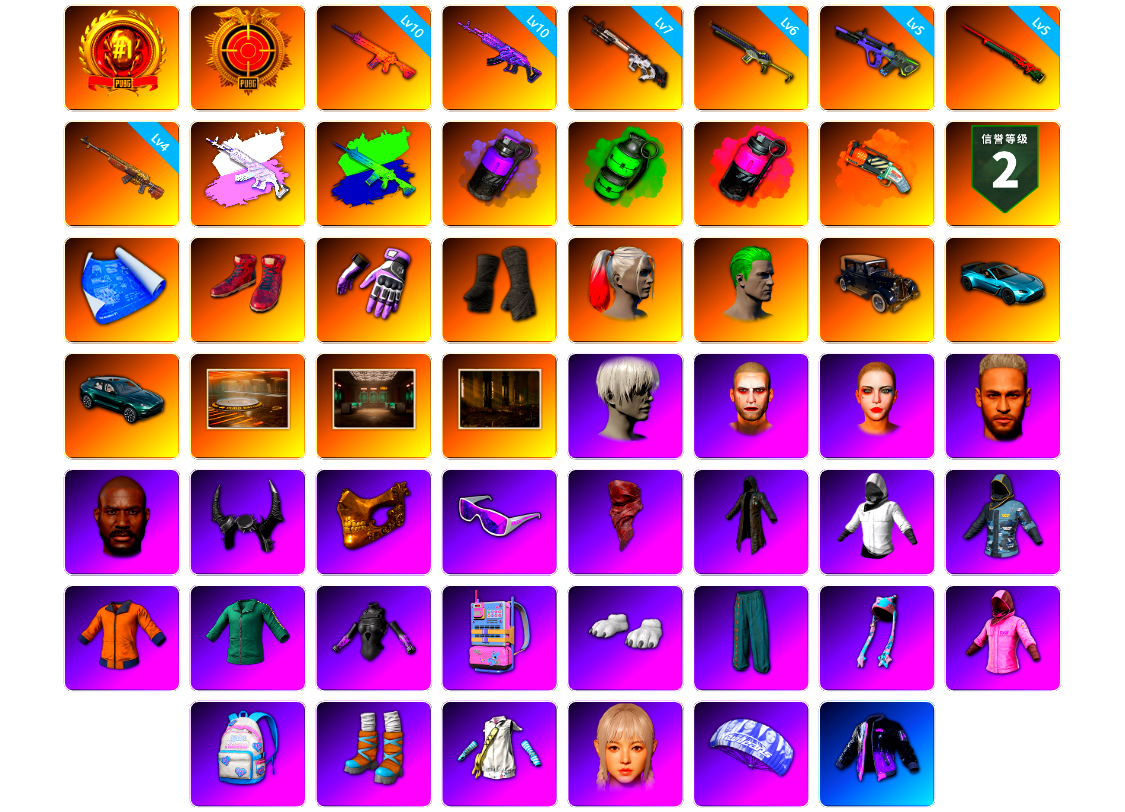 【云游堂】 [pz1358]10级霓虹aug 2级小兔mk12 2级圣诞ak 2级唐三藏平底锅 唐三藏(异色) 蓝色盐雾蛋 黑绷带 小丑女 小丑男 马丁跑车 马丁suv 丑男妆容 黑鬼 金面 发光手臂 电磁背包 白熊鞋 小马尾 丸子头 西游记 脏辫 小兔学院 悲喜 绷带ak pgc 2021套装 胜利之舞39