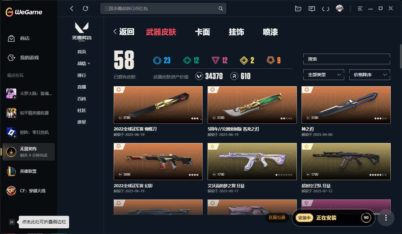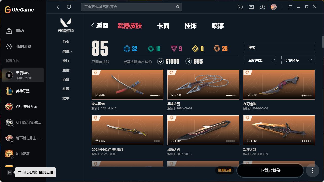【云游堂】 zy库存8340-西部正义,奇点幻影,离子武器狂徒,侦查幻影,威龙狂徒,紫金狂徒,神圣领域战刀qq区