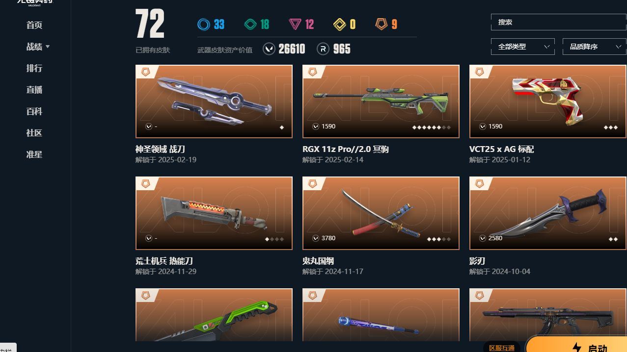 【云游堂】 【可二次实名】R43895 可二次QQ【段位:未定级】【神圣领域战刀+荒土机兵热能刀+鬼丸国纲+影刃+超限闪存匕首+超能偶像应援棒】【混沌序曲狂徒+盖亚的复仇狂徒+耀鳞威龙狂徒+般若假面狂徒+掠影狂徒】【侦察力量幻影】【RGX2.0冥驹+掠影冥驹】【vct25 x ag标配】【天界神兵戍卫+掠影戍卫】【般若假面獠犬】【般若假面战神】【般若假面狂怒】【掠影正义】【总资产26610】详情请看图片【卖号买号首选亿梦】