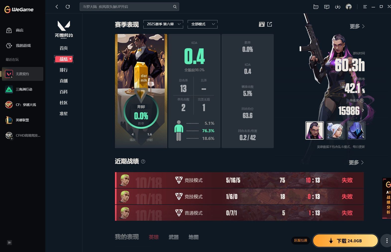 【云游堂】 【可包人脸】ljh【找回包赔】ak018224 二次 等级97 英雄27 仓库价值41740 【套装 2024冠军 虚空遗器 奇点//2.0】 【近战 vct 2025 爪刀 威龙之刃】 【狂徒 混沌序曲 狂徒 归零者 狂徒 紫阙金琅 狂徒 盖亚的复仇 狂徒】 【幻影 千灵华绽 幻影】 【奥丁 紫阙金琅//2.0 奥丁】 【冥驹 起源 冥驹】 【正义 塑水宗 正义】 【标配 vct25 x100t 标配】 -----更多炫彩背包/光效/名片/武器具体看图!截图展示段位不代实际段位,赛季更新等不可抗拒因素发生变化、时限道具不保证所剩时间、标题未写送点卷默认不送】【主播担保+安全至上+性价比 买号卖号只选金牌商家一左友】
