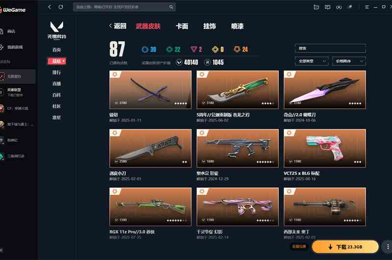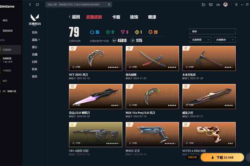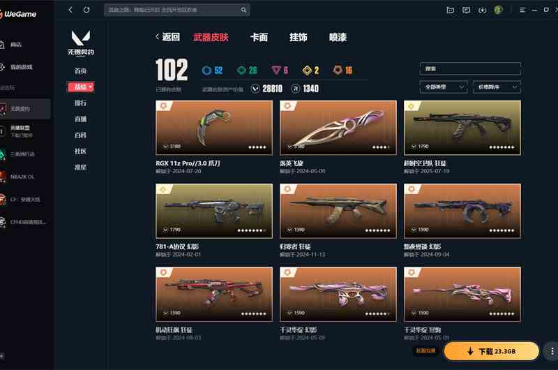 【云游堂】 xl实名情况 可二次实名 掌瓦号002562680 段位 黄金 等级区间 164 皮肤资产价值 60410 刀皮数量 12 呛皮数量 108 套装 2024全球冠军赛套装、掠影套装、噬影者套装 绝版皮肤 近战武器-2024全球冠军赛战刀、近战武器-vct2025爪刀、幻影-2024全球冠军赛 近战武器 近战武器-黑波之刃、近战武器-珍珠棘贝短剑、近战武器-闪耀之星荧光棒、近战武器-2024全球冠军赛战刀、近战武器-超限闪存匕首、近战武器-影刃、近战武器-神圣领域战刀、近战武器-vct2025爪刀、近战武器-噬影者簇刃、近战武器-诡秘蛇影军刀、近战武器-阿特拉斯指挥部甩棍、近战武器-影钩 鬼魅 鬼魅-奇幻朋克、鬼魅-噬影者 正义 正义-奇点、正义-复古浪潮、正义-掠影、正义-太空穿梭 标配 标配-紫阙金琅 短炮 短炮-深海水族、短炮-悠闲猫生 狂怒 狂怒-珍珠棘贝、狂怒-天界神兵2.0 狂徒 狂徒-盖亚的复仇、狂徒-堕天遗武、狂徒-艾沃莉的梦之翼、狂徒-全息波普2.0、狂徒-混沌序曲、狂徒-掠影、狂徒-噬影者、狂徒-阿特拉斯指挥部 幻影 幻影-紫阙金琅2.0、幻影-洪荒怒焰、幻影-珍珠棘贝、幻影-2024全球冠军赛、幻影-悠闲猫生 戍卫 戍卫-天界神兵、戍卫-珍珠棘贝、戍卫-掠影、戍卫-噬影者、戍卫-太空穿梭 獠犬 獠犬-复古浪潮、獠犬-日冕雄师、獠犬-悠闲猫生 蜂刺 蜂刺-深海水族、蜂刺-噬影者 骇灵 骇灵-塑水宗、骇灵-珍珠棘贝 判官 判官-太空穿梭 雄鹿 雄鹿-复古浪潮 莽侠 莽侠-深海水族、莽侠-超时空卫队、莽侠-阿特拉斯指挥部 飞将 飞将-天界神兵、飞将-悠闲猫生 冥驹 冥驹-堕天遗武、冥驹-复古浪潮、冥驹-掠影 奥丁 奥丁-光明哨兵2.0 战神 战神-深海水族、战神-太空穿梭 热门卡面 情人节猎枭卡面、2024全球冠军赛卡面、vct2025美洲联赛卡面、vct2025太平洋联赛卡面、vct2025cn联赛卡面、vct2025emea联赛卡面、噬影者卡面、双城之战金克丝卡面、双城之战拥抱卡面、势不可挡星礈卡面、捣蛋鬼出没卡面、虹吸式咖啡壶卡面、超能偶像卡面 热门挂饰 第九季超凡挂饰、2024全球冠军赛挂饰、vct2025cn联赛挂饰、vct2025emea联赛挂饰、vct2025美洲联赛挂饰、vct2025太平洋联赛挂饰、袖珍捷风挂饰、超能偶像挂饰、传世莲华挂饰、神中神挂饰、双城之战小蛋糕挂饰、双面黑猫挂饰、云开见日挂饰、糖葫芦挂饰、迷你机甲挂饰、终章ko小金人挂饰 热门喷漆 真烦人喷漆、小丑猫喷漆、情绪控制喷漆、想都别想喷漆、超能偶像喷漆、双击点赞喷漆、这招不行了喷漆、掠影喷漆、双人比心喷漆、2024全球冠军赛喷漆、别挡我的路喷漆、买装还是存钱喷漆、皮蛋呼呼喷漆、喵呜喷漆 英雄 捷风、炼狱、不死鸟、贤者、猎枭、钢锁、暮蝶、幻棱、铁臂、雷兹、幽影、蝰蛇、零、芮娜、斯凯、夜露、ko、尚勃勒、霓虹、黑梦、盖可、壹决、维斯、钛狐、奇乐、星礈、海神无畏