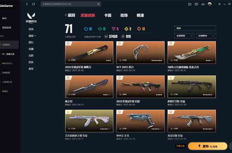 【云游堂】 xl 【实名情况】可二次实名 【排位情况】可排位 【账号状态】无封号 【区服】qq 【游戏等级】lv105 【游戏段位】超凡i 【剩余v点】7 【剩余r点】0 【皮肤资产价值】37460 【使用r点】810 【英雄数量】27 【皮肤数量】71 【卡面数量】85 【喷漆数量】85 【挂件数量】67 【拥有套装】2022全球冠军赛套装(2022全球冠军赛-幻影,2022全球冠军赛-蝴蝶刀)神中神罚套装(神中神罚-幻影,神中神罚-莽侠,神中神罚-骇灵,神中神罚-狂怒,神之刃) 【拥有近战武器】阿特拉斯指挥部-甩棍,5周年//公测重制版-苍龙之刃,日耀风暴-遗器,诡秘蛇影-军刀,神圣领域-战刀,vct-2025-爪刀, 【拥有步呛】光荣异象-狂徒,超时空卫队-狂徒,艾沃莉的梦之翼-狂徒,离子武器//2.0-狂徒,紫阙金琅-戍卫,掠影-狂徒,阿特拉斯指挥部-狂徒,日耀风暴-幻影,诡秘蛇影-狂徒,神圣领域-獠犬,神圣领域-幻影,悠闲猫生-幻影,太空穿梭-戍卫,悠闲猫生-獠犬,幻语魔咒-獠犬,甜蜜战术-戍卫,末日之翼-幻影,折光棱晶-戍卫,月球哨兵-戍卫, 【拥有狙击呛】堕天遗武-冥驹,阿特拉斯指挥部-莽侠,诡秘蛇影-莽侠,悠闲猫生-飞将,甜蜜战术-冥驹,幻语魔咒-飞将,末日之翼-飞将,星云暗涌-冥驹,月球哨兵-莽侠, 【拥有机呛】日耀风暴-奥丁,神圣领域-战神,太空穿梭-战神,末日之翼-奥丁, 【拥有冲锋呛】阿特拉斯指挥部-骇灵,日耀风暴-骇灵,折光棱晶-蜂刺,星云暗涌-蜂刺,星云暗涌-骇灵, 【拥有霰弹呛】诡秘蛇影-判官,太空穿梭-判官,甜蜜战术-判官,幻语魔咒-雄鹿,月球哨兵-雄鹿, 【拥有手呛】vct25-x-edg-标配,西部未来-正义,塑水宗-正义,耀鳞威龙-鬼魅,阿特拉斯指挥部-标配,日耀风暴-正义,诡秘蛇影-鬼魅,神圣领域-狂怒,太空穿梭-正义,悠闲猫生-短炮,甜蜜战术-鬼魅,幻语魔咒-狂怒,折光棱晶-标配,末日之翼-短炮,星云暗涌-鬼魅,月球哨兵-正义, 【稀有挂件】无畏契约go第一卷捷风挂饰,薰衣草之心挂饰,v25第三幕钻石挂饰, 【卡面信息】我见识过的恐惧卡面,我眼中的世界卡面,vct2025cn联赛卡面,无畏