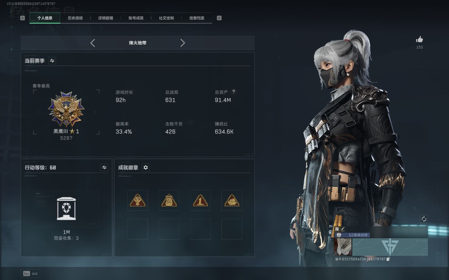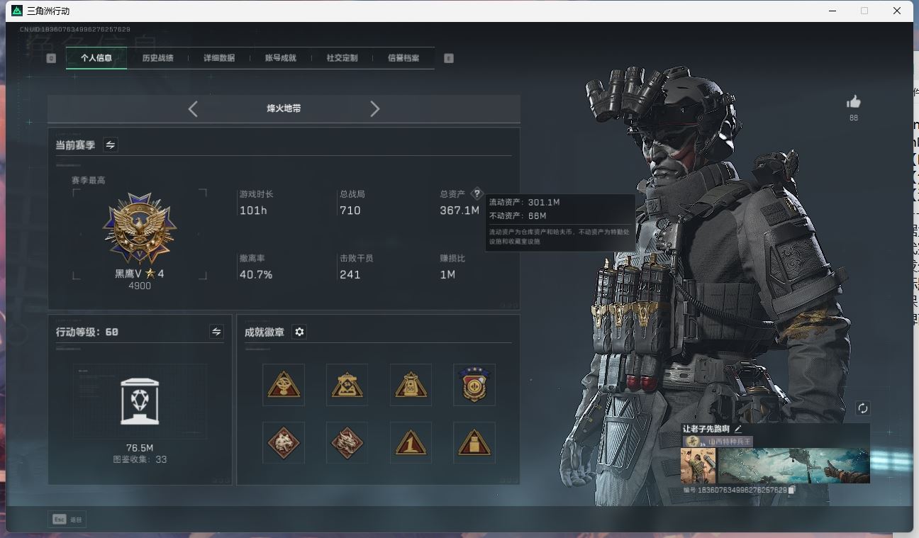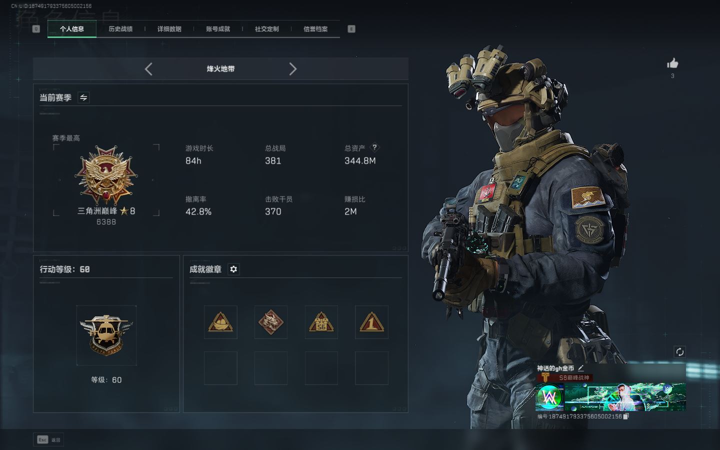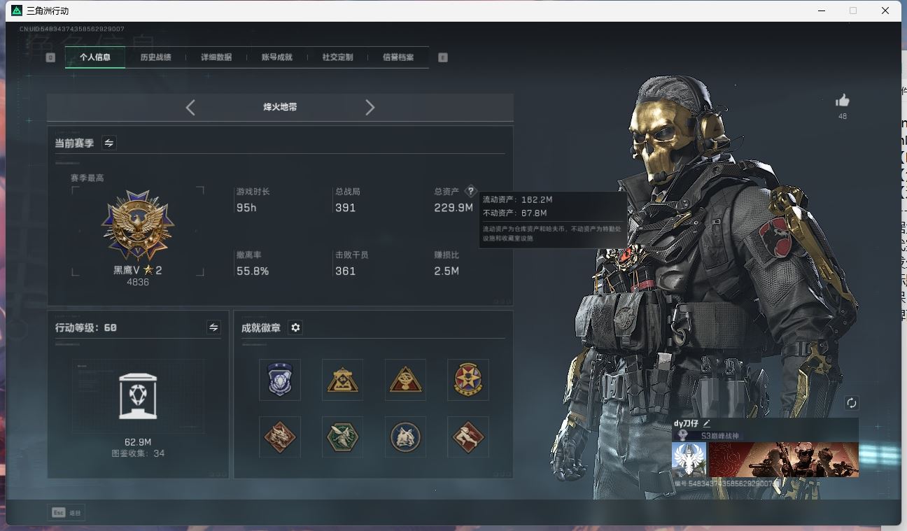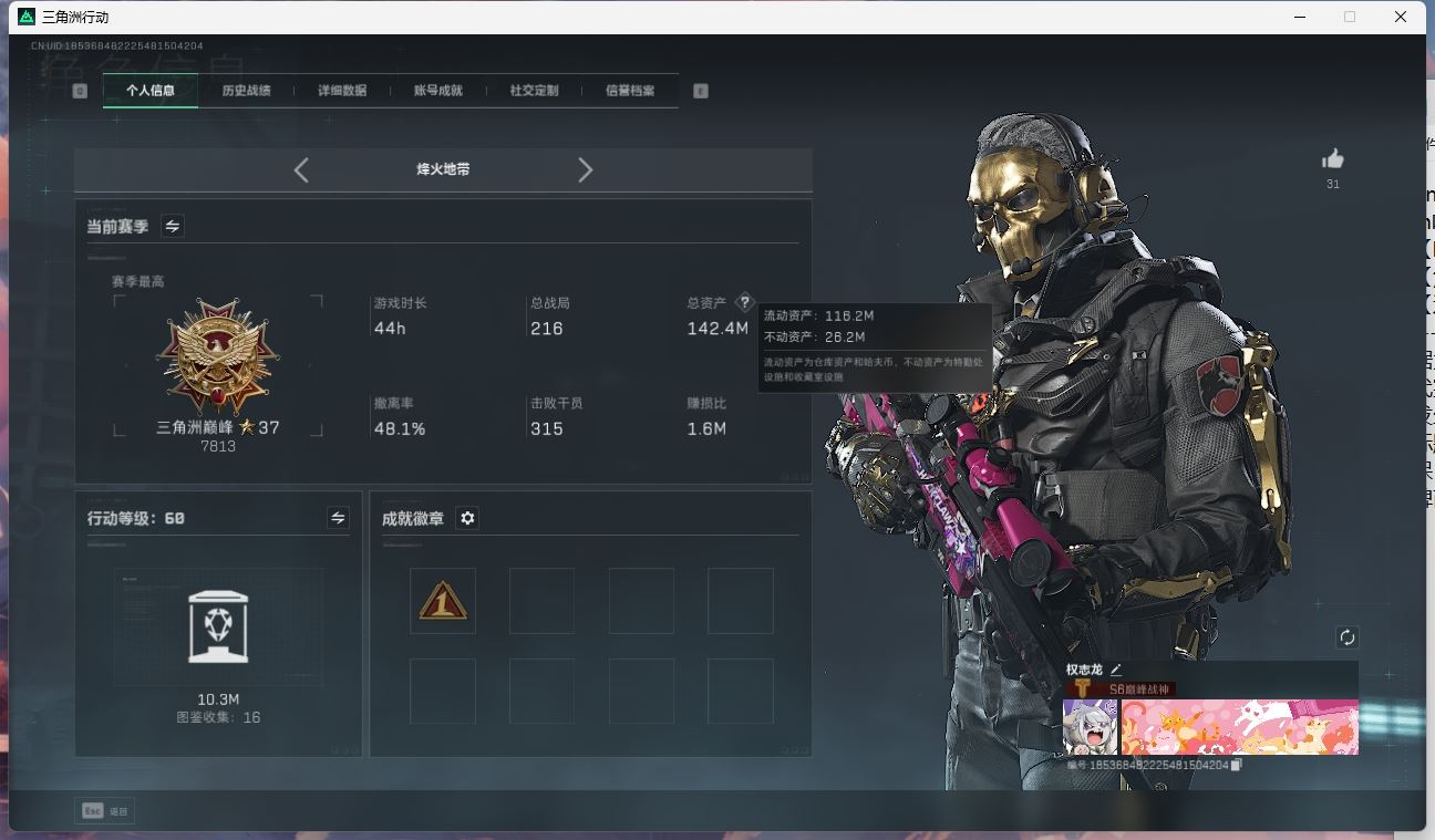 【云游堂】 ljh AK025678 包人脸 行动等级60青铜 总资产749.1m【3*3保险】【M4A1突击步枪-蚀金玫瑰ASh-12战斗步枪-鹅鸭杀0CQ171冲锋枪-鹅鸭杀0J日201轻机枪-鹅鸭杀SCAR-H战斗步枪-启航M250通用机枪-骑士之心腾龙突击步枪-捞点薯条AWM狙击步枪-捞点薯条 AWM狙击步枪-捞点薯条93R-捞点薯条联动 勇士冲锋枪-能天使-午夜邮差联动 M4A1突击步枪-阿米娅联动 725双管疲弹枪-送葬人-无题密令M16A4突击步枪-狩猎时刻G3战斗步枪-狩猎时刻 】【近战 电锯 黑鹰】【角色皮肤 蜂医-无题密令 深蓝-不破誓约 】-----安全箱等时效性道具请以游戏内数据为准:详情请看图----截图展示段位不代实际段位,赛季更新等不可抗拒因素发生变化、时限道具不保证所剩时间、标题未写送三角券默认不送】【主播担保+安全至上+性价比 买号卖号只选金牌商家一左友】