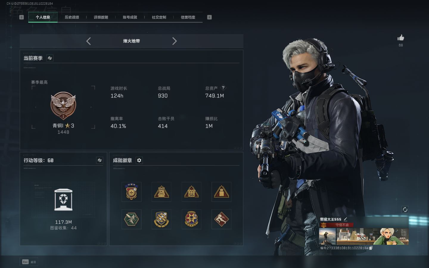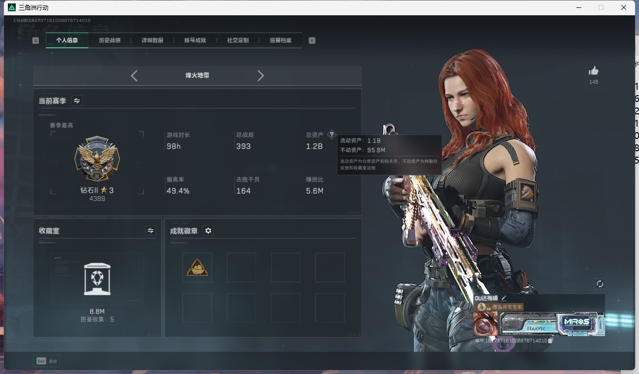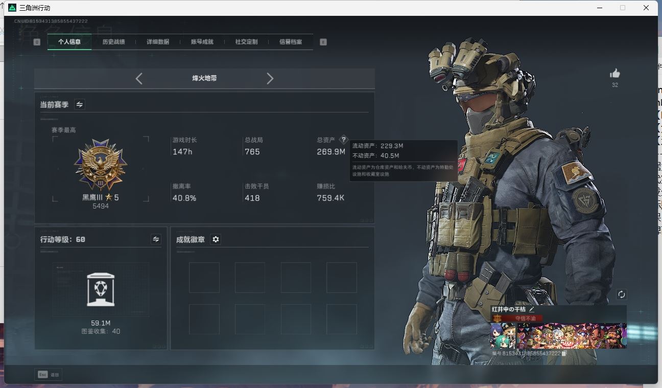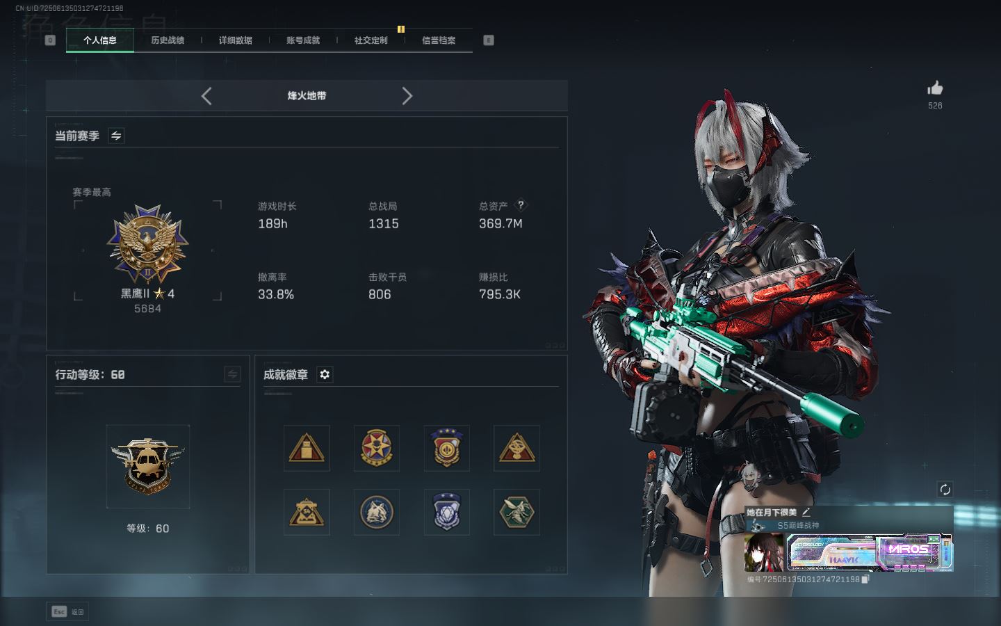 【云游堂】 ljh AK025678 包人脸 行动等级60青铜 总资产749.1m【3*3保险】【M4A1突击步枪-蚀金玫瑰ASh-12战斗步枪-鹅鸭杀0CQ171冲锋枪-鹅鸭杀0J日201轻机枪-鹅鸭杀SCAR-H战斗步枪-启航M250通用机枪-骑士之心腾龙突击步枪-捞点薯条AWM狙击步枪-捞点薯条 AWM狙击步枪-捞点薯条93R-捞点薯条联动 勇士冲锋枪-能天使-午夜邮差联动 M4A1突击步枪-阿米娅联动 725双管疲弹枪-送葬人-无题密令M16A4突击步枪-狩猎时刻G3战斗步枪-狩猎时刻 】【近战 电锯 黑鹰】【角色皮肤 蜂医-无题密令 深蓝-不破誓约 】-----安全箱等时效性道具请以游戏内数据为准:详情请看图----截图展示段位不代实际段位,赛季更新等不可抗拒因素发生变化、时限道具不保证所剩时间、标题未写送三角券默认不送】【主播担保+安全至上+性价比 买号卖号只选金牌商家一左友】