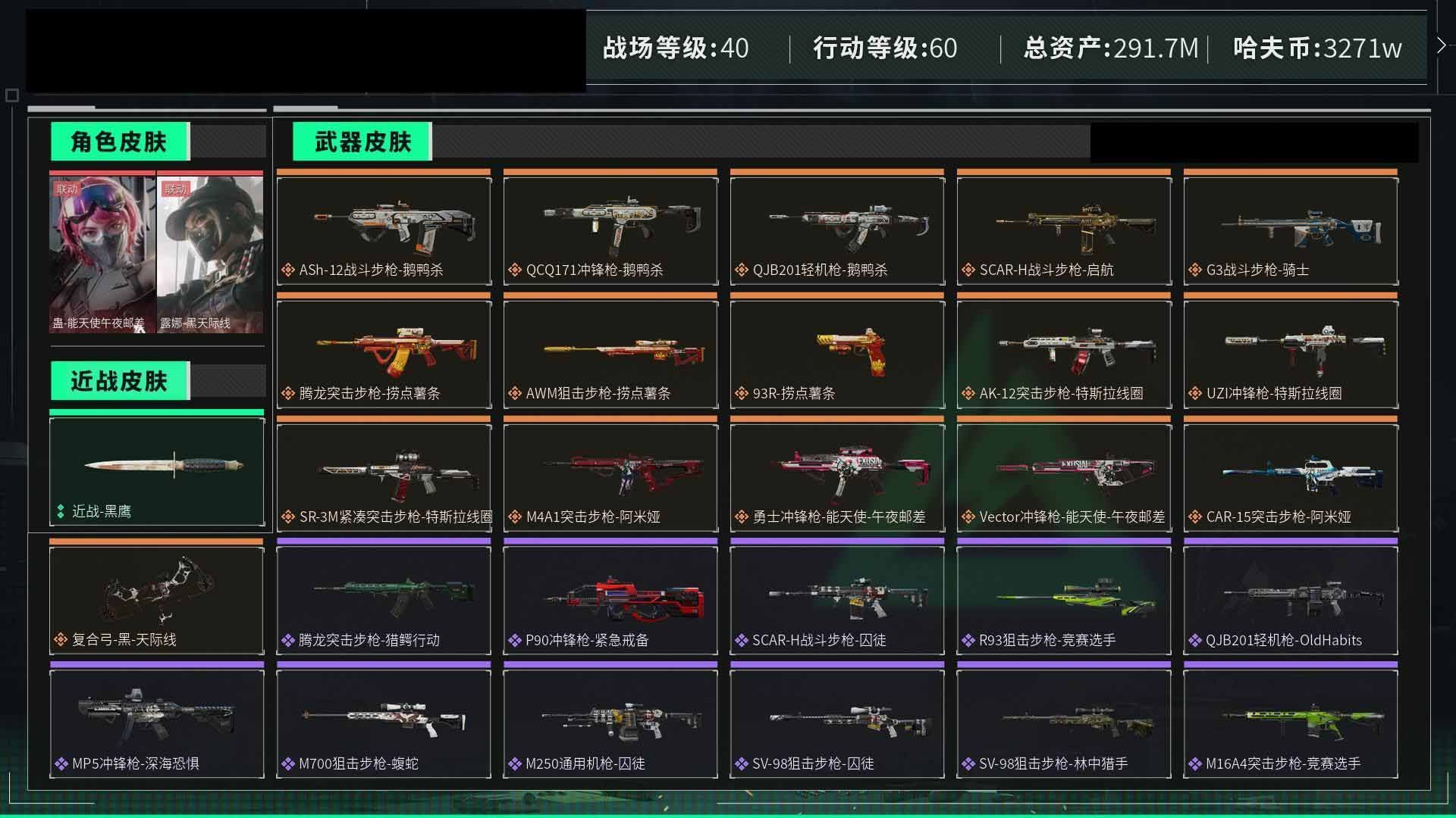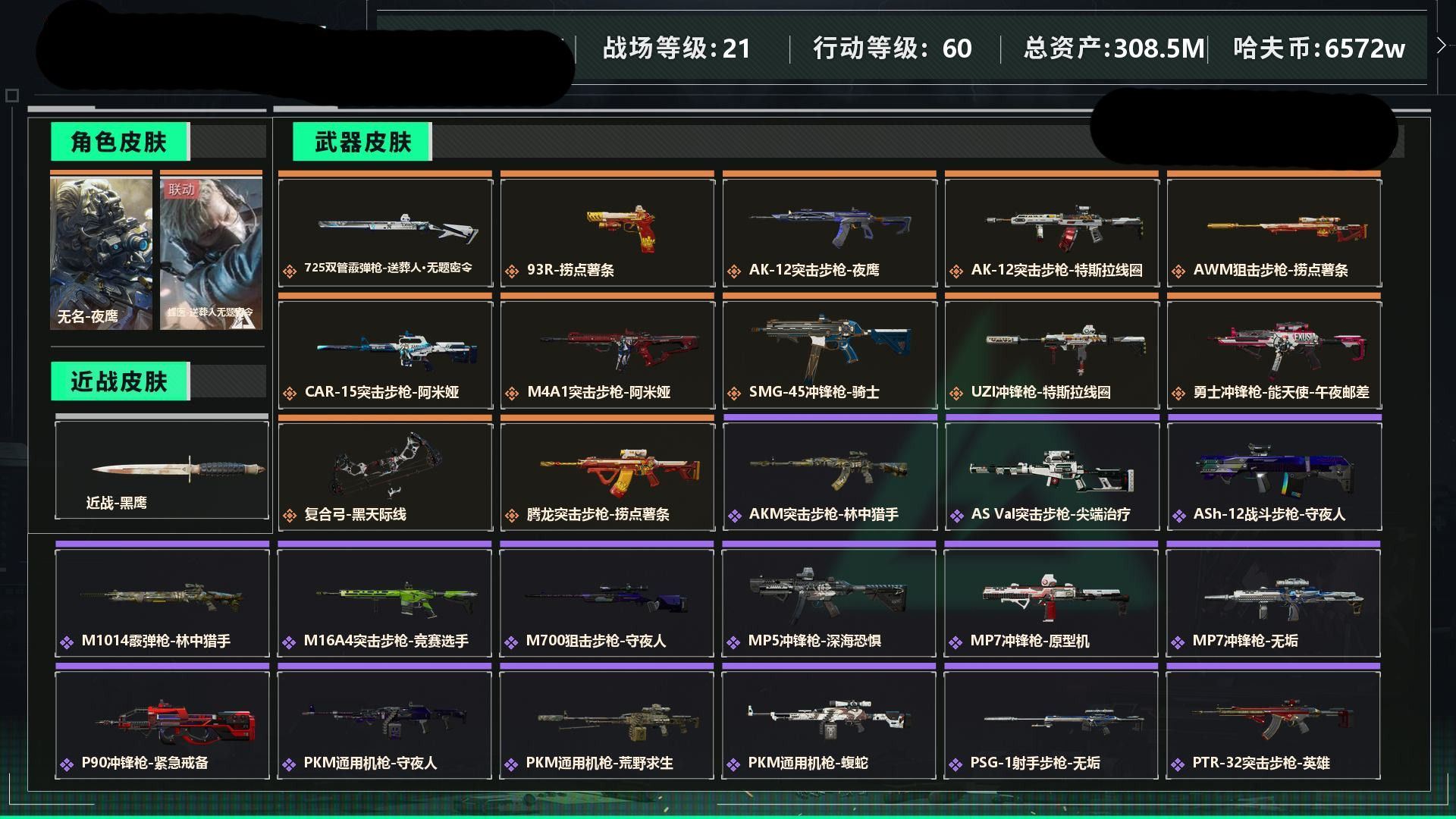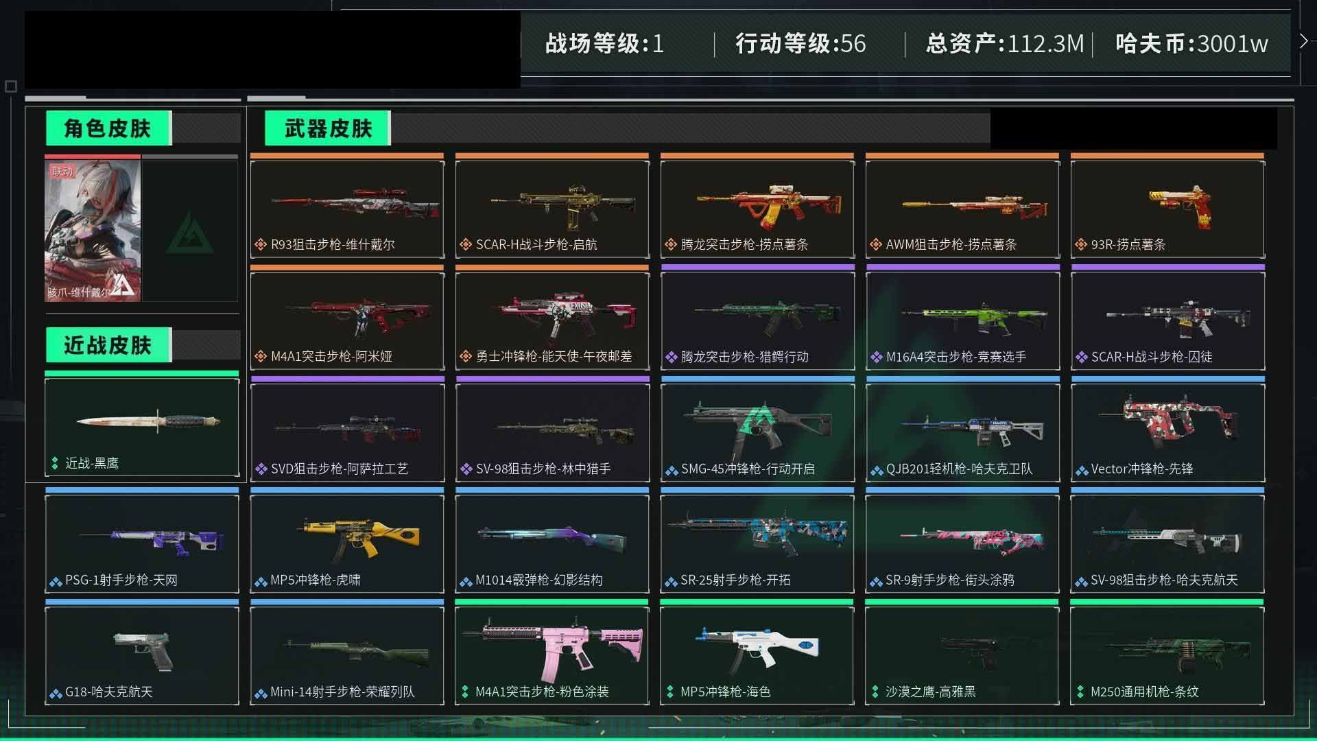 【云游堂】 R43914 可二次QQ【行动等级42】【总资产59.8m】【战场等级19】【刀:黑鹰】【蛊能天使午夜邮差】【m4突击步枪阿米娅+scar战斗步枪启航+g3战斗步枪骑士+腾龙突击步枪捞点薯条+vector冲锋枪能天使+勇士冲锋枪能天使午夜邮差+R93狙击步枪维什戴尔+awm狙击步枪捞点薯条+93R捞点薯条】详情请看图片【卖号买号首选亿梦】