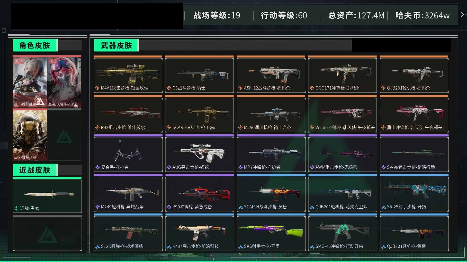 【云游堂】 惠3517765总资产127M,哈夫币3264w,枪皮数量71,战场等级:19 上等兵,行动等级:60 无段位,角色皮肤数量3,骇爪-维什戴尔/蛊-能天使午夜邮差/红狼【个人信息】战场等级:19 上等兵,行动等级:60 无段位【哈夫币】3264w【总资产】127M【货币】20三角币/0曼德尔币/0三角券【安全箱】基础安全箱2(1x2)/S6高级安全箱6(2x3)【通行证】烽火地带限定版【特勤处】制药台Lv.3/工作台Lv.3/仓库Lv.6/防具台Lv.3/训练中心Lv.7/靶场Lv.5/技术中心Lv.3/指挥中心Lv.4/潜水中心Lv.0/收藏室Lv.0【角色皮肤】骇爪-维什戴尔/蛊-能天使午夜邮差/红狼-蚀金玫瑰/【近战皮肤】近战-黑鹰/【步枪皮肤】M4A1突击步枪-蚀金玫瑰/AUG突击步枪-蝮蛇/G3战斗步枪-骑士/ASh-12战斗步枪-鹅鸭杀/SCAR-H战斗步枪-启航/SR-3M紧凑突击步枪-战术竞备/【冲锋枪皮肤】勇士冲锋枪-能天使-午夜邮差/Vector冲锋枪-能天使-午夜邮差/P90冲锋枪-紧急戒备/MP7冲锋枪-守护者/QCQ171冲锋枪-鹅鸭杀/MP5冲锋枪-战术竞备/【轻机枪皮肤】M249轻机枪-异域战争/M250通用机枪-骑士之心/QJB201轻机枪-鹅鸭杀/【狙击步枪皮肤】R93狙击步枪-维什戴尔/SV-98狙击步枪-猎鳄行动/【特殊武器】复合弓-守护者/【挂饰】诡影狙击兵/挂饰-骑士之心/挂饰-维什戴尔/挂饰-大白鹅/挂饰-启程/挂饰-蚀金玫瑰/挂饰-能天使/紧急会议/(典藏皮肤颜色请以典藏展示为准,安全箱等时效性道具请以游戏内数据为准)