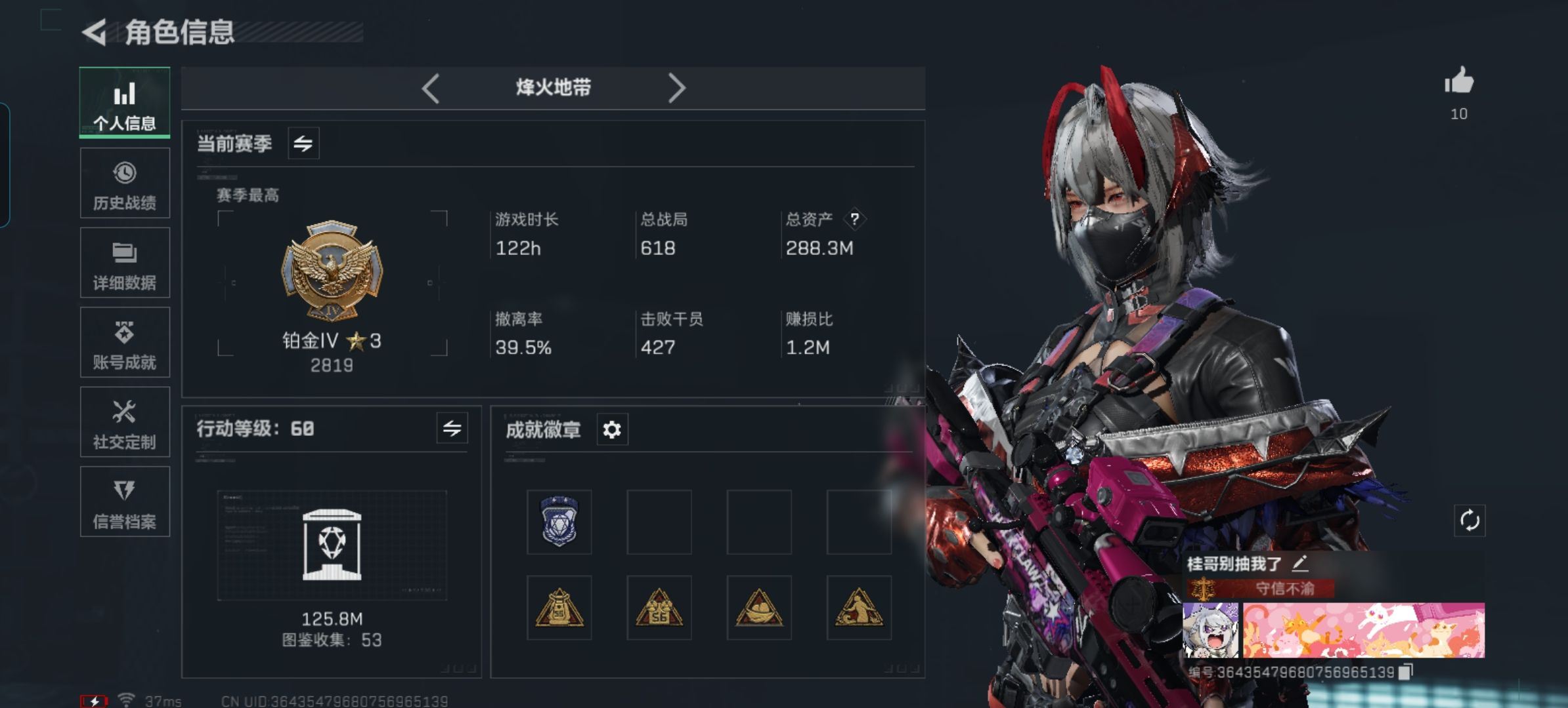 【云游堂】 金品专营【总资产104m】干员皮肤【红狼蚀金玫瑰,蜂医 送葬人 不破契约】行动等级50级!仓库9指挥中心5 训练7 靶场6 有一些枪皮肤 美杜莎啥的自己看一下,天际线 和维什戴尔都差4发就能开,纯白可科技跑刀