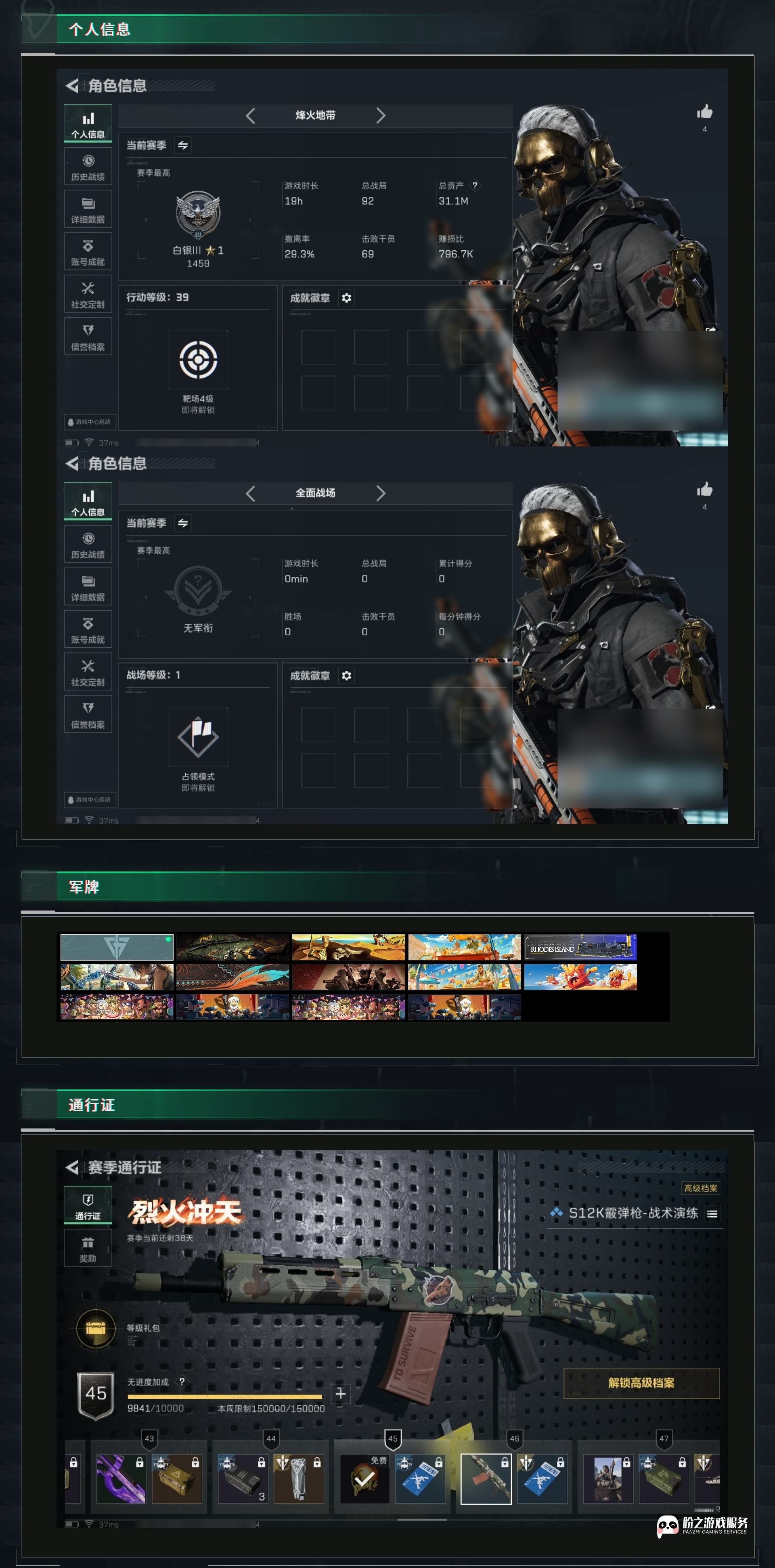 【云游堂】 v27337【个人信息】战场等级:30 军士长,行动等级:60 黄金 【哈夫币】251w 【总资产】95M 【烽火地带专区】总资产60M-100M 【货币】120三角币/0曼德尔币/520三角券 【安全箱】基础安全箱2(1x2)/S6高级安全箱6(2x3) 【通行证】烽火地带限定版 【特勤处】制药台Lv.3/工作台Lv.3/仓库Lv.8/防具台Lv.3/训练中心Lv.6/靶场Lv.5/技术中心Lv.3/指挥中心Lv.5/潜水中心Lv.1/收藏室Lv.1 【角色皮肤】红狼-蚀金玫瑰/蜂医-送葬人无题密令/ 【已拥有捆绑包】捞点薯条捆绑包/特斯拉线圈捆绑包/ 【近战皮肤】近战-黑鹰/ 【步枪皮肤】M4A1突击步枪-蚀金玫瑰/AUG突击步枪-蝮蛇/AKM突击步枪-林中猎手/PTR-32突击步枪-英雄/AS Val突击步枪-典狱官/腾龙突击步枪-无垢/SCAR-H战斗步枪-囚徒/M16A4突击步枪-竞赛选手/SR-3M紧凑突击步枪-荒野求生/CAR-15突击步枪-阿米娅/M4A1突击步枪-阿米娅/腾龙突击步枪-捞点薯条/AK-12突击步枪-特斯拉线圈/SR-3M紧凑突击步枪-特斯拉线圈/G3战斗步枪-骑士/SCAR-H战斗步枪-启航/ 【冲锋枪皮肤】UZI冲锋枪-特斯拉线圈/MP5冲锋枪-深海恐惧/勇士冲锋枪-深海恐惧/MP7冲锋枪-无垢/勇士冲锋枪-能天使-午夜邮差/P90冲锋枪-紧急戒备/MP7冲锋枪-守护者/ 【霰弹枪皮肤】M1014霰弹枪-林中猎手/725双管霰弹枪-送葬人-无题密令/ 【轻机枪皮肤】PKM通用机枪-荒野求生/M250通用机枪-囚徒/QJB201轻机枪-OldHabits/M249轻机枪-异域战争/M250通用机枪-骑士之心/ 【精准射手步枪皮肤】PSG-1射手步枪-无垢/ 【狙击步枪皮肤】M700狙击步枪-竞技风/SV-98狙击步枪-囚徒/SV-98狙击步枪-林中猎手/SVD狙击步枪-荒野求生/AWM狙击步枪-捞点薯条/SV-98狙击步枪-猎鳄行动/ 【手枪皮肤】93R-捞点薯条/ 【特殊武器】复合弓-黑-天际线/ 【挂饰】挂饰-枪匠/诡影狙击兵/诡影喷火兵/挂饰-维什戴尔/挂饰-启程/挂饰-蚀金玫瑰/挂饰-彩蛋/阿萨拉盾兵/阿萨拉霰弹兵/阿萨拉狙击兵/挂饰-晶石幻想/挂饰-阿米娅/挂饰-来点薯条/挂饰-特斯拉线圈/阿萨拉徽章/紧急会议/ 【载具】M1A4坦克-烈焰/ (典藏皮肤颜色请以典藏展示为准,安全箱等时效性道具请以游戏内数据为准)