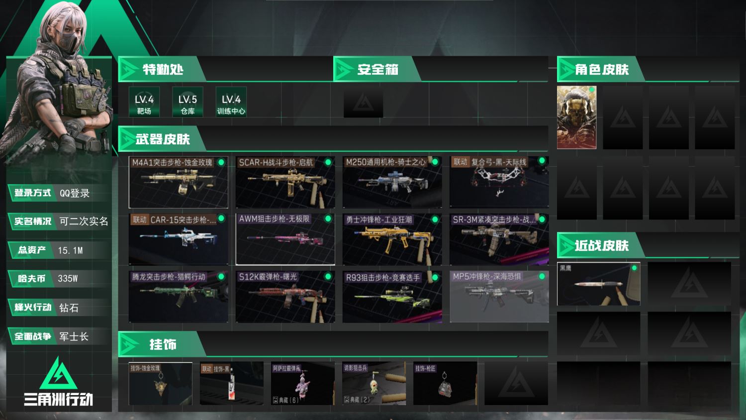【云游堂】 惠3984202总资产185M,哈夫币1485w,枪皮数量147,战场等级:44 军士长,行动等级:60 黑鹰,角色皮肤数量3,骇爪-维什戴尔/蛊-能天使午夜邮差/蜂医-送葬人【个人信息】战场等级:44 军士长,行动等级:60 _黑鹰【哈夫币】1485w【总资产】185M【货币】28三角币/17曼德尔币/245三角券【安全箱】基础安全箱2(1x2)/S6高级安全箱6(2x3)【通行证】三角洲全模式版【特勤处】制药台Lv.3/工作台Lv.3/仓库Lv.9/防具台Lv.3/训练中心Lv.4/靶场Lv.4/技术中心Lv.3/指挥中心Lv.5/潜水中心Lv.1/收藏室Lv.1【角色皮肤】骇爪-维什戴尔/蛊-能天使午夜邮差/蜂医-送葬人无题密令/【已拥有捆绑包】狩猎时刻捆绑包/特斯拉线圈捆绑包/【近战皮肤】近战-黑鹰/【步枪皮肤】AUG突击步枪-蝮蛇/SG552突击步枪-深海恐惧/AS Val突击步枪-典狱官/腾龙突击步枪-无垢/SCAR-H战斗步枪-囚徒/M16A4突击步枪-竞赛选手/SR-3M紧凑突击步枪-荒野求生/CAR-15突击步枪-阿米娅/M4A1突击步枪-阿米娅/G3战斗步枪-狩猎时刻/M16A4突击步枪-狩猎时刻/AK-12突击步枪-特斯拉线圈/SR-3M紧凑突击步枪-特斯拉线圈/PTR-32突击步枪-OldHabits/G3战斗步枪-骑士/ASh-12战斗步枪-鹅鸭杀/SCAR-H战斗步枪-启航/SR-3M紧凑突击步枪-战术竞备/【冲锋枪皮肤】Vector冲锋枪-狩猎时刻/UZI冲锋枪-特斯拉线圈/Vector冲锋枪-阿萨拉文明/MP5冲锋枪-深海恐惧/勇士冲锋枪-深海恐惧/MP7冲锋枪-无垢/勇士冲锋枪-能天使-午夜邮差/Vector冲锋枪-能天使-午夜邮差/P90冲锋枪-紧急戒备/MP7冲锋枪-守护者/勇士冲锋枪-工业狂潮/QCQ171冲锋枪-鹅鸭杀/MP5冲锋枪-战术竞备/【霰弹枪皮肤】725双管霰弹枪-送葬人-无题密令/【轻机枪皮肤】PKM通用机枪-荒野求生/M250通用机枪-囚徒/QJB201轻机枪-OldHabits/M250通用机枪-骑士之心/QJB201轻机枪-鹅鸭杀/【精准射手步枪皮肤】PSG-1射手步枪-无垢/【狙击步枪皮肤】SVD狙击步枪-阿萨拉工艺/SV-98狙击步枪-囚徒/R93狙击步枪-维什戴尔/M700狙击步枪-蝮蛇/SV-98狙击步枪-林中猎手/SVD狙击步枪-荒野求生/【特殊武器】复合弓-守护者/【挂饰】统统拿走(A)/肘击王(A)/挂饰-信号破译器/挂饰-枪匠/麦小鼠/火箭玫瑰/牛角威龙/挂饰-骑士之心/挂饰-维什戴尔/挂饰-大白鹅/挂饰-启程/挂饰-水墨云图/挂饰-晶石幻想/挂饰-阿米娅/挂饰-能天使/挂饰-特斯拉线圈/挂饰-狩猎时刻/紧急会议/【载具】M1A4坦克-丛林猎手/轮式突击炮-移动堡垒/M1A4坦克-移动堡垒/步战车-移动堡垒/防空车-移动堡垒/M1A4坦克-烈焰/M1A4坦克-紫电/防空车-凝视/防空车-警戒线/突击直升机-紫电/侦察直升机-烈焰/侦察直升机-紫电/全地形车-警戒线/GTQ35坦克-紫电/(典藏皮肤颜色请以典藏展示为准,安全箱等时效性道具请以游戏内数据为准)