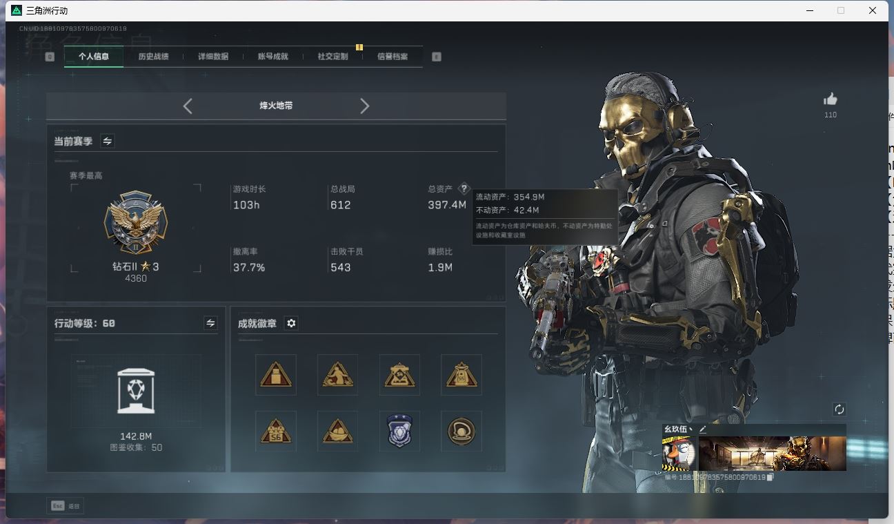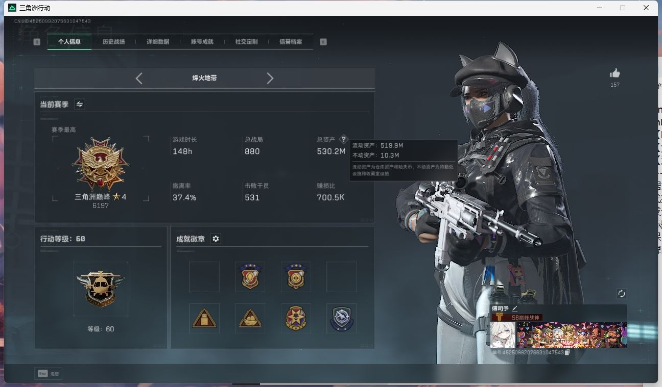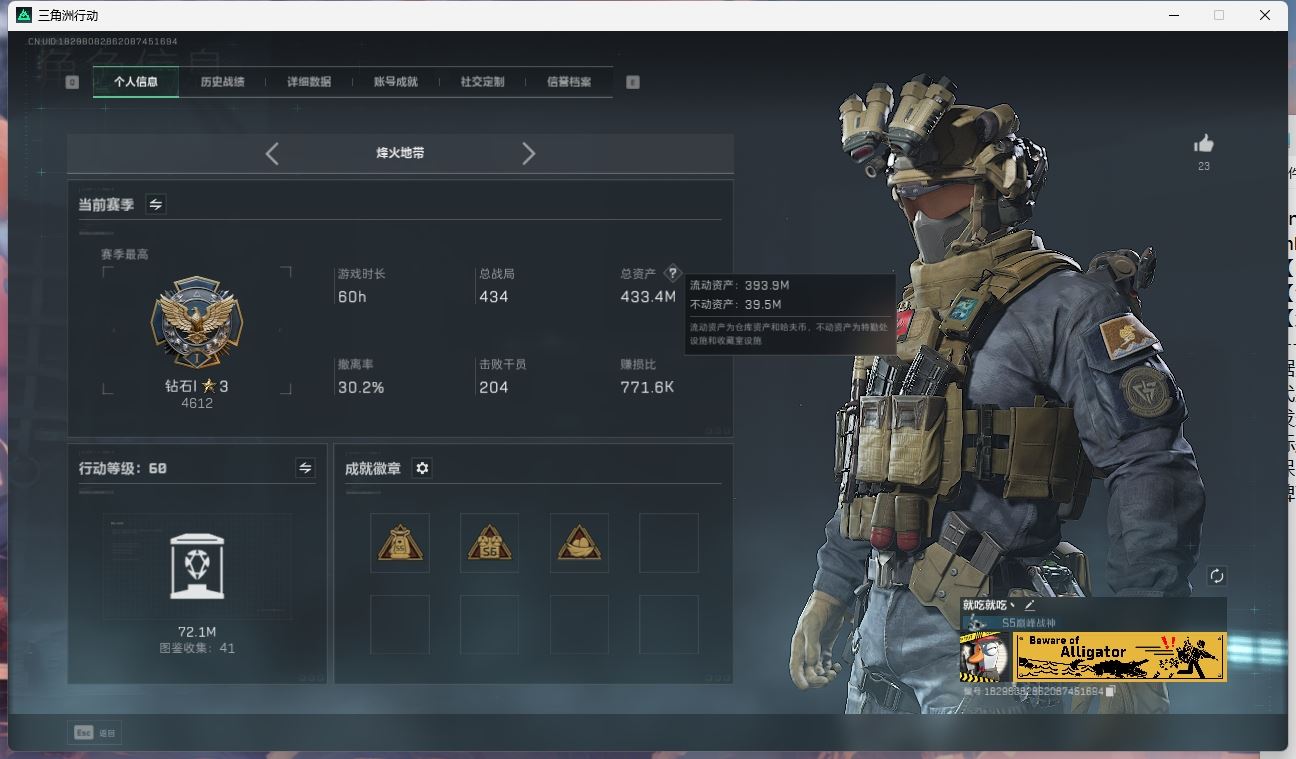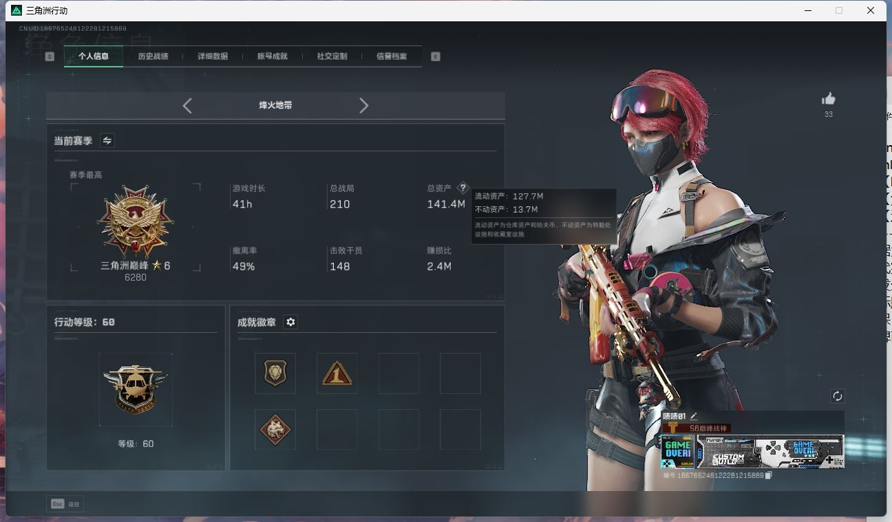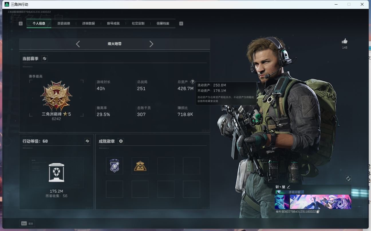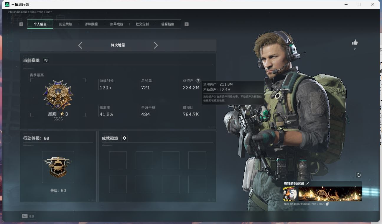 【云游堂】 hmc AK025305 【亮点解析 s6赛季3*3 十级仓库 满级潜水】行动等级:60钻石,总资产878.5m哈夫币 【呛皮:联动 M4A1突击步枪-阿米娅 ASh-12战斗步枪-鹅鸭杀 AK-12突击步枪-特斯拉线国 SCAR-H战斗步枪-启航 腾龙突击步枪-捞点警条 SR-3M紧凑突击步枪-特斯拉线围 联动 勇士冲锋枪-能天使-午夜邮差 725双管霞弹枪-送葬人-无题密令 AWM狙击步枪-捞点薯条 联动 复合弓-黑-天际线】【角色皮肤:蜂医-送葬人无题密令 露娜-黑天际线 】【近战:黑鹰】----安全箱等时效性道具请以游戏内数据为准:详情请看图----截图展示段位不代实际段位,赛季更新等不可抗拒因素发生变化、时限道具不保证所剩时间、标题未写送三角币默认不送】【主播担保+安全至上+性价比 买号卖号只选金牌商家一左友】