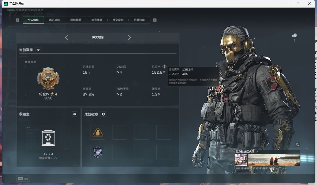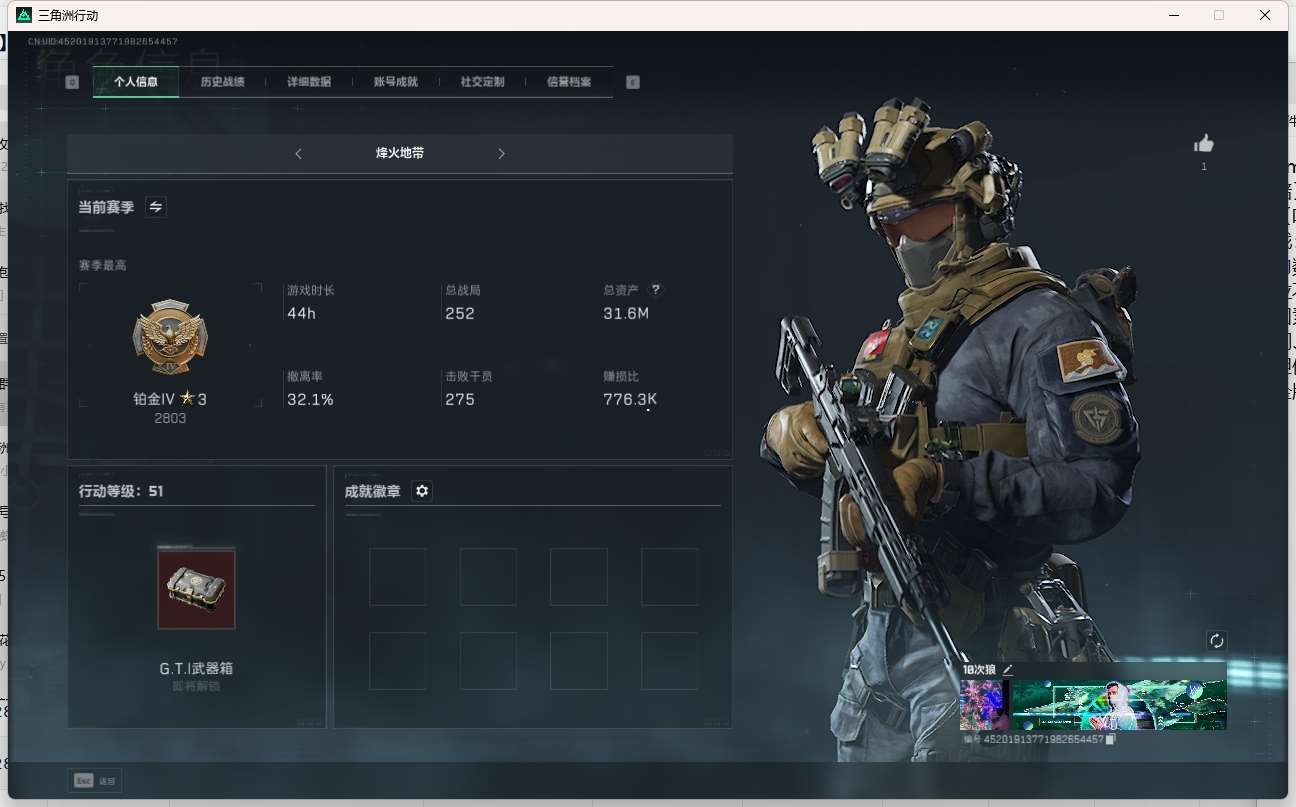 【云游堂】 hmcak022848【包人脸】【找回包赔】行动等级:51铂金,总资产31.6m哈夫币 【呛皮:m16a4突击步呛-狩猎时 scar-h战斗步呛-水墨云图 g3战斗步呛-狩猎时刻 勇士冲锋呛-能天德-午夜邮差】 【角色皮肤:骇爪-水墨云图】【近战:黑鹰】,安全箱等时效性道具请以游戏内数据为准:详情请看图----截图展示段位不代实际段位,赛季更新等不可抗拒因素发生变化、时限道具不保证所剩时间、标题未写送点卷默认不送】【主播担保+安全至上+性价比 买号卖号只选金牌商家一左友】