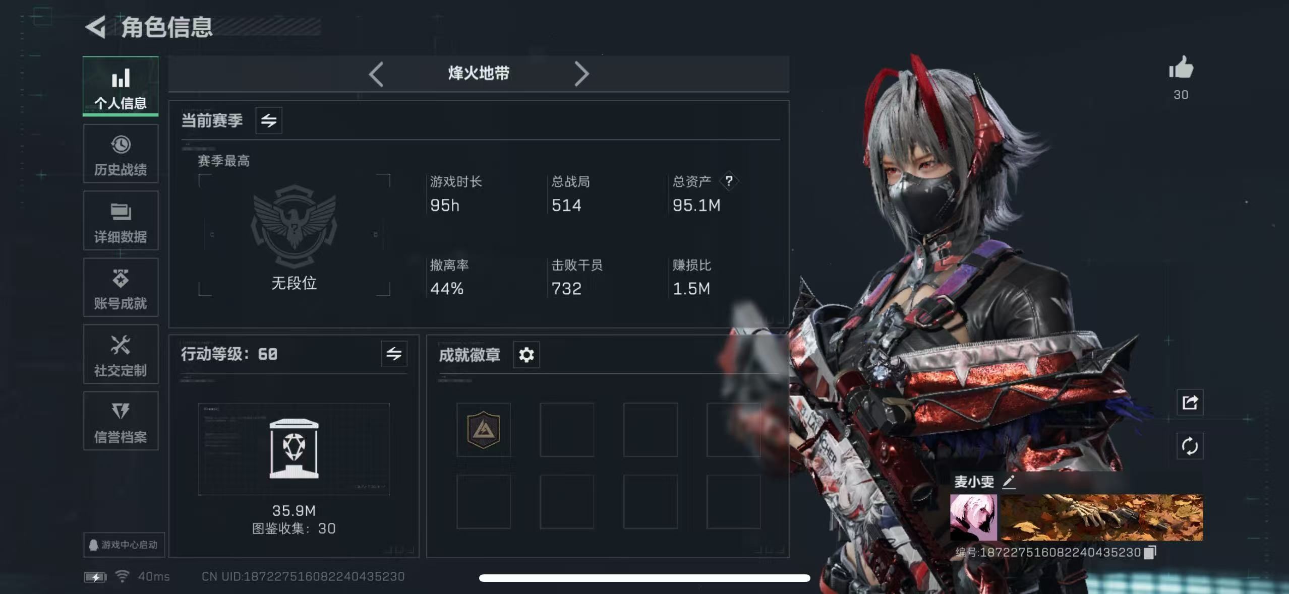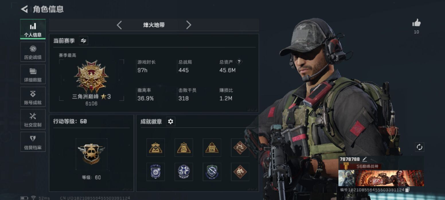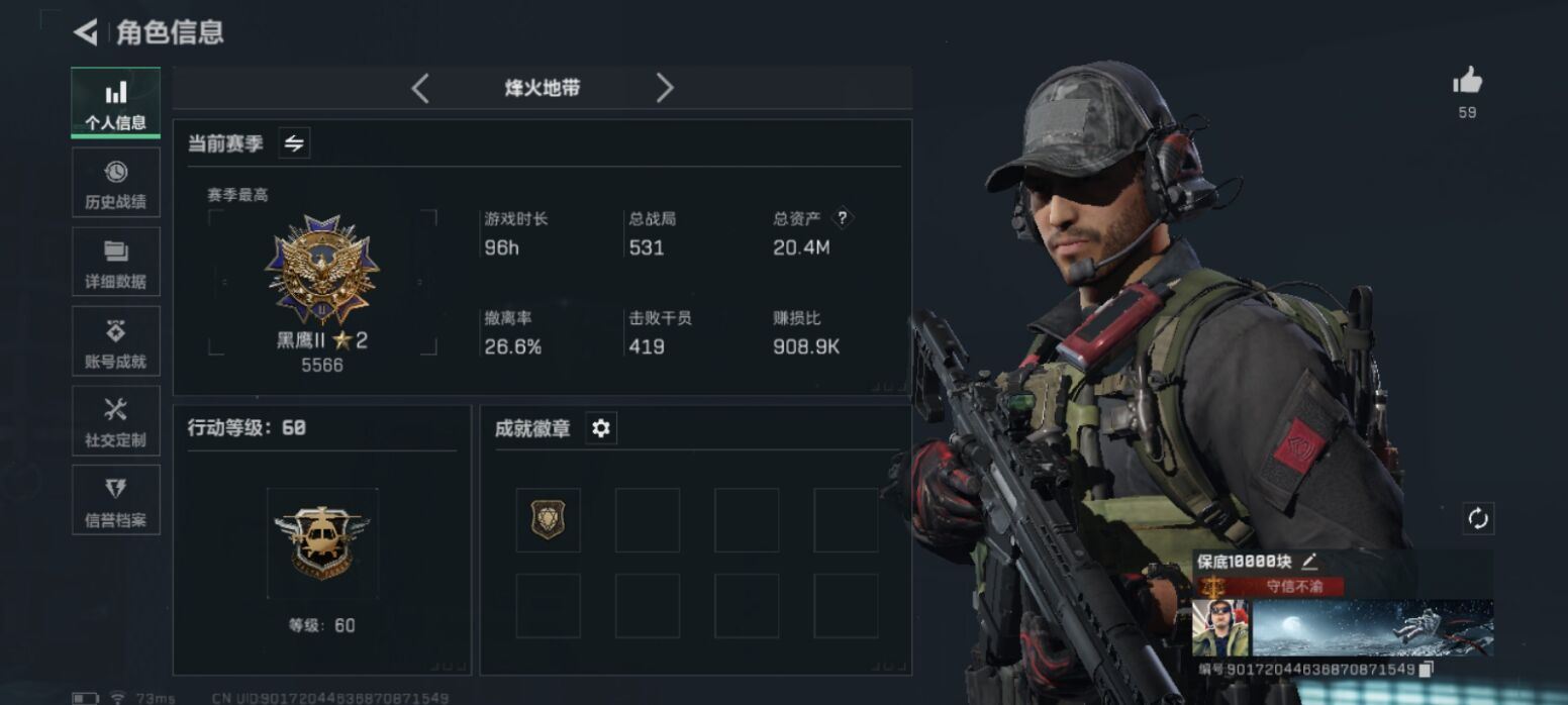 【云游堂】 R43963 可二次QQ【行动等级60】【总资产45.6m】【战场等级1】【仓库8级+指挥中心6级+训练中心7级+靶场7级】【60发AWM子弹】【烈火冲天9格】【刀:电锯惊魂+黑鹰】【红狼蚀金玫瑰+威龙壮志凌云+无名夜鹰+蜂医送葬人无题密令+露娜黑天际线】【m4突击步枪阿米娅-蚀金玫瑰+ash战斗步枪鹅鸭杀+ak突击步枪特斯拉线圈-夜鹰+scar战斗步枪启航-铁艺苍穹+g3战斗步枪骑士+car突击步枪阿米娅+腾龙突击步枪捞点薯条+UZI冲锋枪特斯拉线圈+smg冲锋枪骑士+sr紧凑突击步枪特斯拉线圈+勇士冲锋枪能天使午夜邮差+qcq冲锋枪鹅鸭杀+s12霰弹枪电锯惊魂+725双管霰弹枪送葬人无题密令+m250通用机枪骑士之心+qjb轻机枪鹅鸭杀+m14射手步枪电锯惊魂+awm狙击步枪捞点薯条+93R捞点薯条+复合弓黑天际线】详情请看图片【卖号买号首选亿梦】