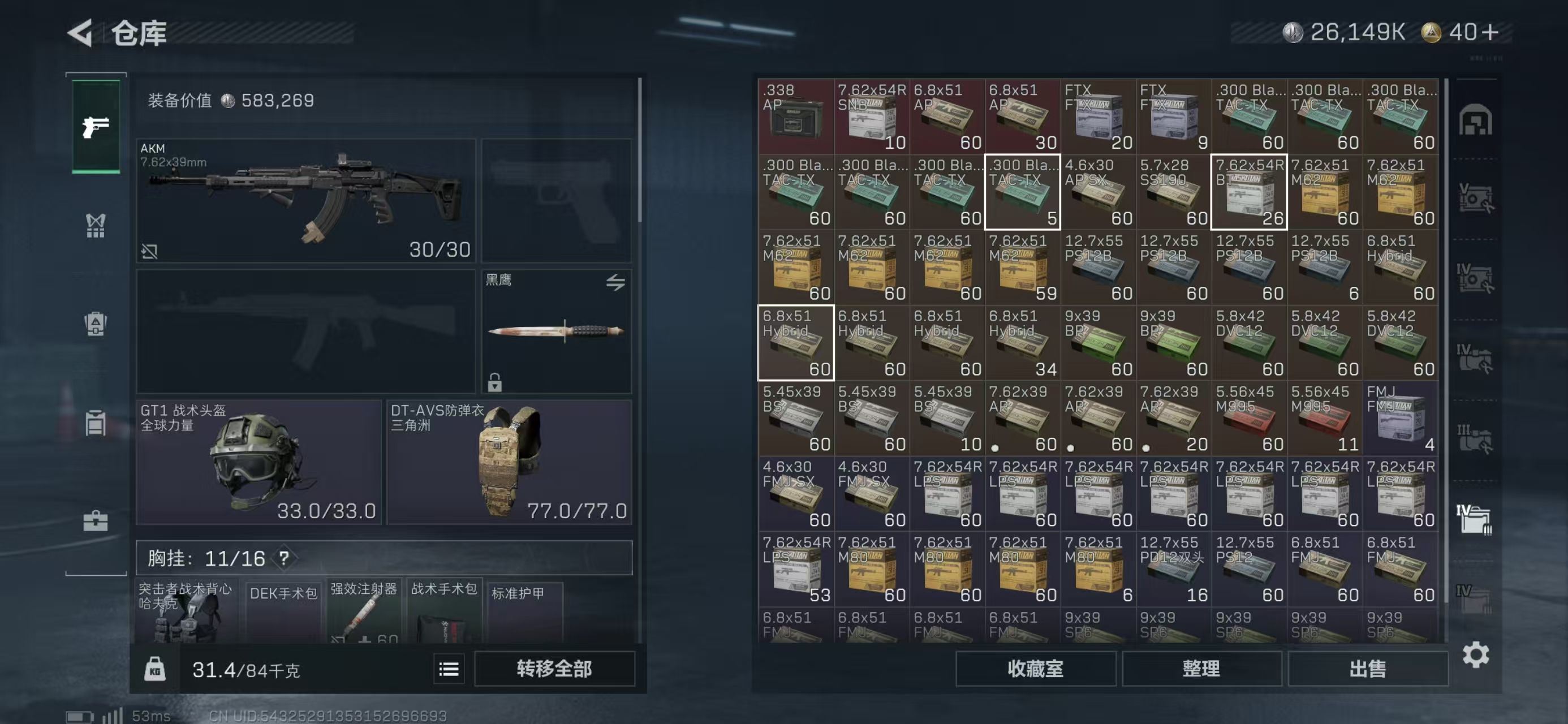 【云游堂】 SA058总资产:64.3M,哈夫币:69804W,武器皮肤:19,烽火60级:钻石,战场15级:列兵,【安全箱】S6顶级安全箱;【特勤处等级】仓库LV.7,靶场LV.5,训练中心LV.6;【干员皮肤】蛊能天使午夜邮差,红狼蚀金玫瑰;【近战武器】近战武器-黑鹰传说枪皮19个有顶级9格安全箱仓库还有七个咖啡豆两个工蜂模型一个子弹零件高