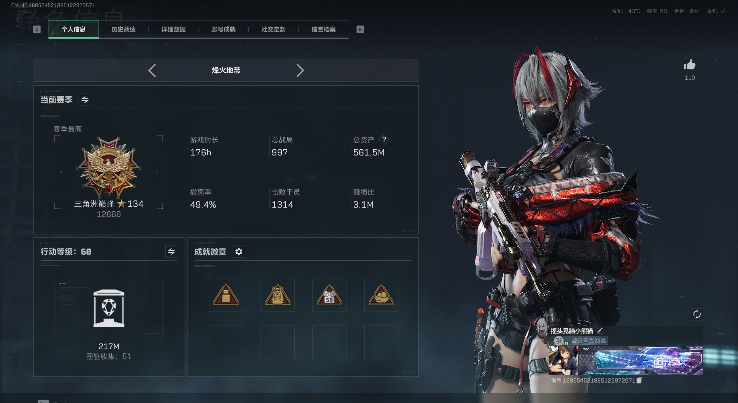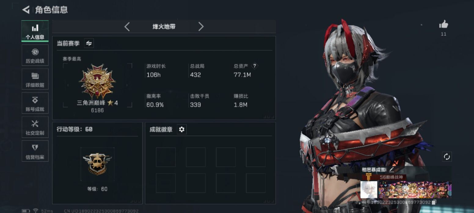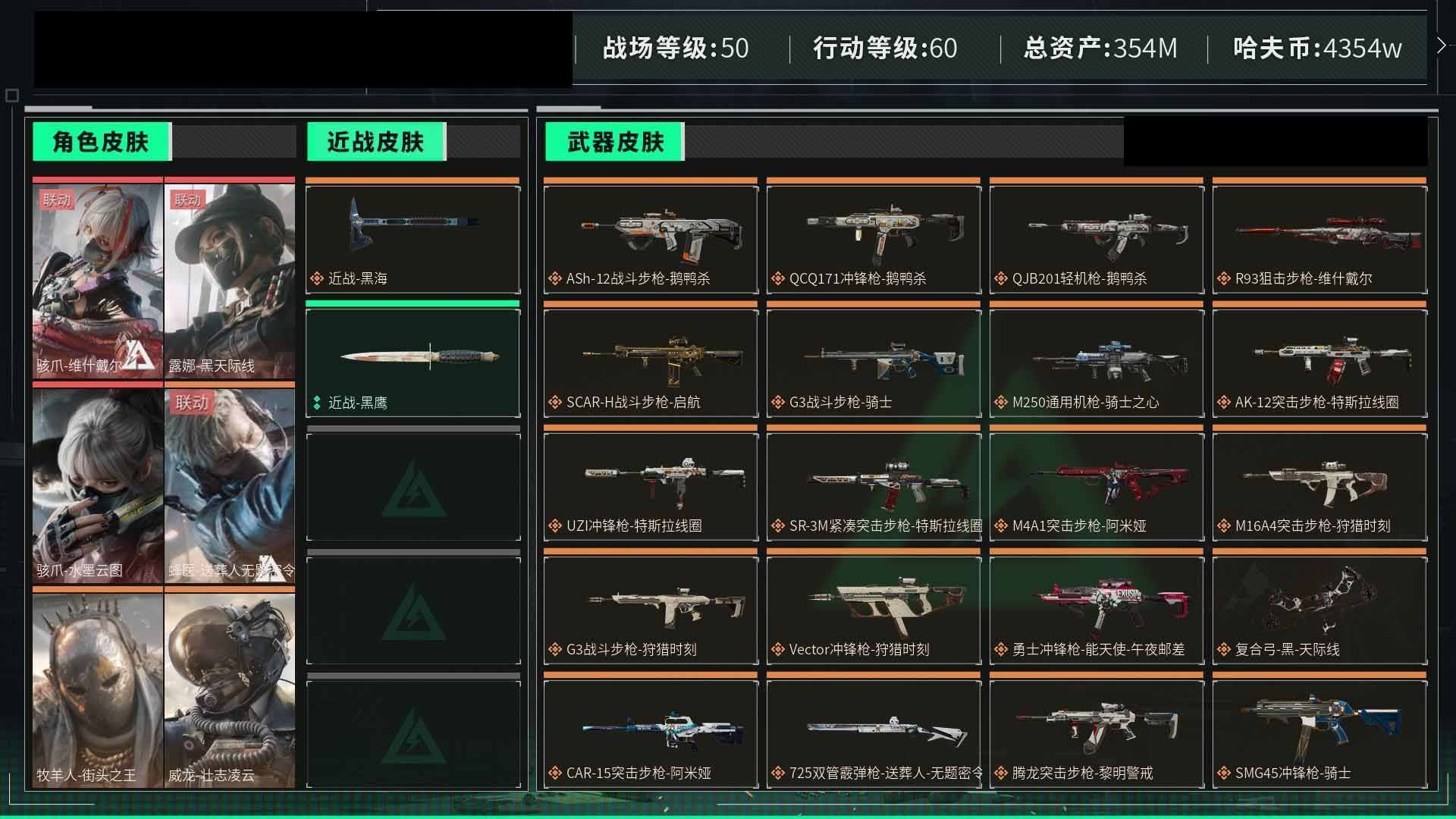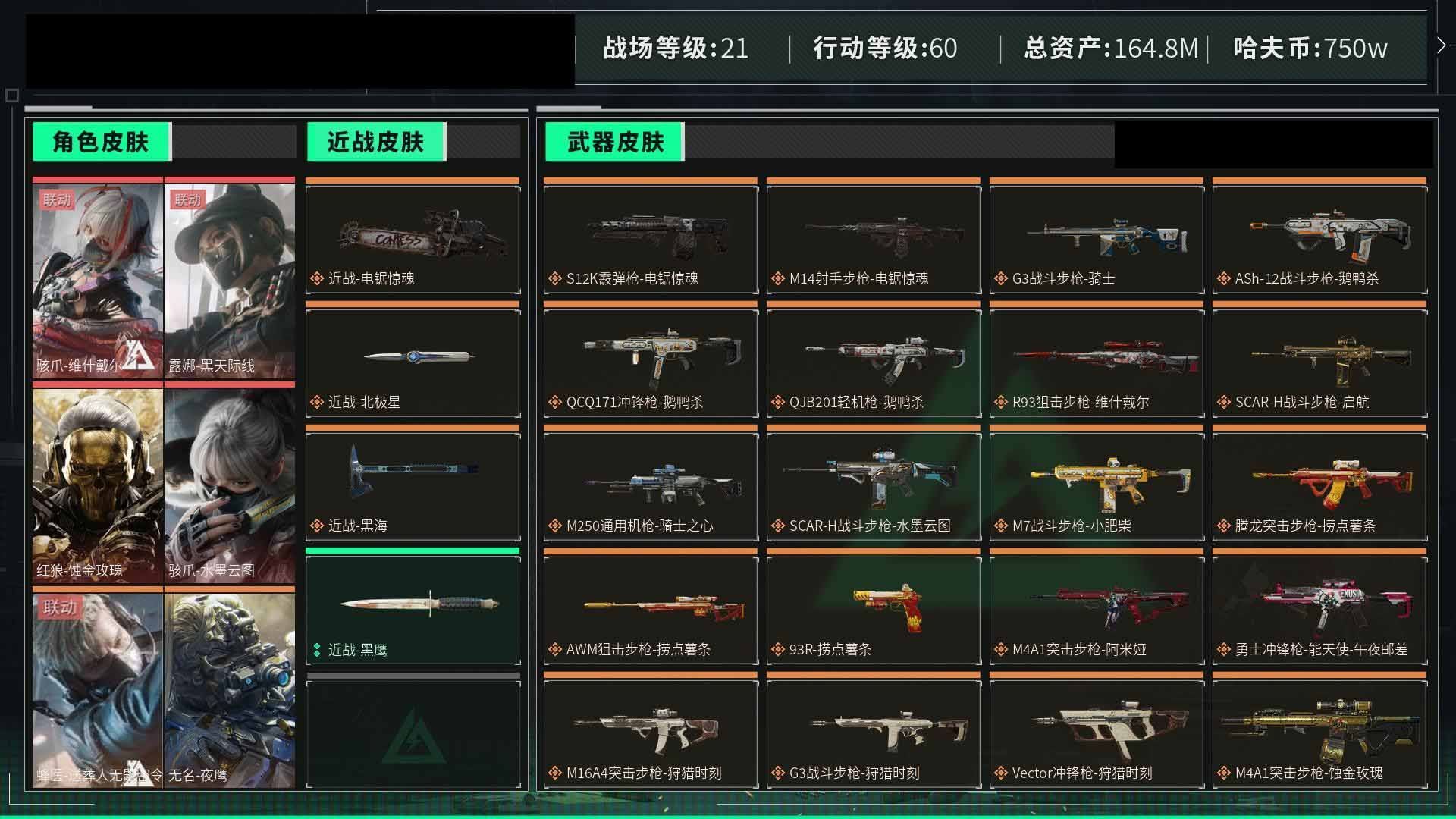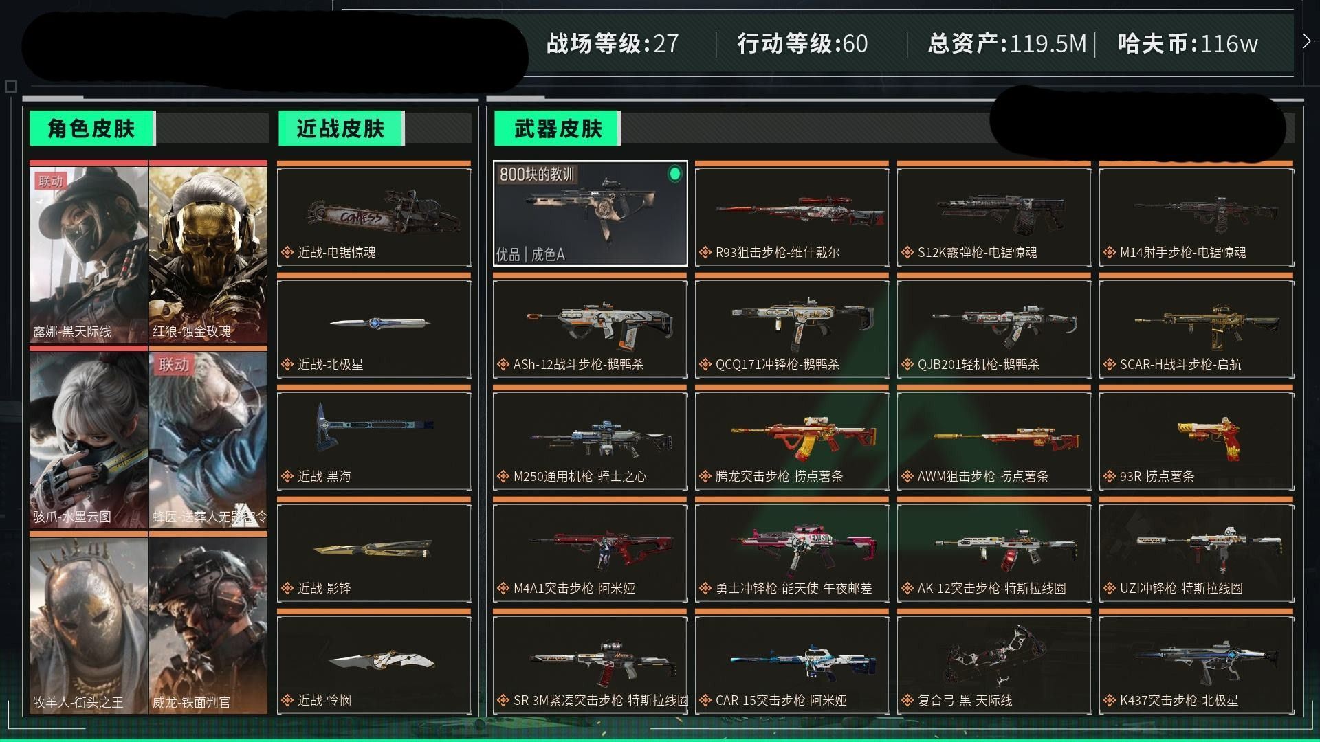 【云游堂】 R438966 可二次QQ【行动等级60】【77.1m】【战场等级19】【指挥中心6级+训练中心7级+靶场7级】【刀:黑鹰】【骇爪维什戴尔】【m4突击步枪阿米娅+ash战斗步枪鹅鸭杀+scar战斗步枪启航+g3战斗步枪骑士+勇士冲锋枪能天使午夜邮差+qcq冲锋枪鹅鸭杀+m250通用机枪骑士之心+qjb轻机枪鹅鸭杀+R93狙击步枪维什戴尔】详情请看图片【卖号买号首选亿梦】