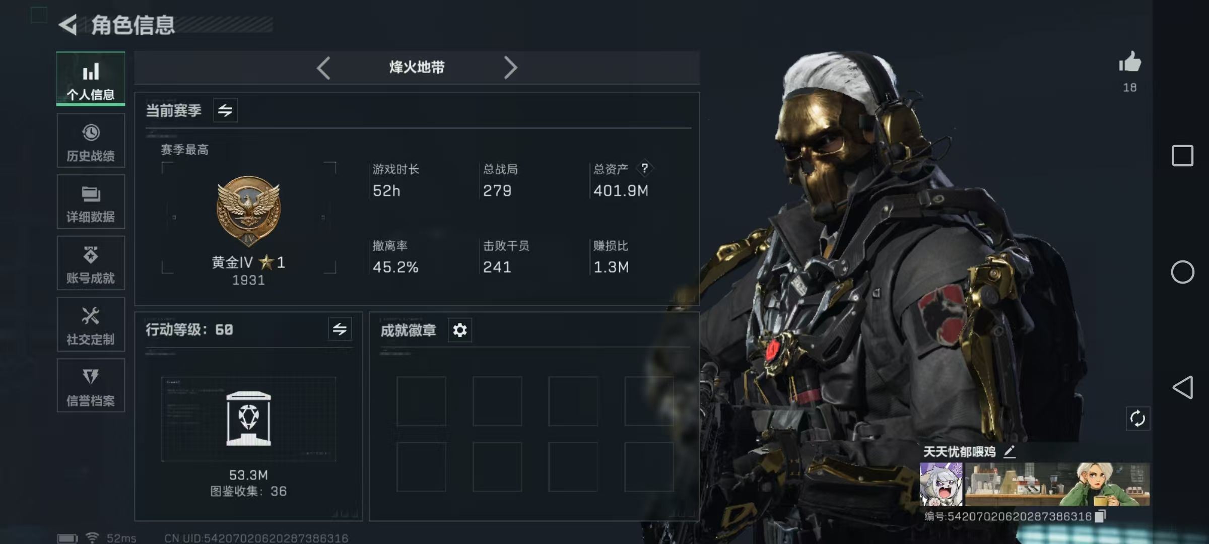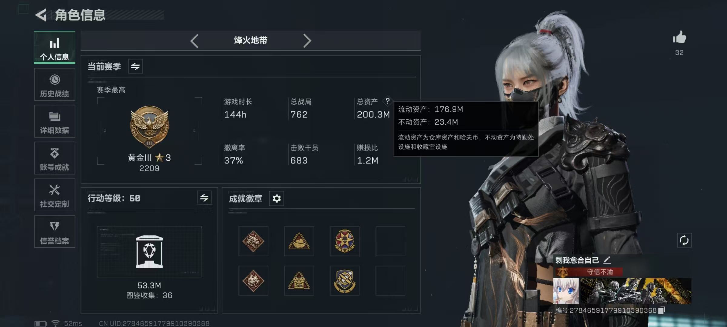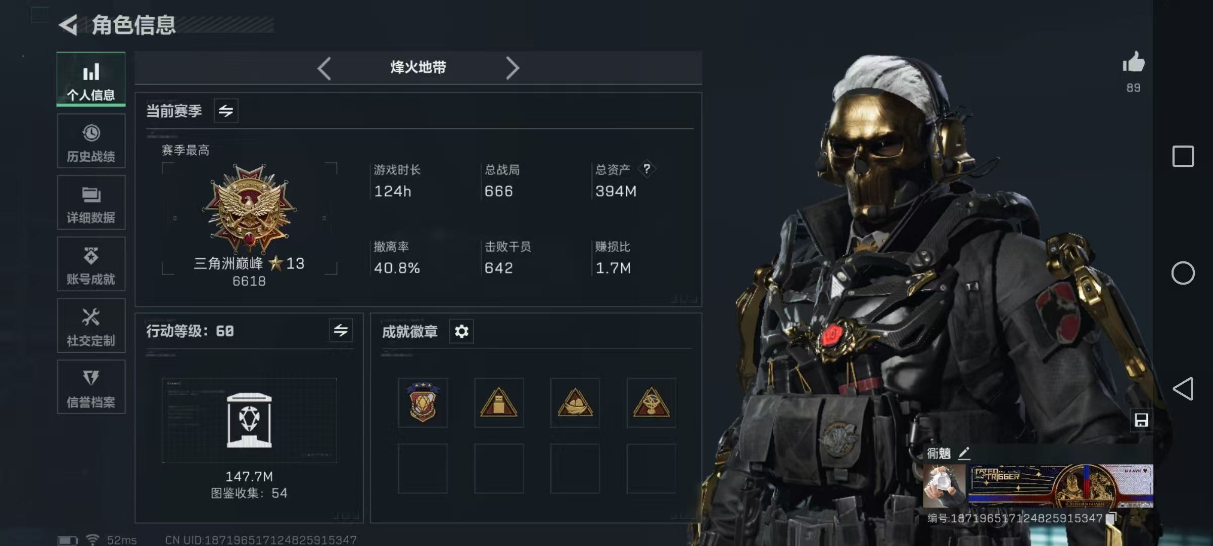 【云游堂】 惠2392787总资产354M,哈夫币4354w,枪皮数量320,战场等级:50 军士长,行动等级:60 钻石,角色皮肤数量7,骇爪-维什戴尔/露娜-黑天际线/骇爪-水墨云图【个人信息】战场等级:50 军士长,行动等级:60 钻石【哈夫币】4354w【总资产】354M【货币】27三角币/40曼德尔币/436三角券【安全箱】基础安全箱2(1x2)/S6高级安全箱6(2x3)/S6顶级安全箱9(3x3)【通行证】三角洲全模式版【特勤处】制药台Lv.3/工作台Lv.3/仓库Lv.8/防具台Lv.3/训练中心Lv.7/靶场Lv.6/技术中心Lv.3/指挥中心Lv.6/潜水中心Lv.1/收藏室Lv.1【角色皮肤】骇爪-维什戴尔/露娜-黑天际线/骇爪-水墨云图/威龙-壮志凌云/牧羊人-街头之王/无名-夜鹰/蜂医-送葬人无题密令/【已拥有捆绑包】狩猎时刻捆绑包/特斯拉线圈捆绑包/【近战皮肤】近战-黑鹰/近战-黑海/【步枪皮肤】M7战斗步枪-维京/M4A1突击步枪-竞技风/QBZ95-1突击步枪-曙光/ASh-12战斗步枪-刀锋/SCAR-H战斗步枪-危险实验/AS Val突击步枪-刀锋/SCAR-H战斗步枪-铁艺苍穹/SCAR-H战斗步枪-水墨云图/AS Val突击步枪-蛇年祥瑞/SR-3M紧凑突击步枪-英雄/QBZ95-1突击步枪-ACE/AUG突击步枪-蝮蛇/G3战斗步枪-战场英杰/AUG突击步枪-特勤执行/M4A1突击步枪-特勤执行/PTR-32突击步枪-ACE/AK-12突击步枪-夜鹰/SG552突击步枪-深海恐惧/SG552突击步枪-尖端治疗/AS Val突击步枪-尖端治疗/ASh-12战斗步枪-守夜人/AKM突击步枪-林中猎手/腾龙突击步枪-黎明警戒/PTR-32突击步枪-英雄/腾龙突击步枪-无垢/SCAR-H战斗步枪-囚徒/M16A4突击步枪-竞赛选手/SR-3M紧凑突击步枪-荒野求生/CAR-15突击步枪-阿米娅/M4A1突击步枪-阿米娅/G3战斗步枪-狩猎时刻/M16A4突击步枪-狩猎时刻/AK-12突击步枪-特斯拉线圈/SR-3M紧凑突击步枪-特斯拉线圈/腾龙突击步枪-猎鳄行动/ASh-12战斗步枪-无极限/G3战斗步枪-骑士/ASh-12战斗步枪-鹅鸭杀/SCAR-H战斗步枪-启航/SR-3M紧凑突击步枪-战术竞备/【冲锋枪皮肤】Vector冲锋枪-狩猎时刻/UZI冲锋枪-特斯拉线圈/Vector冲锋枪-阿萨拉文明/UZI冲锋枪-危险实验/Vector冲锋枪-红色彗星/MP5冲锋枪-深海恐惧/勇士冲锋枪-深海恐惧/SMG45冲锋枪-骑士/MP7冲锋枪-无垢/勇士冲锋枪-能天使-午夜邮差/P90冲锋枪-暗影猎手/P90冲锋枪-紧急戒备/MP7冲锋枪-守护者/勇士冲锋枪-工业狂潮/P90冲锋枪-莫斯提马/QCQ171冲锋枪-鹅鸭杀/MP5冲锋枪-战术竞备/【霰弹枪皮肤】S12K霰弹枪-曙光/M1014霰弹枪-林中猎手/725双管霰弹枪-送葬人-无题密令/【轻机枪皮肤】PKM通用机枪-魔药/M249轻机枪-维京/PKM通用机枪-蝮蛇/PKM通用机枪-英雄/PKM通用机枪-守夜人/PKM通用机枪-荒野求生/M250通用机枪-囚徒/QJB201轻机枪-OldHabits/M250通用机枪-骑士之心/QJB201轻机枪-鹅鸭杀/【精准射手步枪皮肤】SR-25射手步枪-水墨云图/SKS射手步枪-ACE/SR-25射手步枪-战场英杰/SR-25射手步枪-尖端治疗/PSG-1射手步枪-无垢/Mini-14射手步枪-守护者/【狙击步枪皮肤】SVD狙击步枪-阿萨拉工艺/M700狙击步枪-竞技风/SV-98狙击步枪-囚徒/R93狙击步枪-竞赛选手/R93狙击步枪-维什戴尔/M700狙击步枪-蝮蛇/SVD狙击步枪-暗夜猎手/M700狙击步枪-守夜人/SV-98狙击步枪-林中猎手/SVD狙击步枪-荒野求生/SV-98狙击步枪-猎鳄行动/【手枪皮肤】沙漠之鹰-曙光/QSZ92G-风林火山/93R-博士/【特殊武器】复合弓-黑-天际线/复合弓-守护者/【挂饰】毁灭之源(A)/骇客纪元(A)/挂饰-磁吸炸弹/挂饰-激素枪/挂饰-枪匠/诡影狙击兵/诡影喷火兵/挂饰-骑士之心/挂饰-维什戴尔/挂饰-大白鹅/挂饰-启程/挂饰-水墨云图/挂饰-蚀金玫瑰/挂饰-春结/挂饰-盾牌/挂饰-王牌座驾/挂饰-维京/挂饰-Relink/挂饰-小羊/挂饰-彩蛋/阿萨拉机枪兵/挂饰-晶石幻想/挂饰-阿米娅/挂饰-特斯拉线圈/挂饰-狩猎时刻/紧急会议/【载具】M1A4坦克-丛林猎手/M1A4坦克-狮王/M1A4坦克-鹰击长空/M1A4坦克-无瑕/M1A4坦克-黑骑士/轮式突击炮-域外狂徒/轮式突击炮-移动堡垒/M1A4坦克-移动堡垒/步